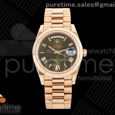 CBDF 롤렉스 데이데이트40 로즈골드 텅스텐(Cu-W) 그린로만다이얼 스틸브레이슬릿 210g Day Date 40 RG CBDF 1:1 Best Edition Green Roman Dial on President Bracelet VR3255 (210g)