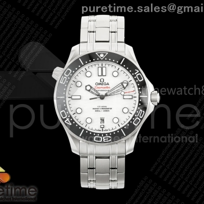 • (NEW) VSF V4 오메가 씨마스터 다이버300M 화이트다이얼 스틸브레이슬릿 Seamaster Diver 300M VSF 1:1 Best Edition Black Ceramic White Dial on SS Bracelet SA8800 Super Clone V4