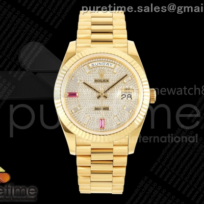 QF V8 롤렉스 데이데이트40 옐로우골드 텅스텐(Cu-W) 다이아몬드다이얼 스틸브레이슬릿 200g DayDate 40 YG QF 1:1 Best Edition Full Diamonds Dial on President Bracelet VR3255 V8 (Gain Weight)