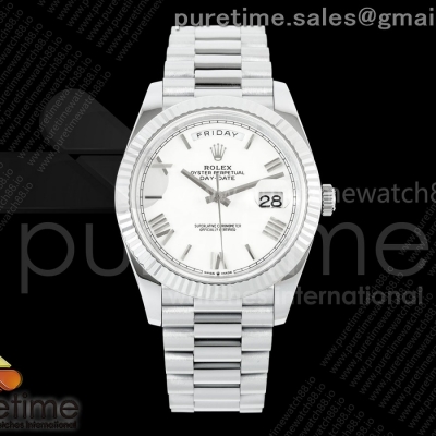 QF V8 롤렉스 데이데이트40 텅스텐(Cu-W) 화이트로만다이얼 스틸브레이슬릿 190g DayDate 40 SS QF 1:1 Best Edition 904L Steel White Roman Dial on President Bracelet VR3255 V8 (Gain Weight)