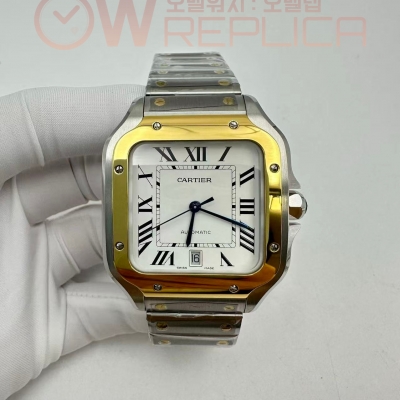 (#국내# 당발) BVF V2 산토스 드 까르띠에 옐로우골드 콤비 라지 40미리 화이트다이얼 스틸브레이슬릿