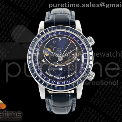 3KF 파텍필립 그랜드컴플리케이션 6102 블루다이아베젤 블루다이얼 블루가죽스트랩 Grand Complications 6102 SS 3KF Best Edition Blue Diamonds Bezel Blue Dial on Blue Leather Strap A240