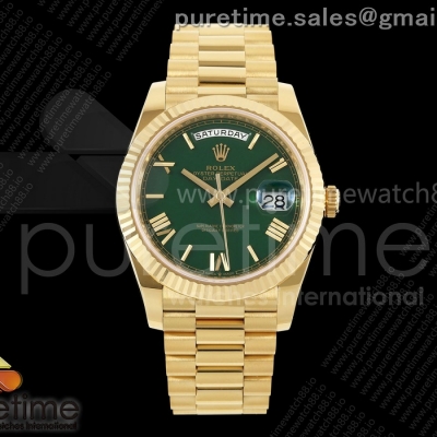 RCF 롤렉스 데이데이트40 옐로우골드 텅스텐(Cu-W) 그린로만다이얼 스틸브레이슬릿 210g Day Date 40 YG RCF 1:1 Best Edition Green Roman Dial on President Bracelet VR3255