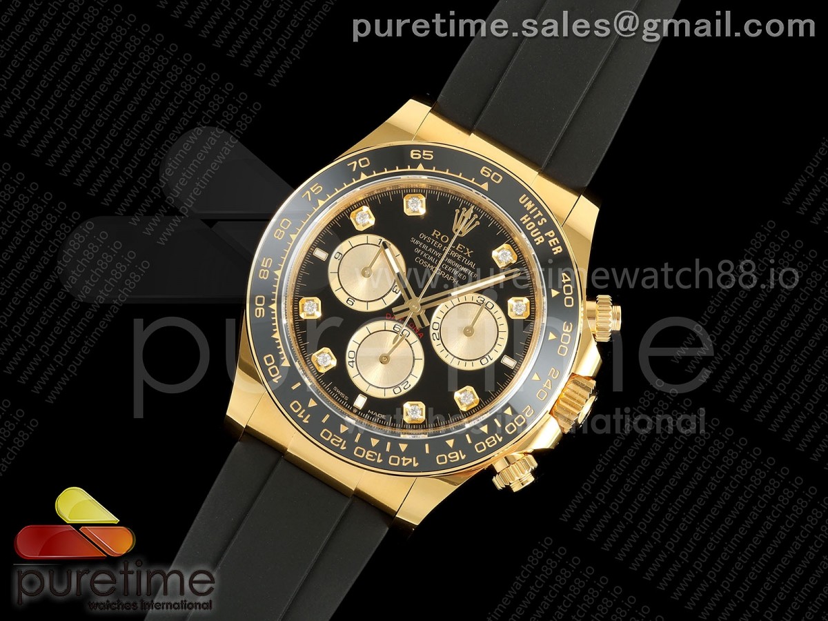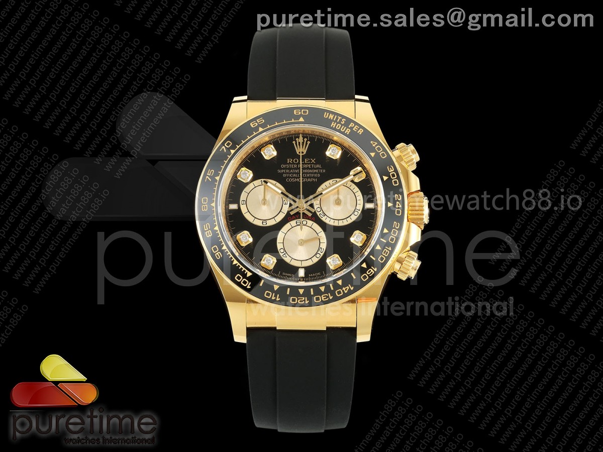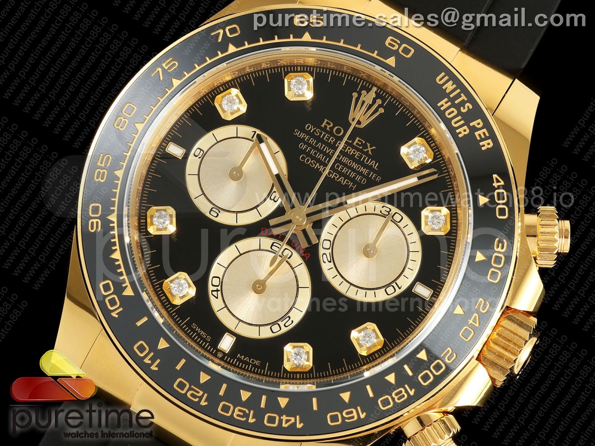ARF 롤렉스 데이토나 옐로우골드 텅스텐(Cu-W) 블랙8P다이얼 블랙러버스트랩 162g Daytona 126518 ARF 1:1 Best Edition Black/YG Diamonds Dial on Oysterflex Strap DD4131 (Weighted) > 데이토나(DAYTONA)
