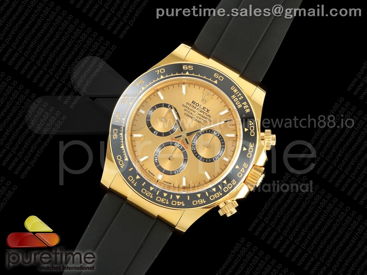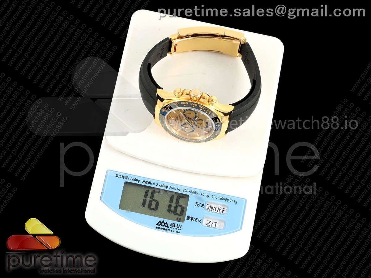 • ARF 롤렉스 데이토나 옐로우골드 텅스텐(Cu-W) 골드다이얼 블랙러버스트랩 162g Daytona 126518 ARF 1:1 Best Edition YG Dial on Oysterflex Strap DD4131 (Weighted)