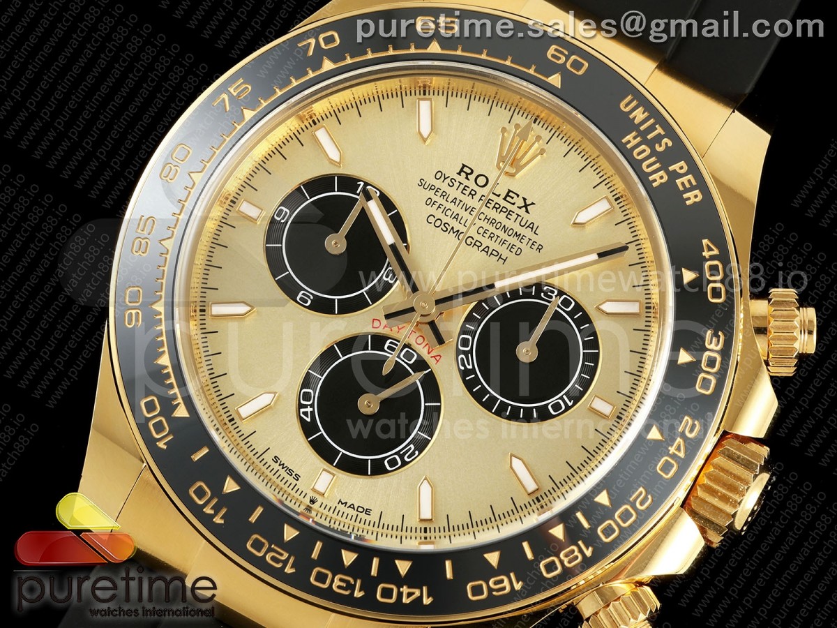 ARF 롤렉스 데이토나 옐로우골드 텅스텐(Cu-W) 골드/블랙다이얼 블랙러버스트랩 162g Daytona 126518 ARF 1:1 Best Edition YG/Black Dial on Oysterflex Strap DD4131 (Weighted) > 데이토나(DAYTONA)