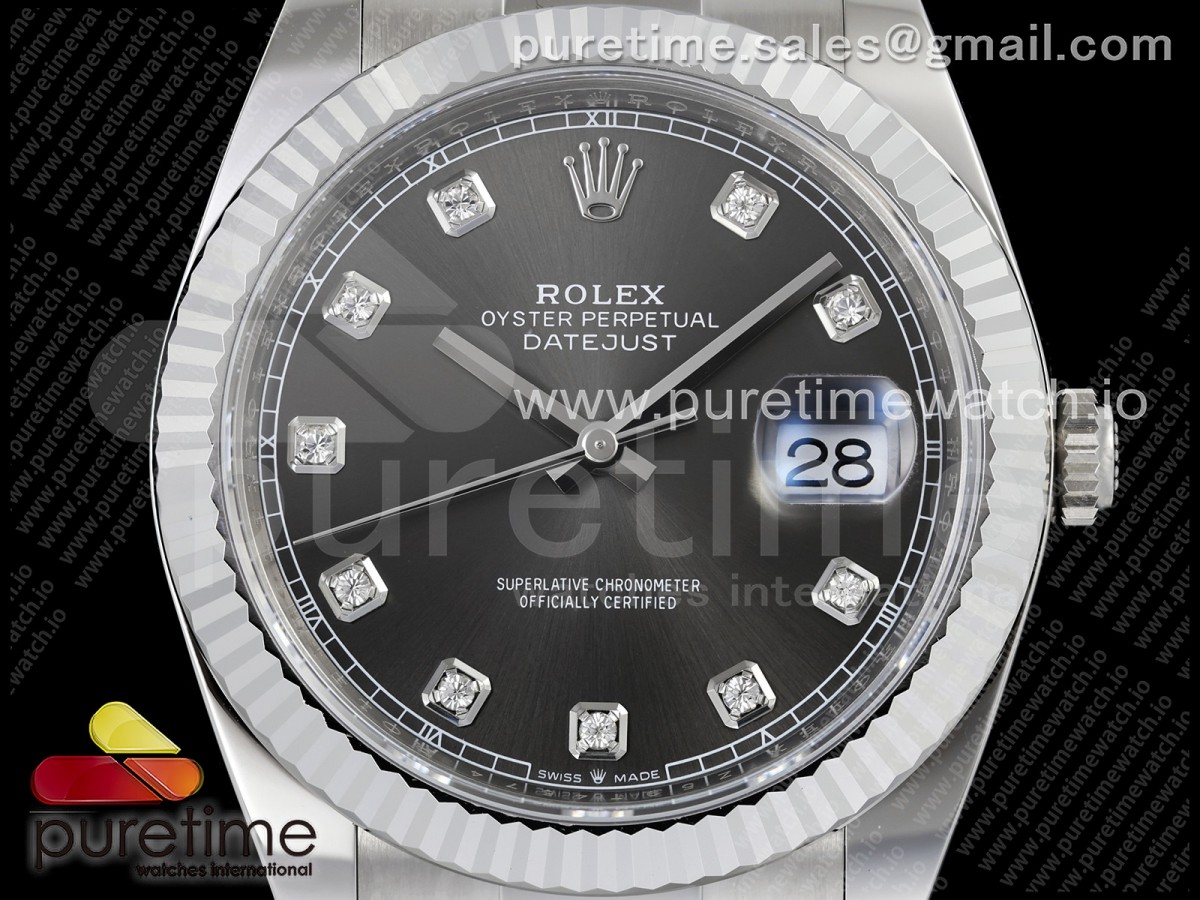 • THBF 롤렉스 데이저스트41 그레이텐포인트다이얼 오이스터브레이슬릿 (Free Sprung) DateJust 41 126334 THBF 1:1 Best Edition 904L Steel Gray Diamonds Dial on Oyster Bracelet JH3235 (Free Sprung)