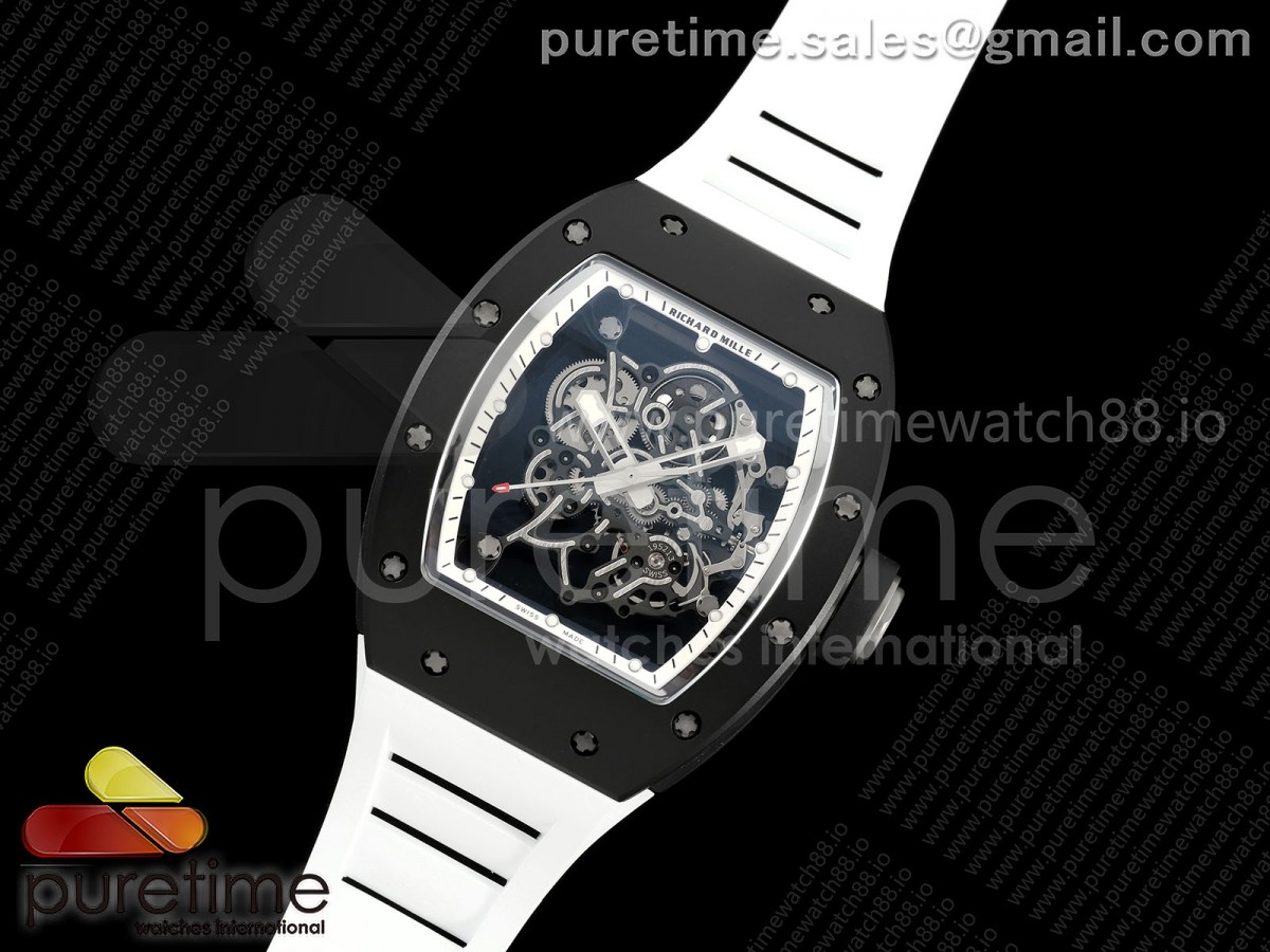• APSF 리차드밀 RM055 블랙세라믹 화이트스켈레톤다이얼 화이트러버스트랩 RM055 Black Ceramic APSF 1:1 Best Edition on White Inner Bezel on White Rubber Strap RMUL2 Super Clone