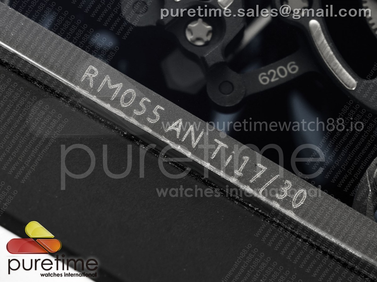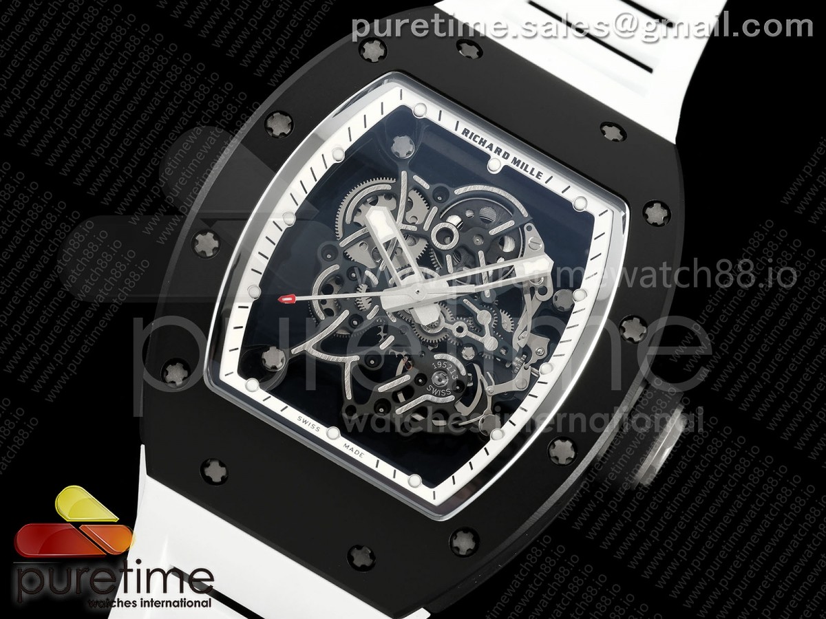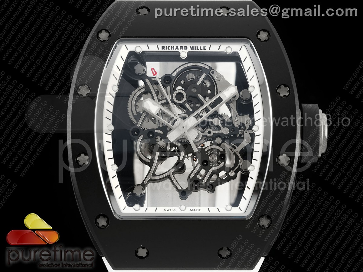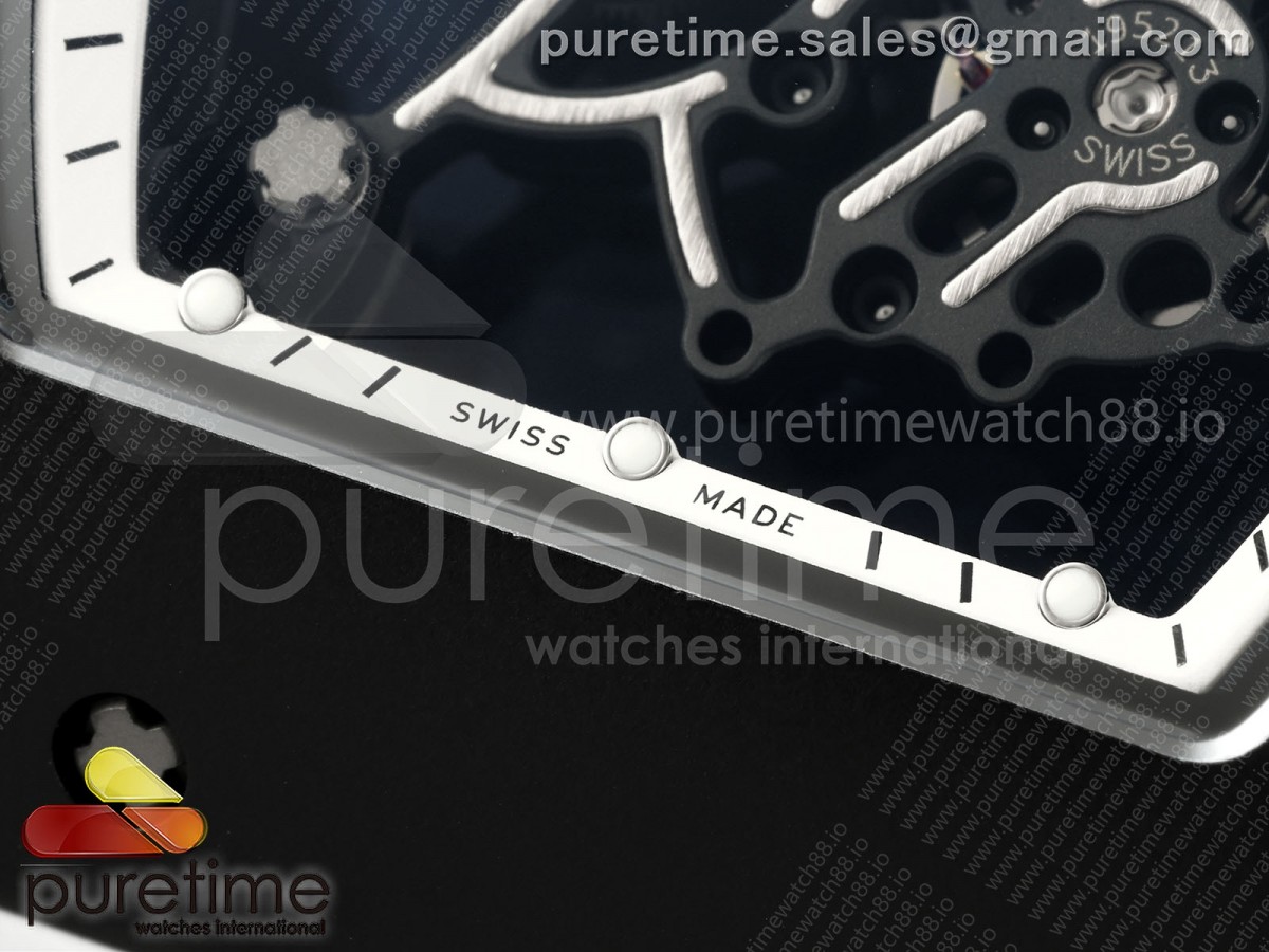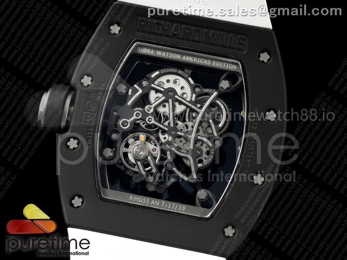 APSF 리차드밀 RM055 블랙세라믹 화이트스켈레톤다이얼 화이트러버스트랩 RM055 Black Ceramic APSF 1:1 Best Edition on White Inner Bezel on White Rubber Strap RMUL2 Super Clone > 리차드밀(RICHARD MILLE)
