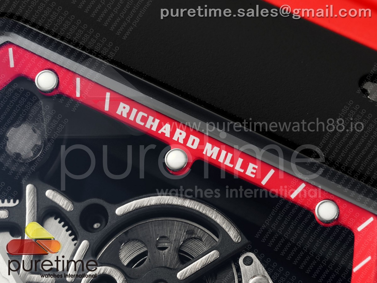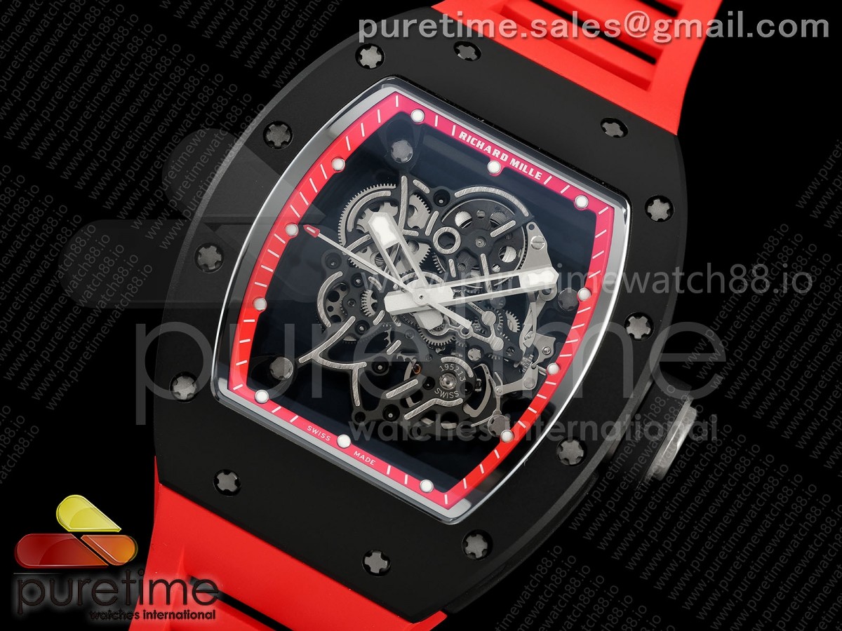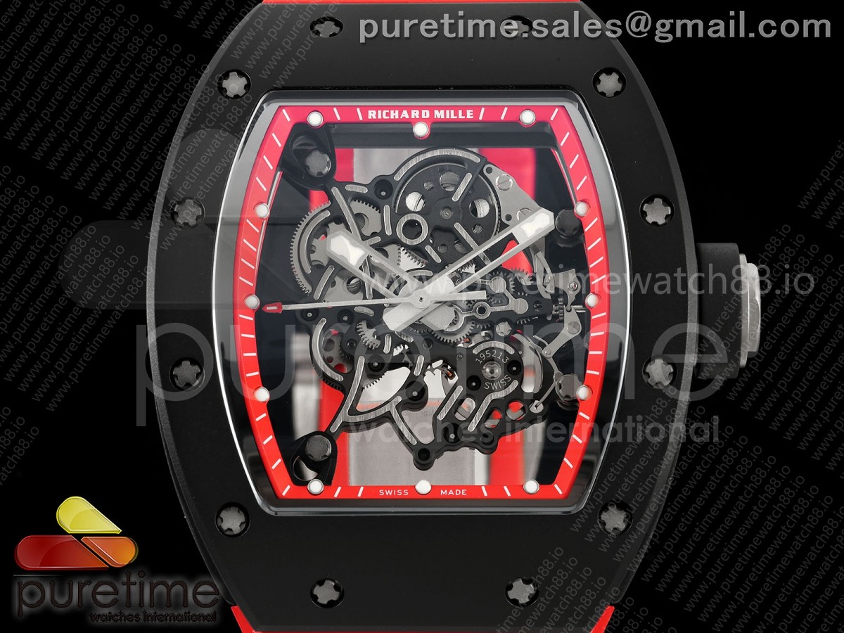 APSF 리차드밀 RM055 블랙세라믹 레드스켈레톤다이얼 레드러버스트랩 RM055 Black Ceramic APSF 1:1 Best Edition on Red Inner Bezel on Red Rubber Strap RMUL2 Super Clone > 리차드밀(RICHARD MILLE)