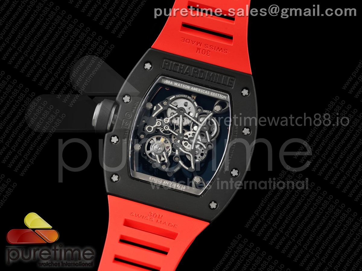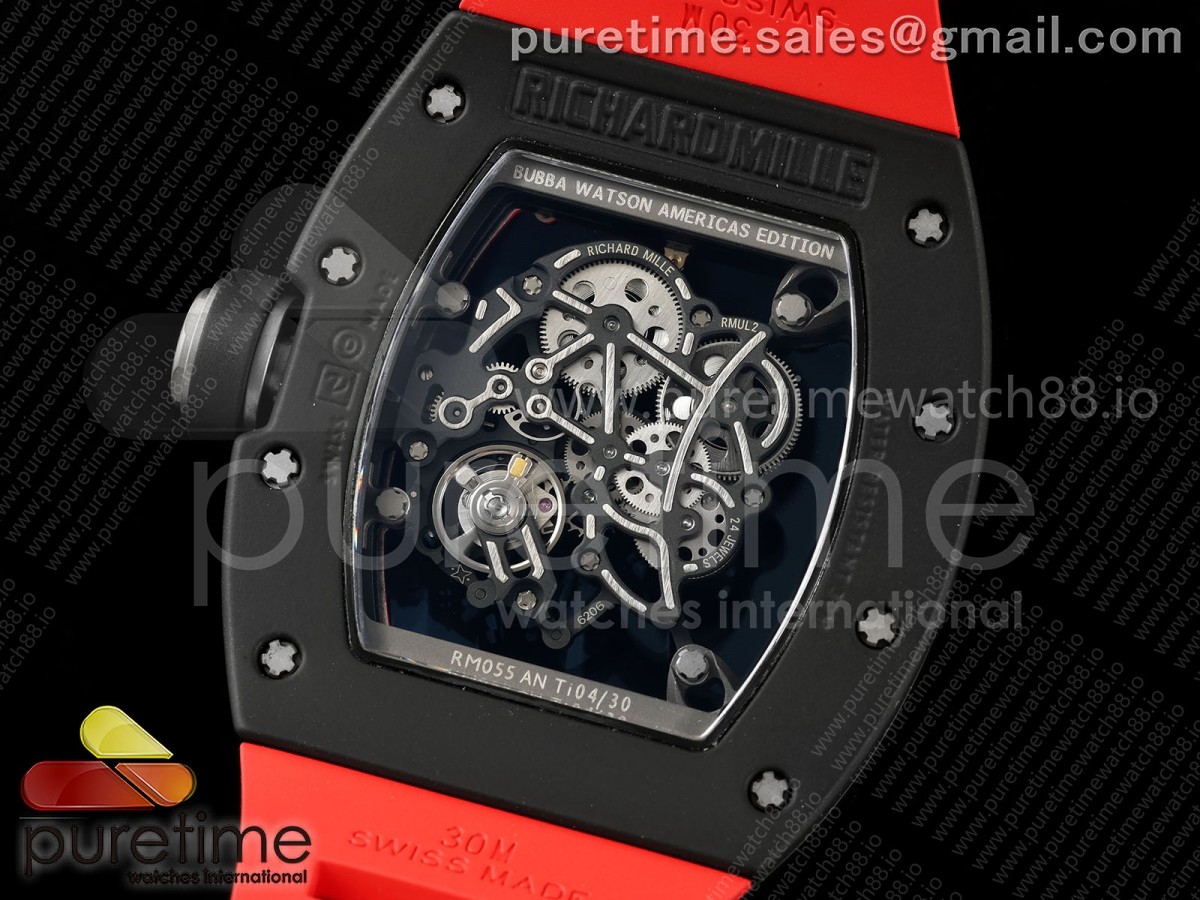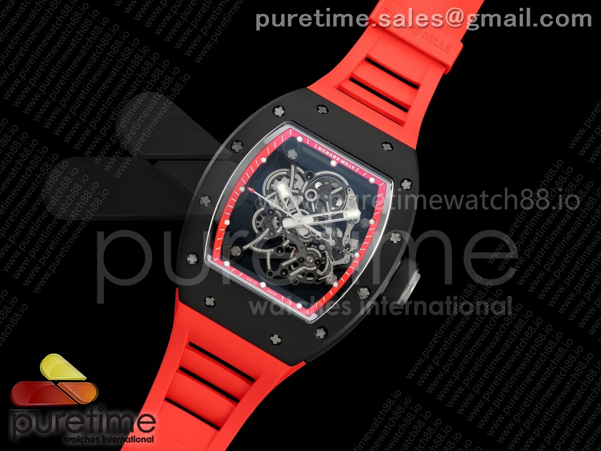 APSF 리차드밀 RM055 블랙세라믹 레드스켈레톤다이얼 레드러버스트랩 RM055 Black Ceramic APSF 1:1 Best Edition on Red Inner Bezel on Red Rubber Strap RMUL2 Super Clone > 리차드밀(RICHARD MILLE)
