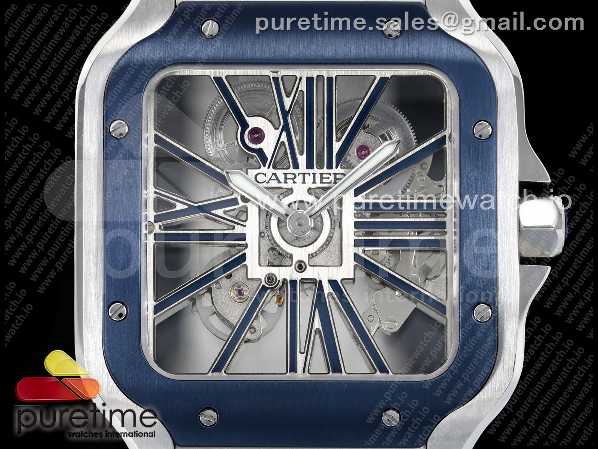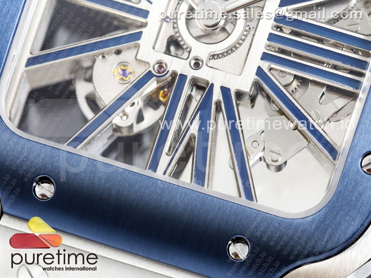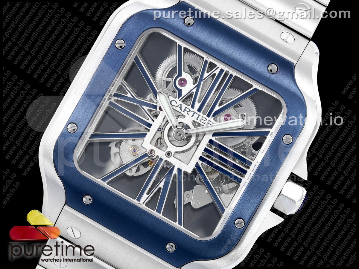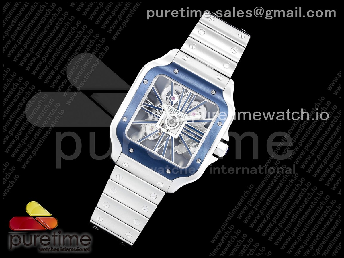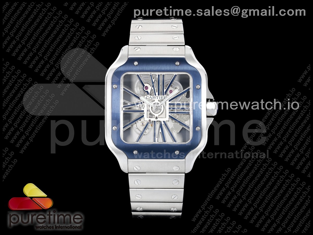 RICH 산토스 드 까르띠에 40미리 블루베젤 스켈레톤다이얼 스틸브레이슬릿(가죽스트랩) Santos Skeleton SS RICH 1:1 Best Edition Skeleton Dial Blue Bezel 9611MC Super Clone (2 Straps)Straps) > 산토스시리즈(SANTOS)