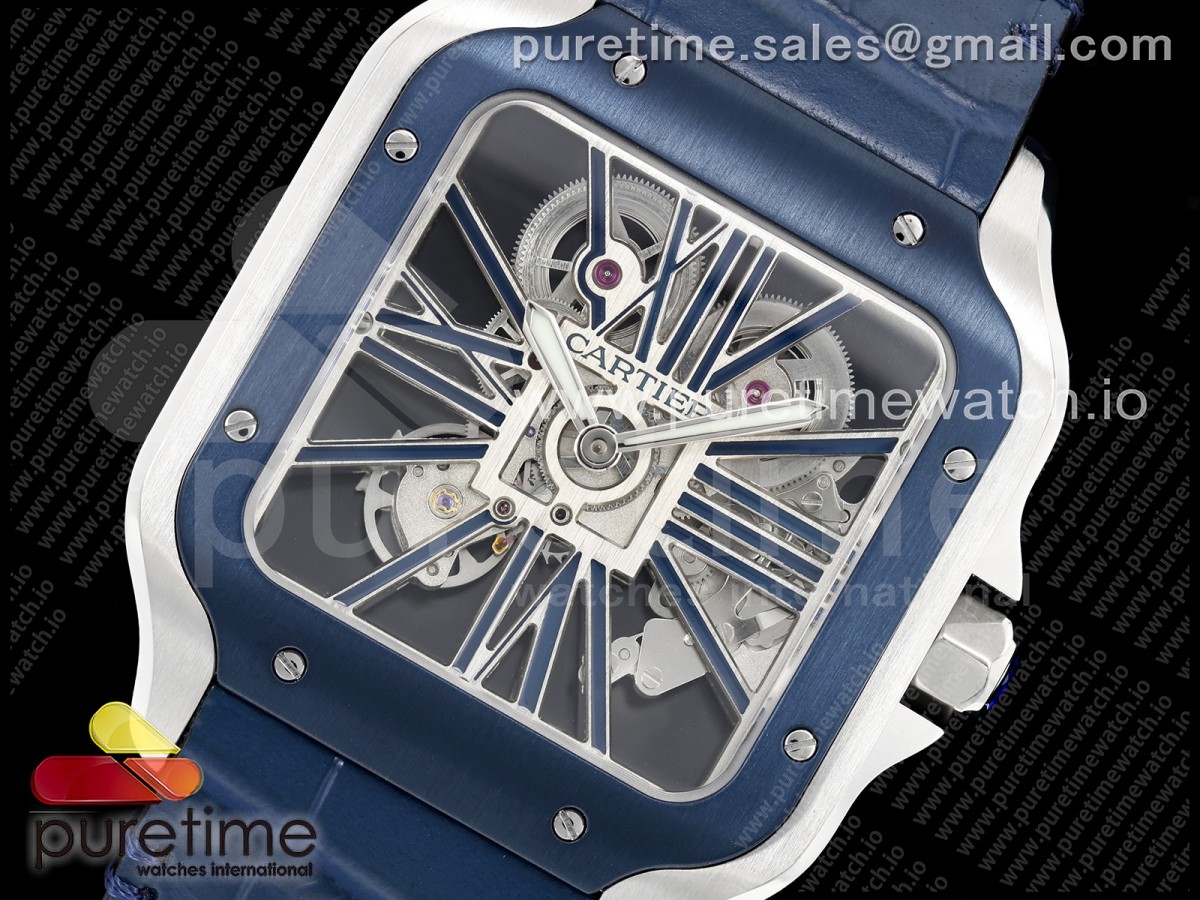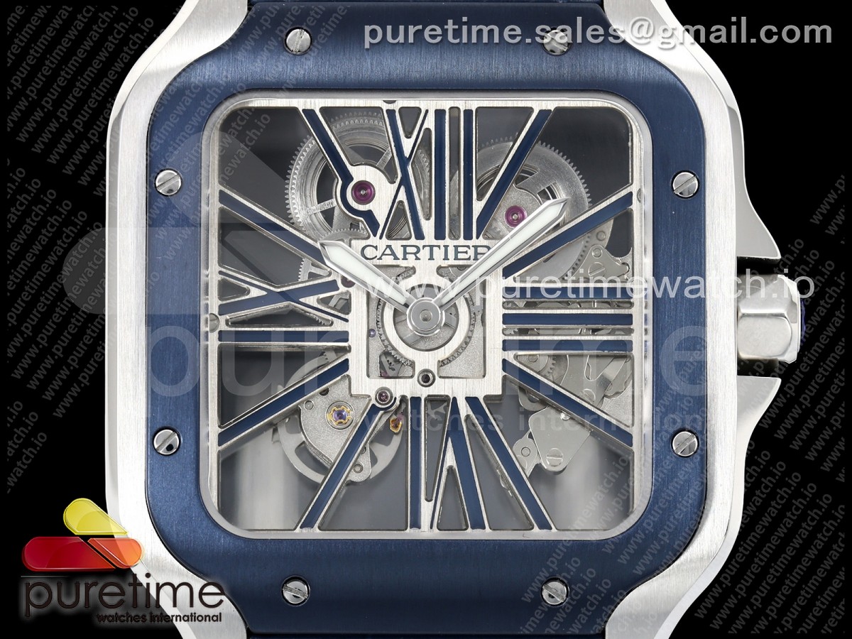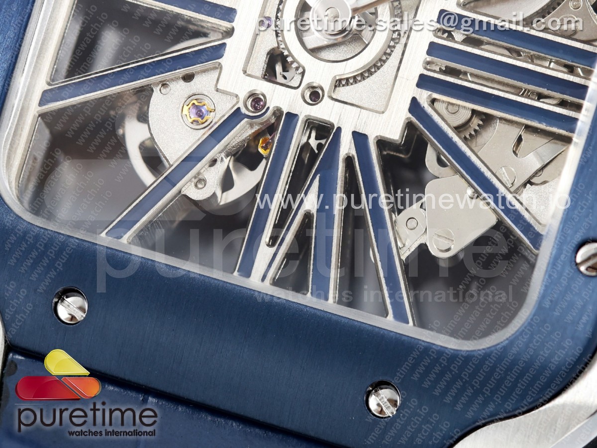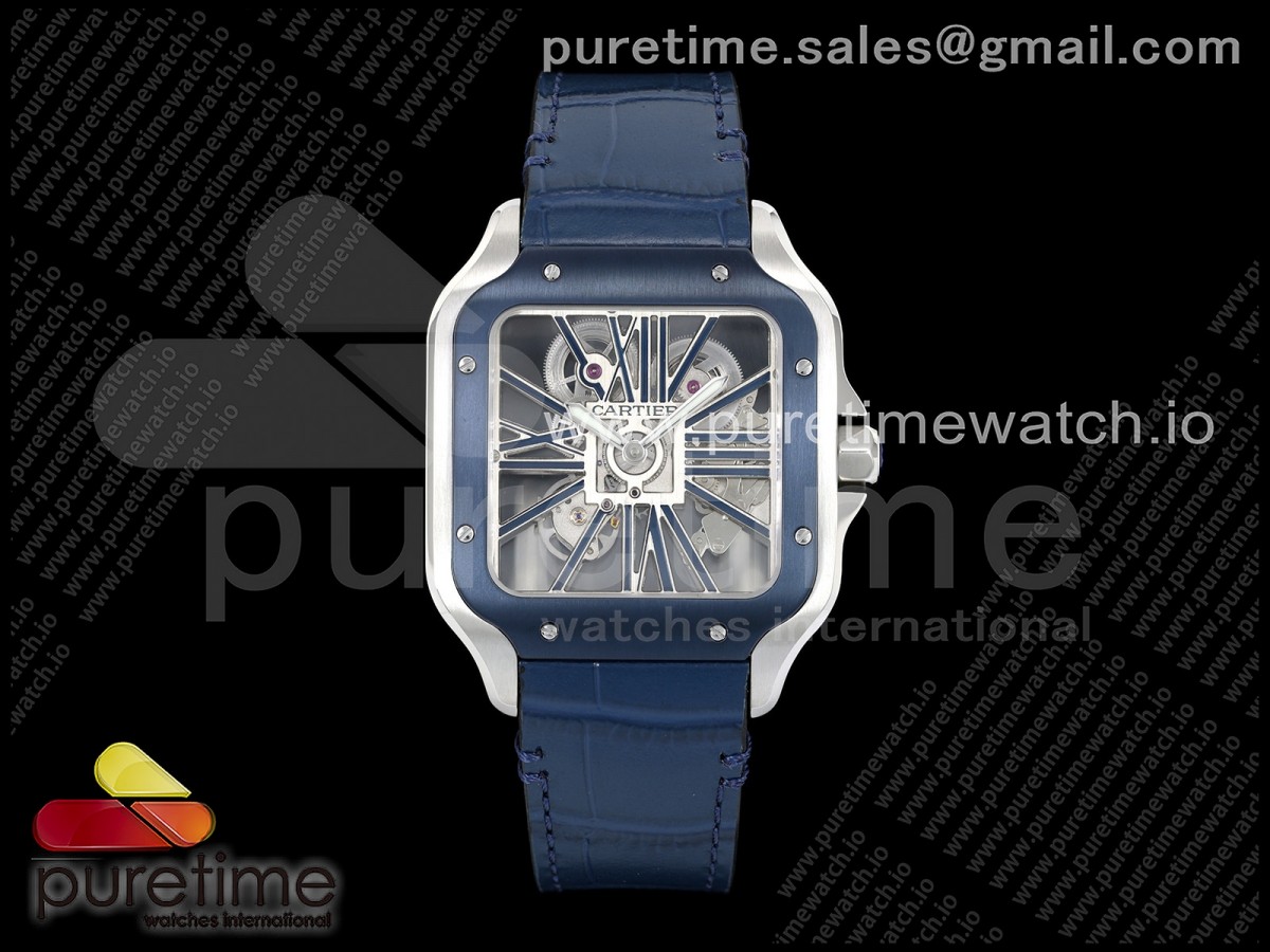 RICH 산토스 드 까르띠에 40미리 블루베젤 스켈레톤다이얼 스틸브레이슬릿(가죽스트랩) Santos Skeleton SS RICH 1:1 Best Edition Skeleton Dial Blue Bezel 9611MC Super Clone (2 Straps)Straps) > 산토스시리즈(SANTOS)