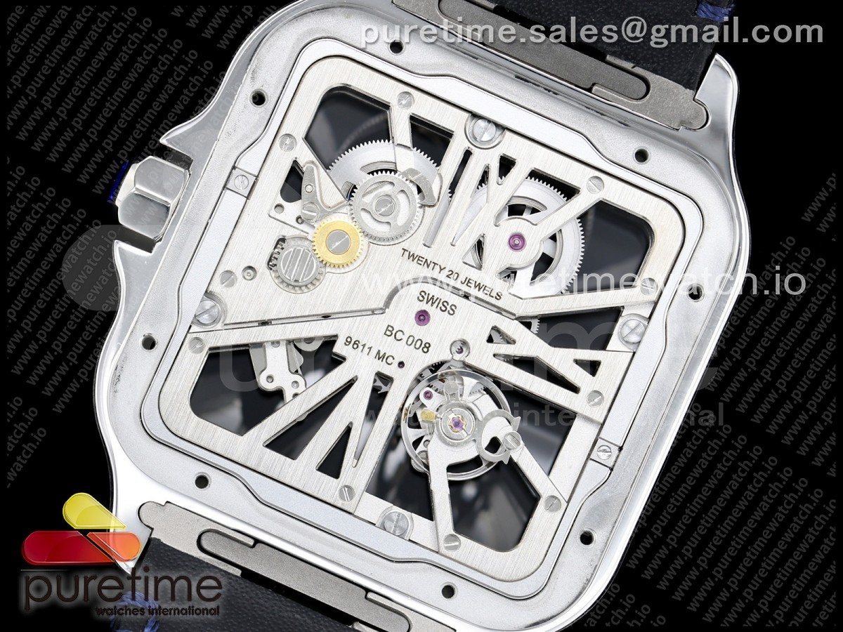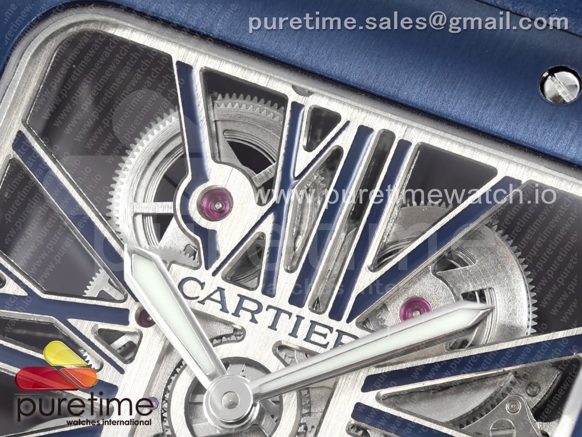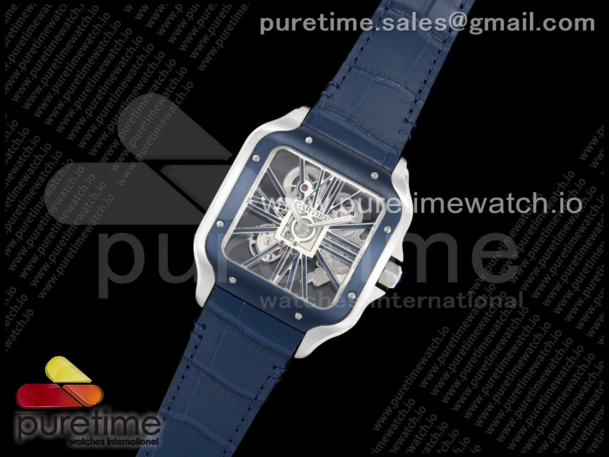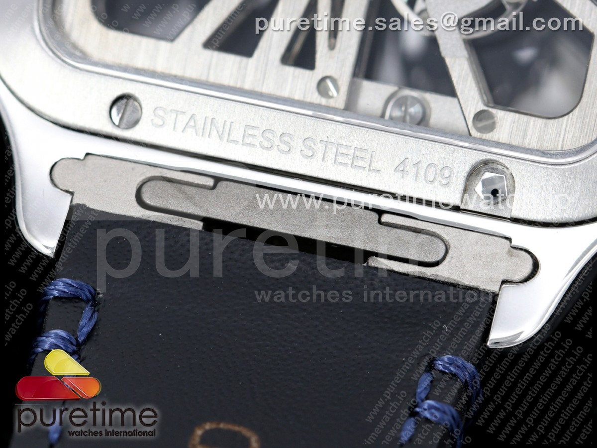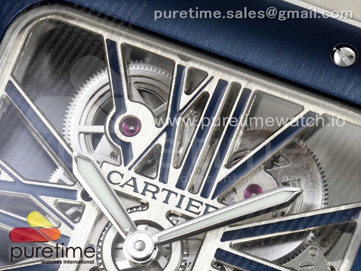 RICH 산토스 드 까르띠에 40미리 블루베젤 스켈레톤다이얼 스틸브레이슬릿(가죽스트랩) Santos Skeleton SS RICH 1:1 Best Edition Skeleton Dial Blue Bezel 9611MC Super Clone (2 Straps)Straps) > 산토스시리즈(SANTOS)