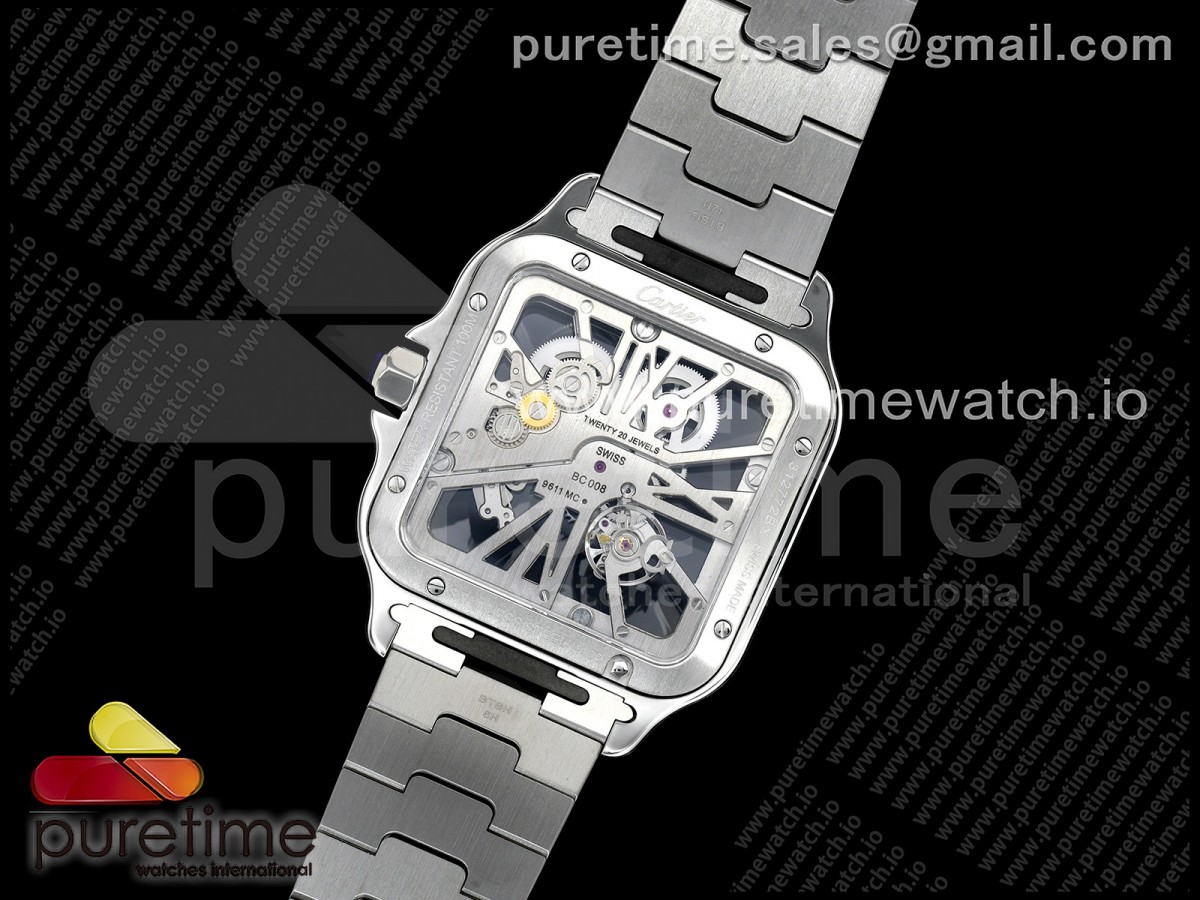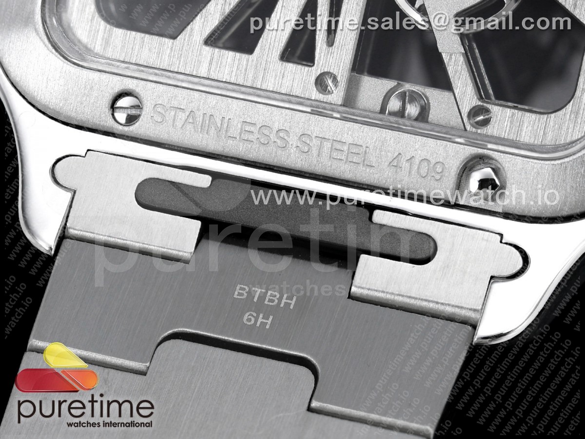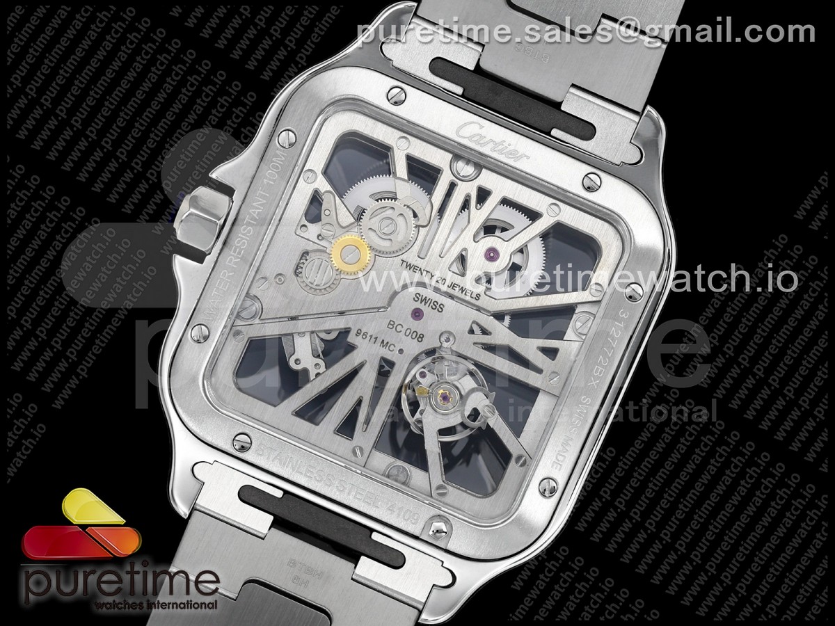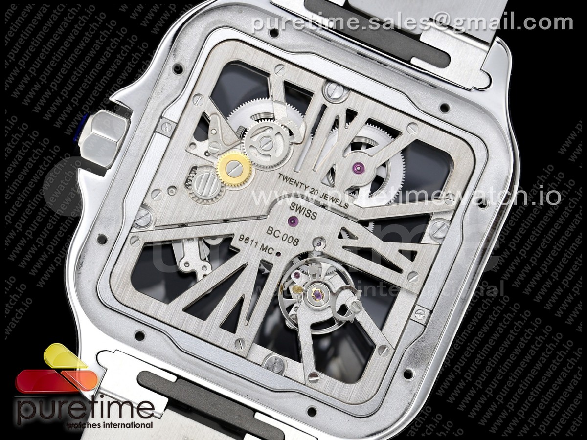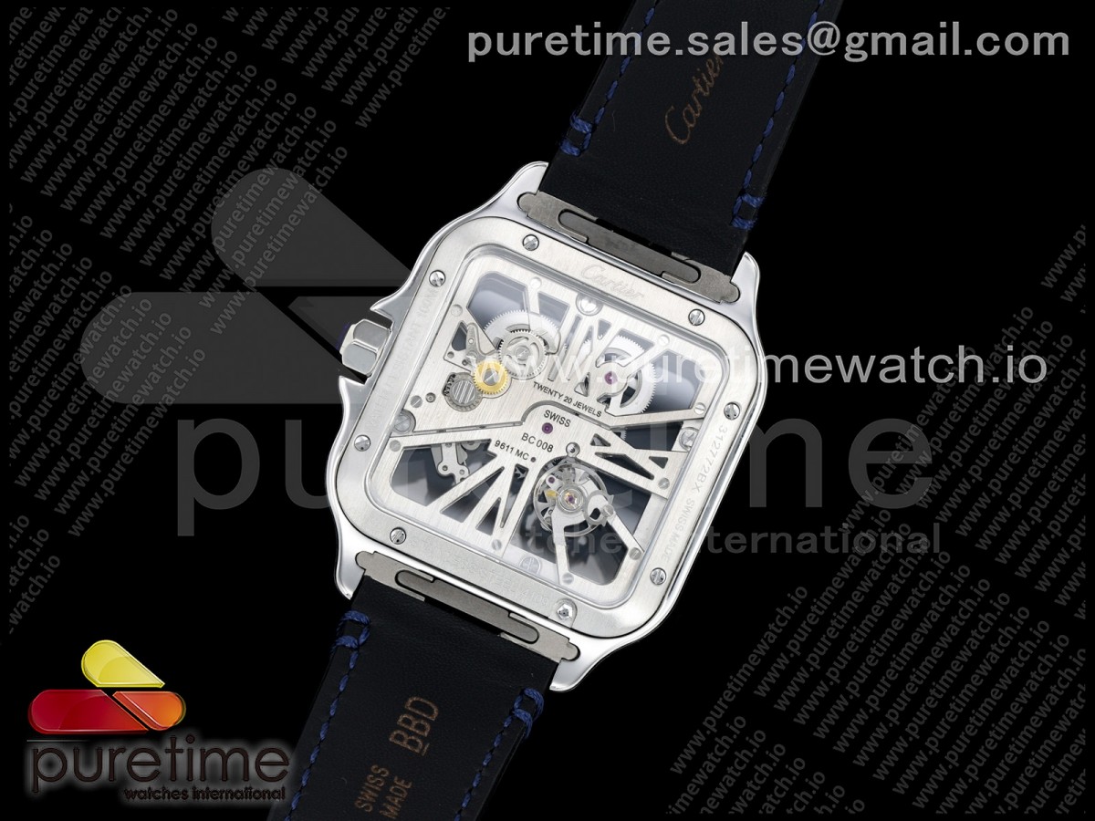 RICH 산토스 드 까르띠에 40미리 블루베젤 스켈레톤다이얼 스틸브레이슬릿(가죽스트랩) Santos Skeleton SS RICH 1:1 Best Edition Skeleton Dial Blue Bezel 9611MC Super Clone (2 Straps)Straps) > 산토스시리즈(SANTOS)