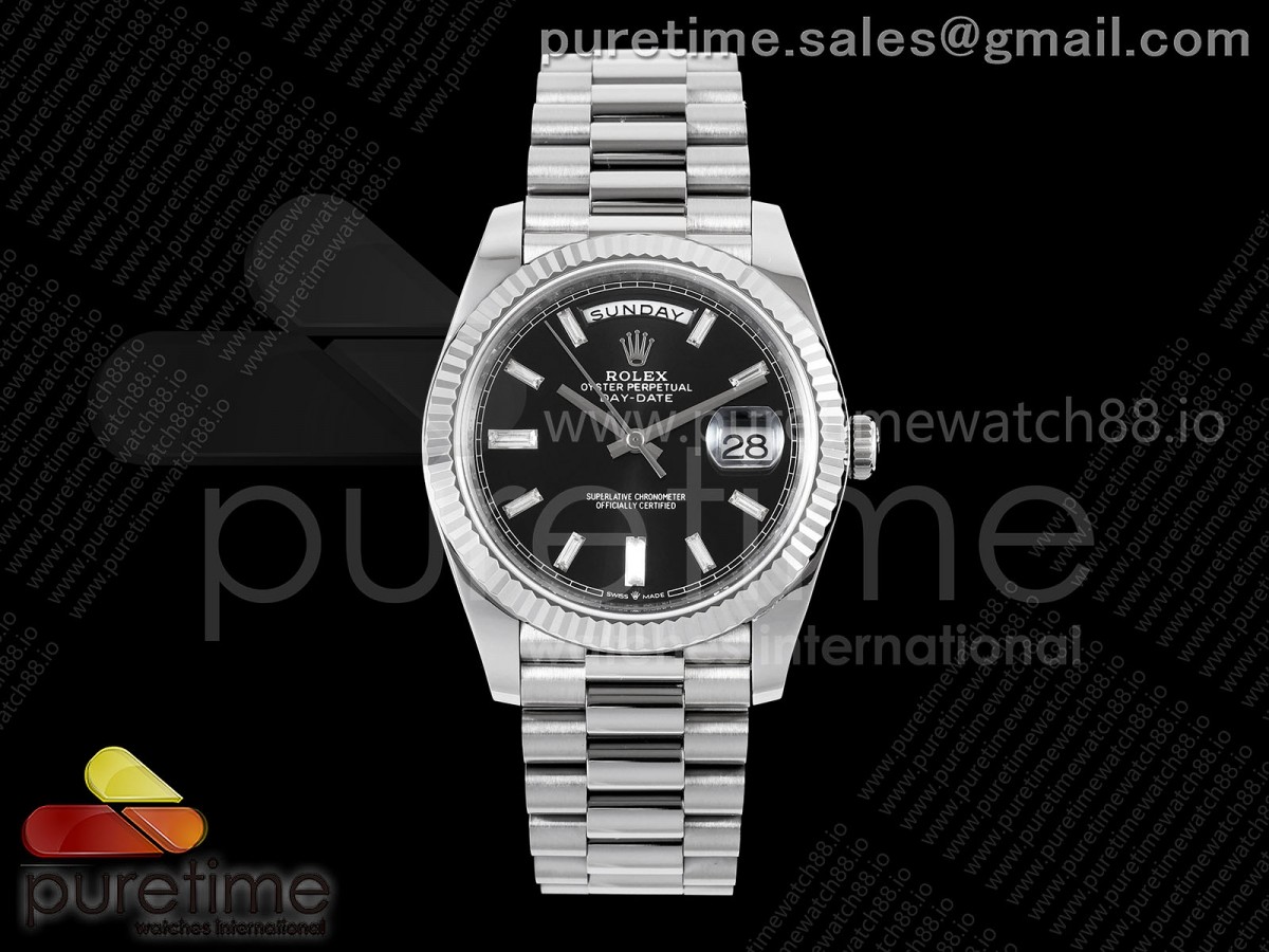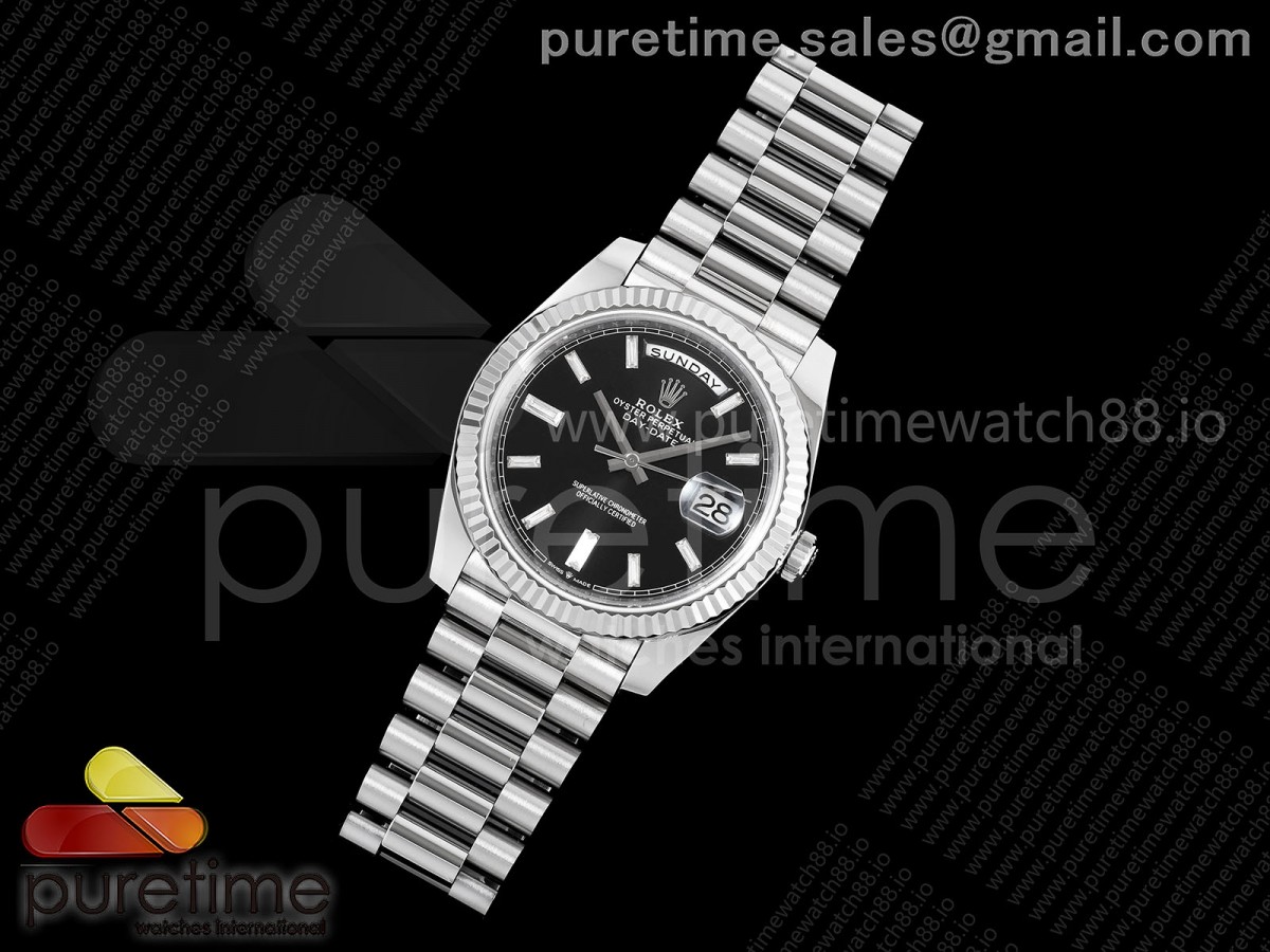 • TMF 롤렉스 데이데이트40 텅스텐(Cu-W) 208g 블랙바게트다이얼 스틸브레이슬릿 Day Date 40 SS TMF 1:1 Best Edition Black Crystal Dial on President Bracelet VR3255