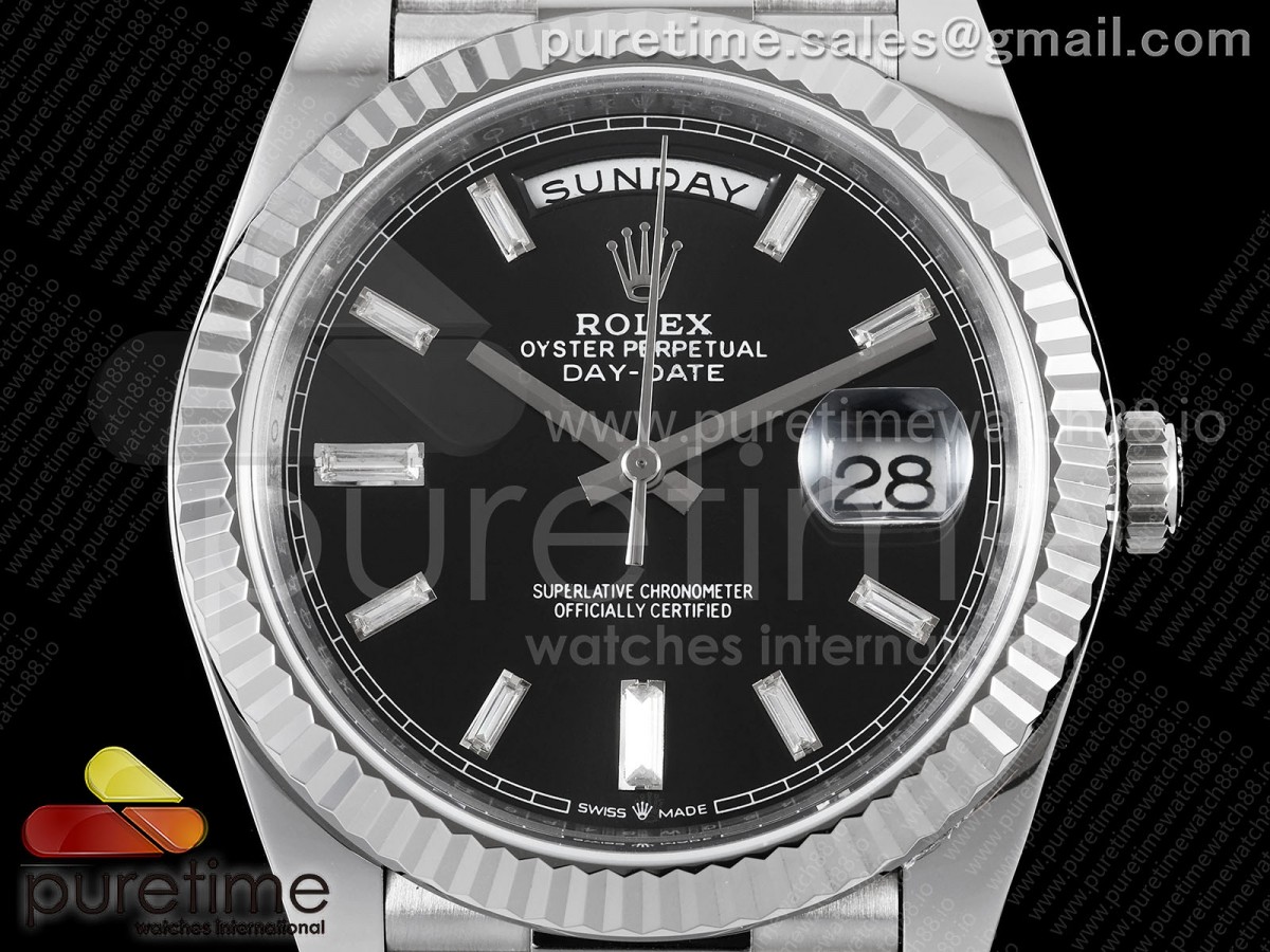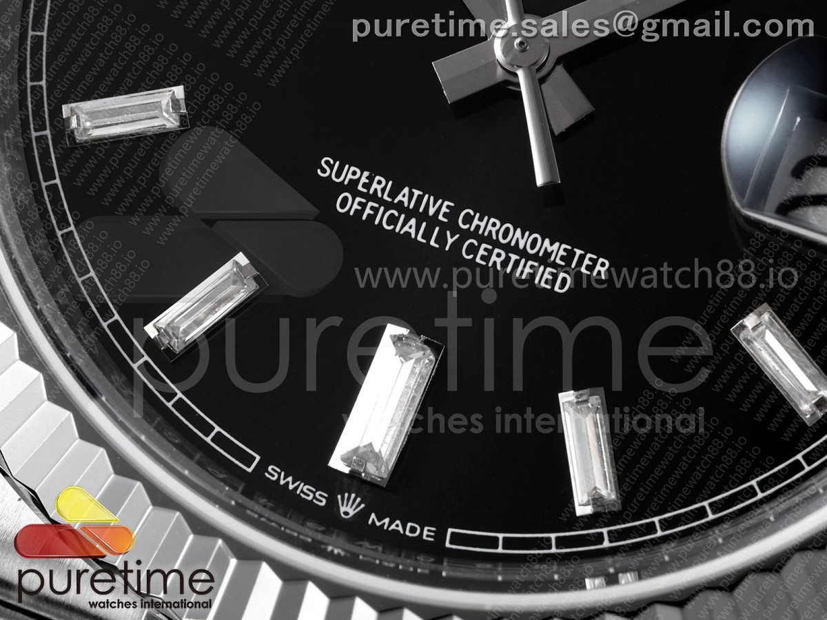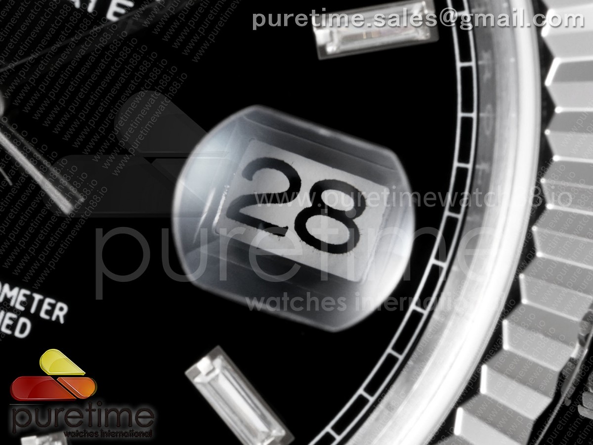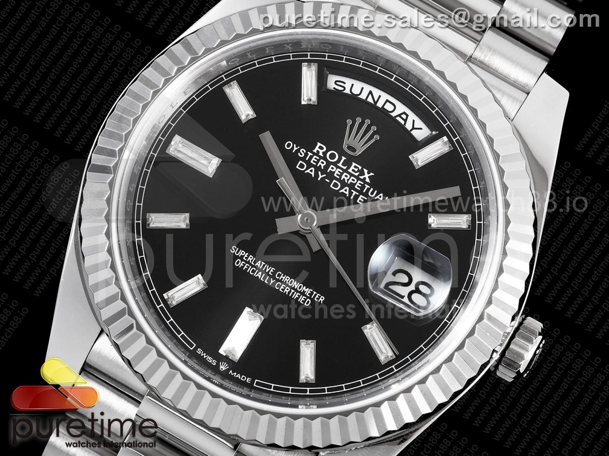 TMF 롤렉스 데이데이트40 텅스텐(Cu-W) 208g 블랙바게트다이얼 스틸브레이슬릿 Day Date 40 SS TMF 1:1 Best Edition Black Crystal Dial on President Bracelet VR3255 요약정보 및 구매