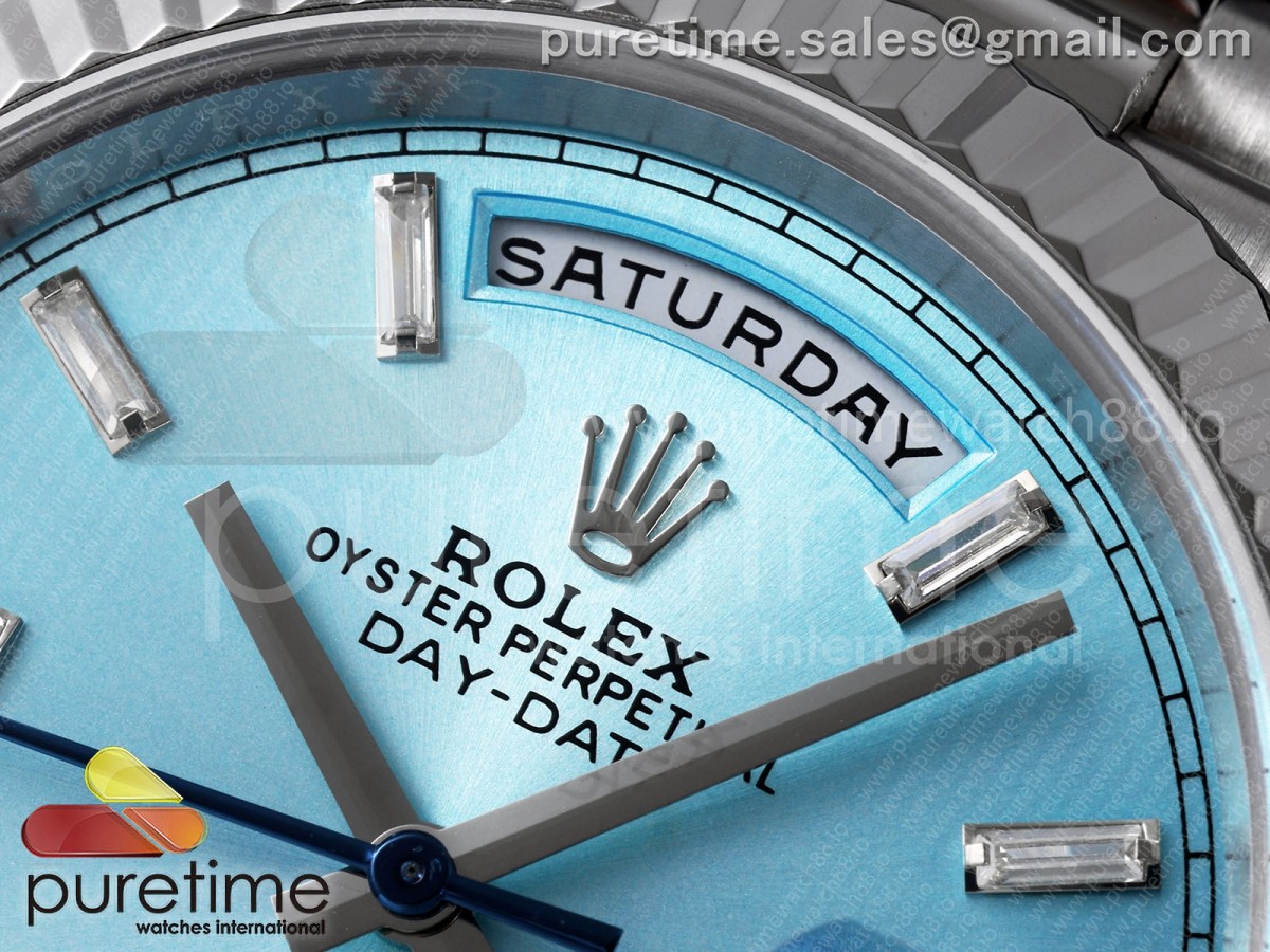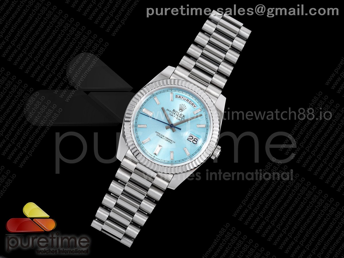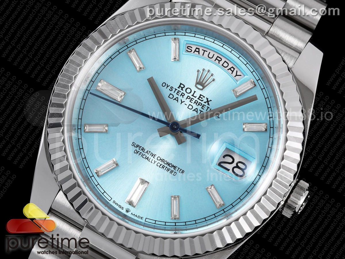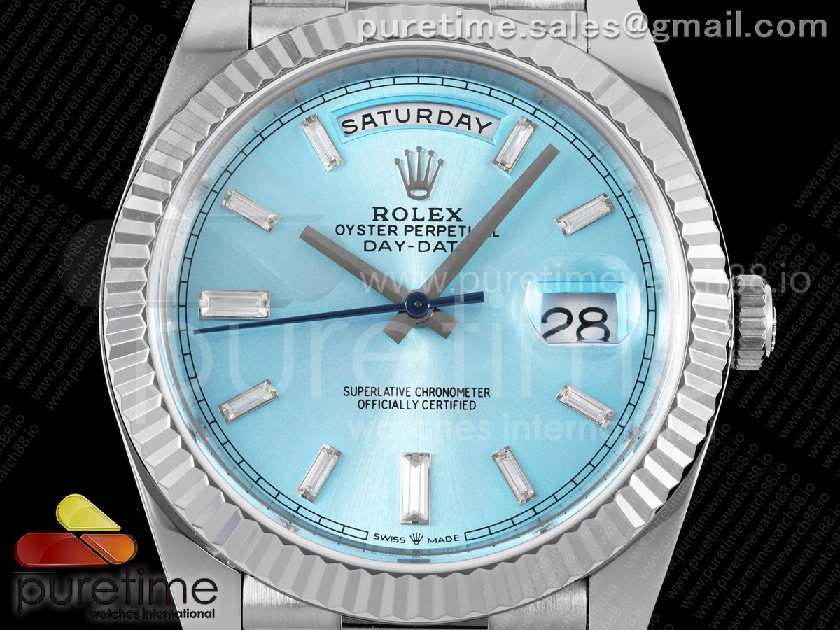 • TMF 롤렉스 데이데이트40 텅스텐(Cu-W) 208g 아이스블루바게트다이얼 스틸브레이슬릿 Day Date 40 SS TMF 1:1 Best Edition Ice Blue Crystal Dial on President Bracelet VR3255
