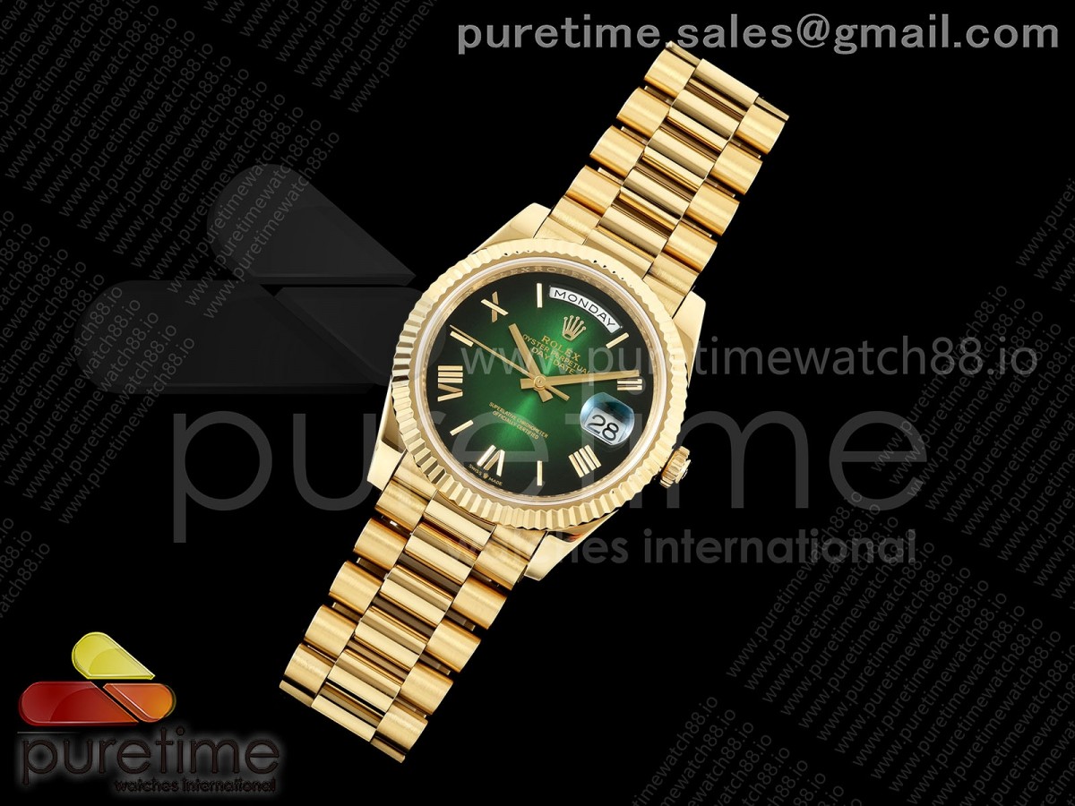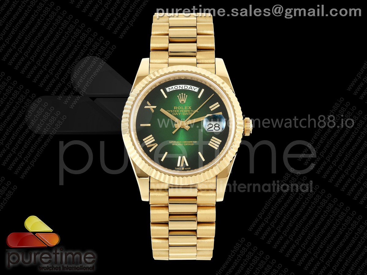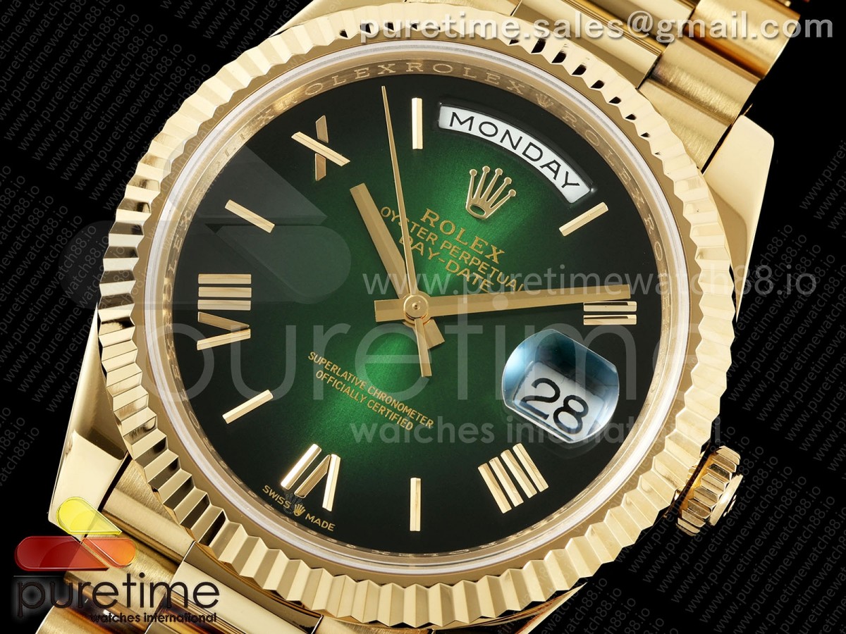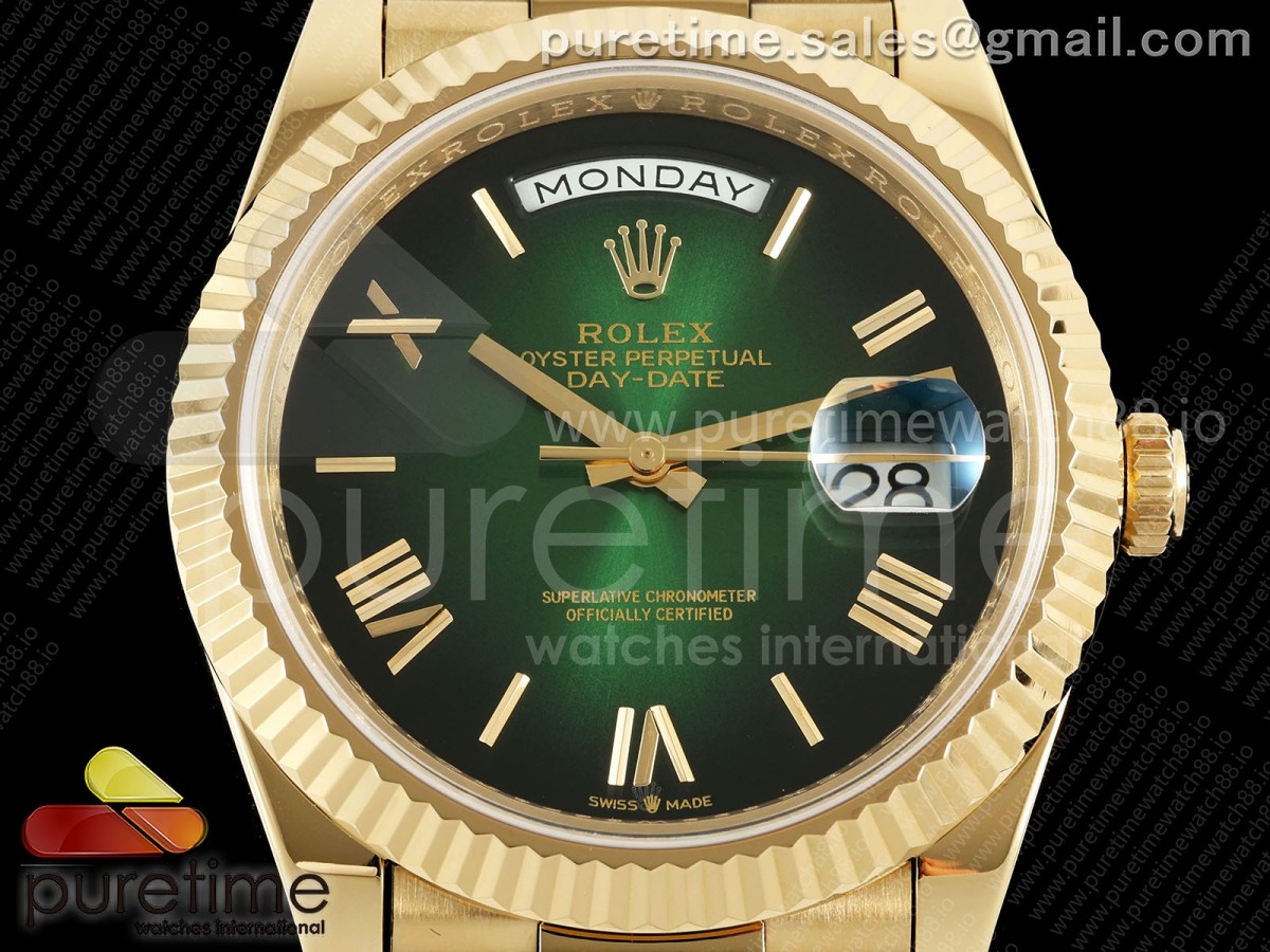 • CBDF 롤렉스 데이데이트40 옐로우골드 텅스텐(Cu-W) 그린옴브레로만다이얼 스틸브레이슬릿 210g Day Date 40 YG CBDF 1:1 Best Edition Green Ombre Roman Dial on President Bracelet VR3255 (210g)