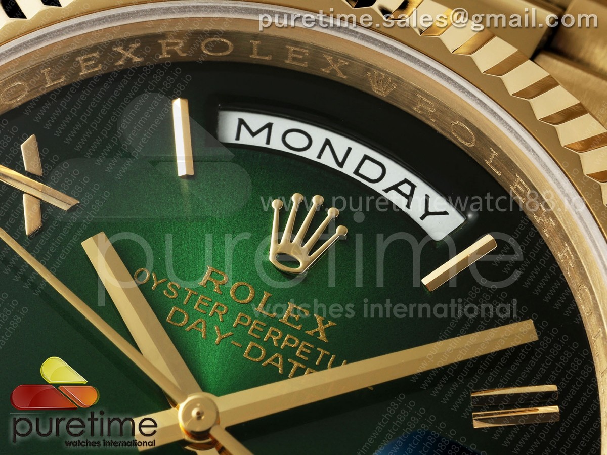 CBDF 롤렉스 데이데이트40 옐로우골드 텅스텐(Cu-W) 그린옴브레로만다이얼 스틸브레이슬릿 210g Day Date 40 YG CBDF 1:1 Best Edition Green Ombre Roman Dial on President Bracelet VR3255 (210g) > 데이데이트(DAYDATE)