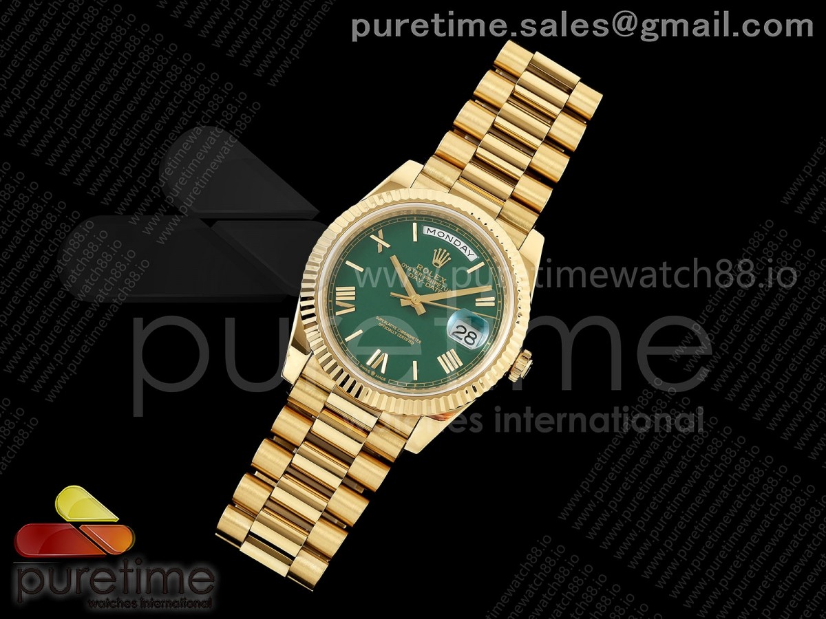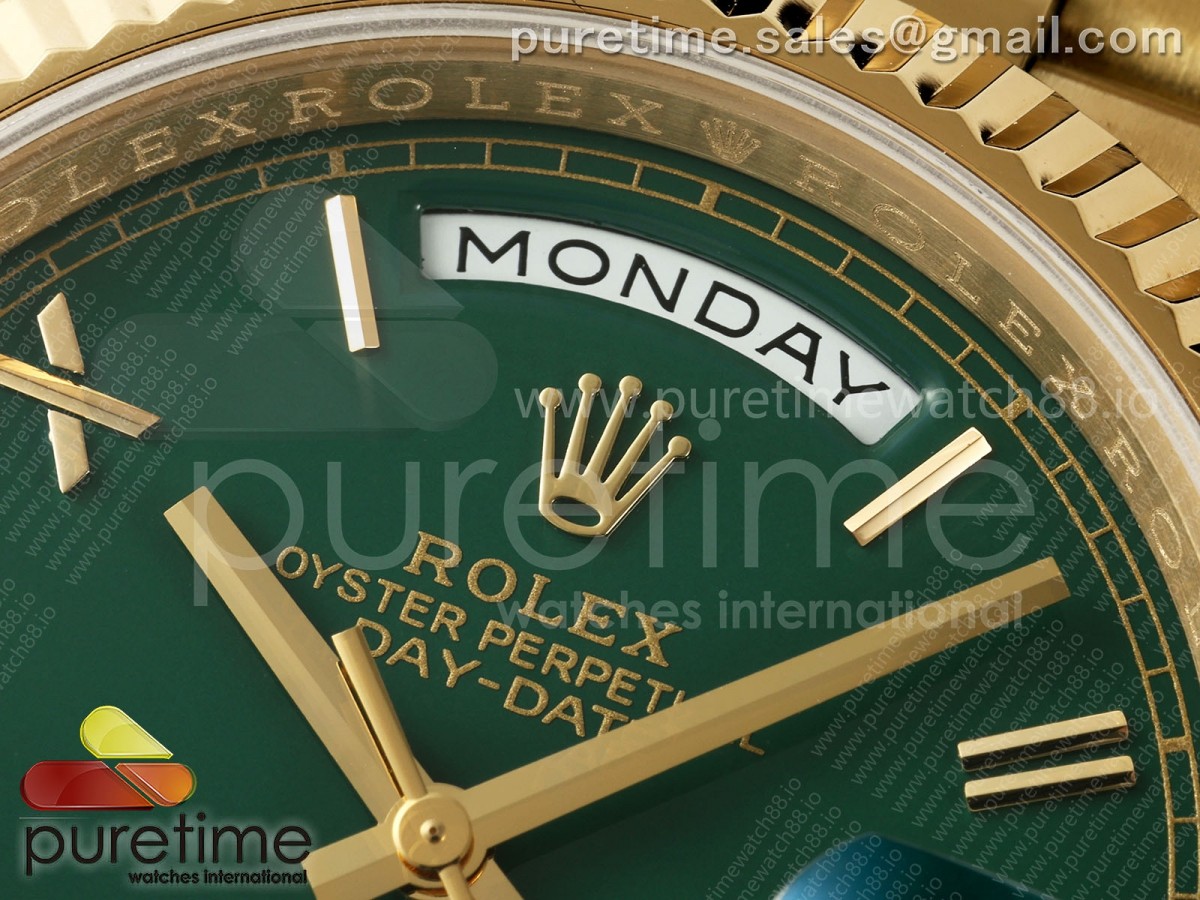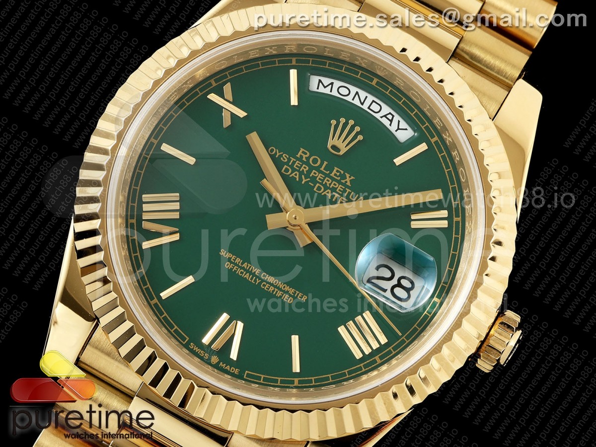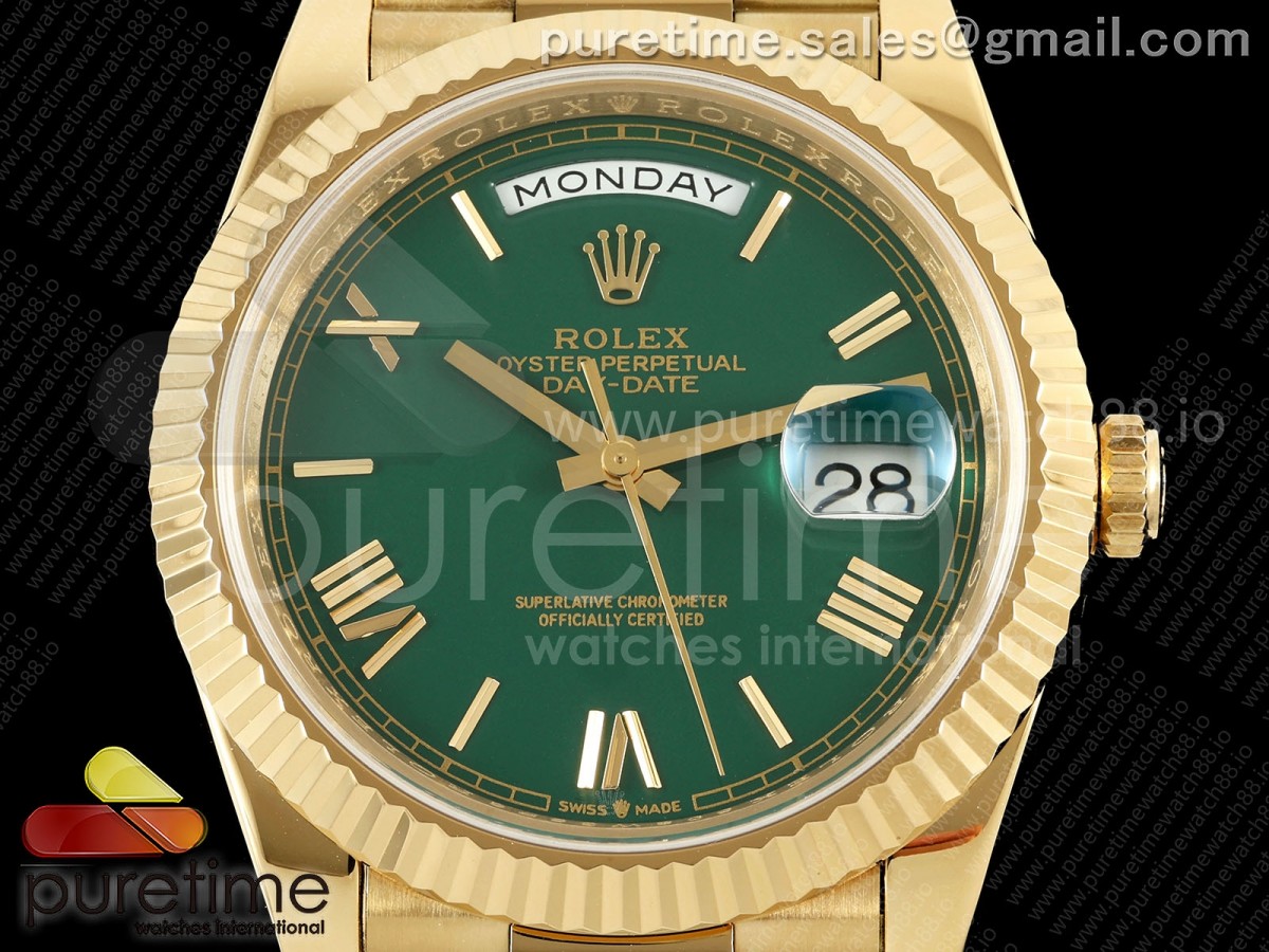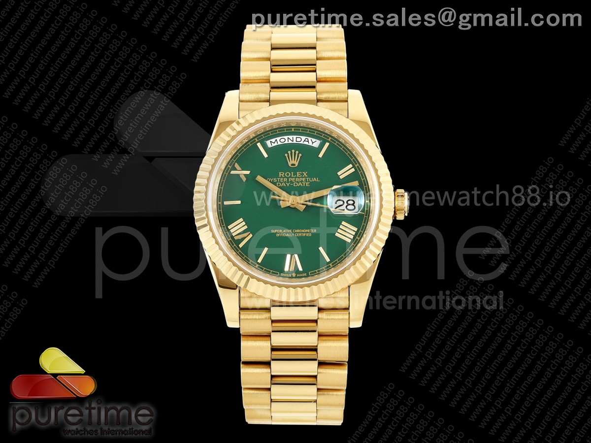 CBDF 롤렉스 데이데이트40 옐로우골드 텅스텐(Cu-W) 그린로만다이얼 스틸브레이슬릿 210g Day Date 40 YG CBDF 1:1 Best Edition Green Roman Dial on President Bracelet VR3255 (210g) > 데이데이트(DAYDATE)