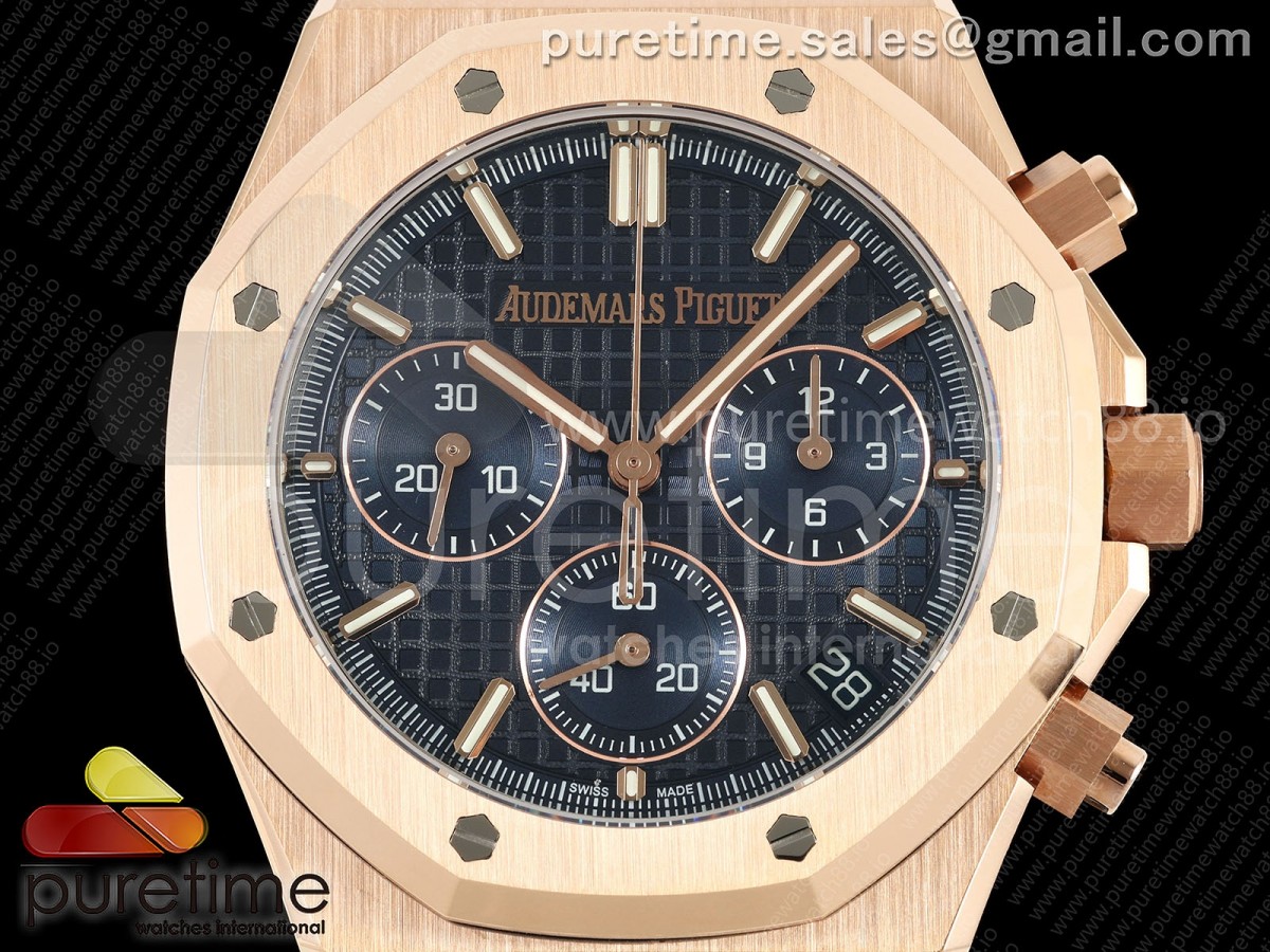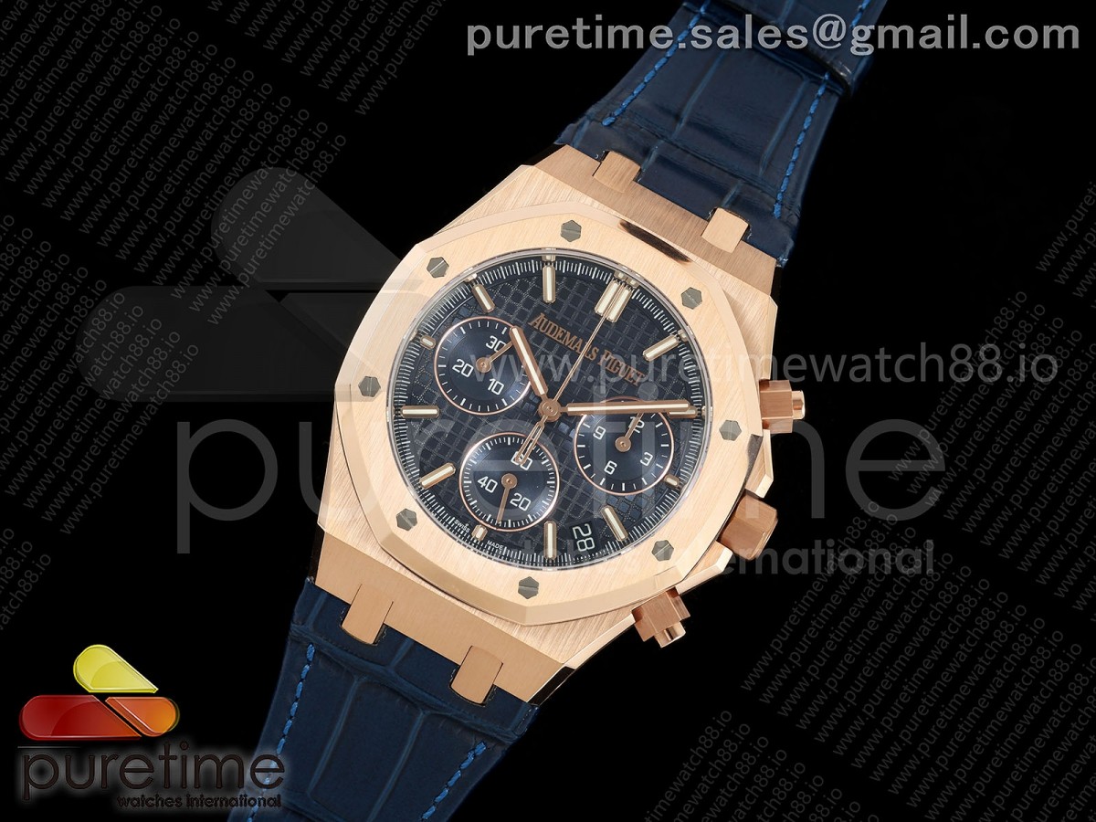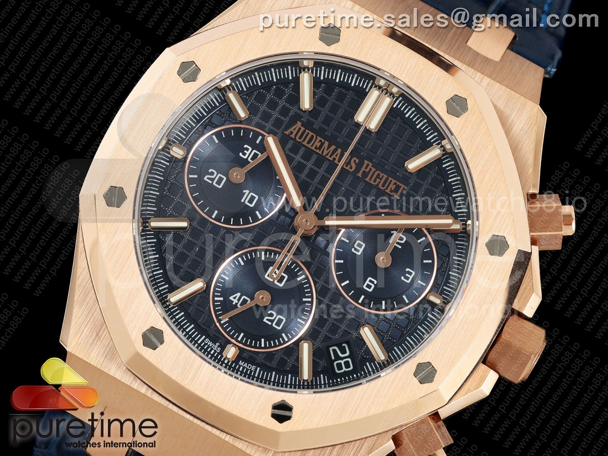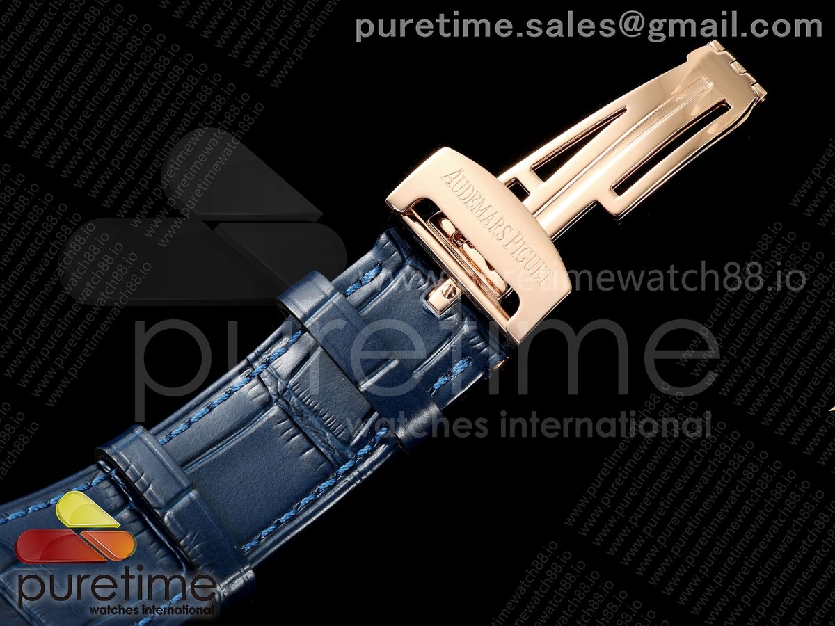 • DDF 오데마피게 로얄오크 크로노 26240 로즈골드 블루다이얼 블루가죽스트랩 175g Royal Oak Chrono 26240 RG DDF 1:1 Best Edition Blue Dial on Blue Leather Bracelet DD4401 Super Clone (SW Dial)