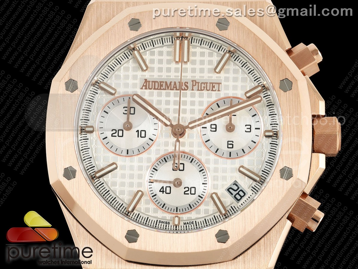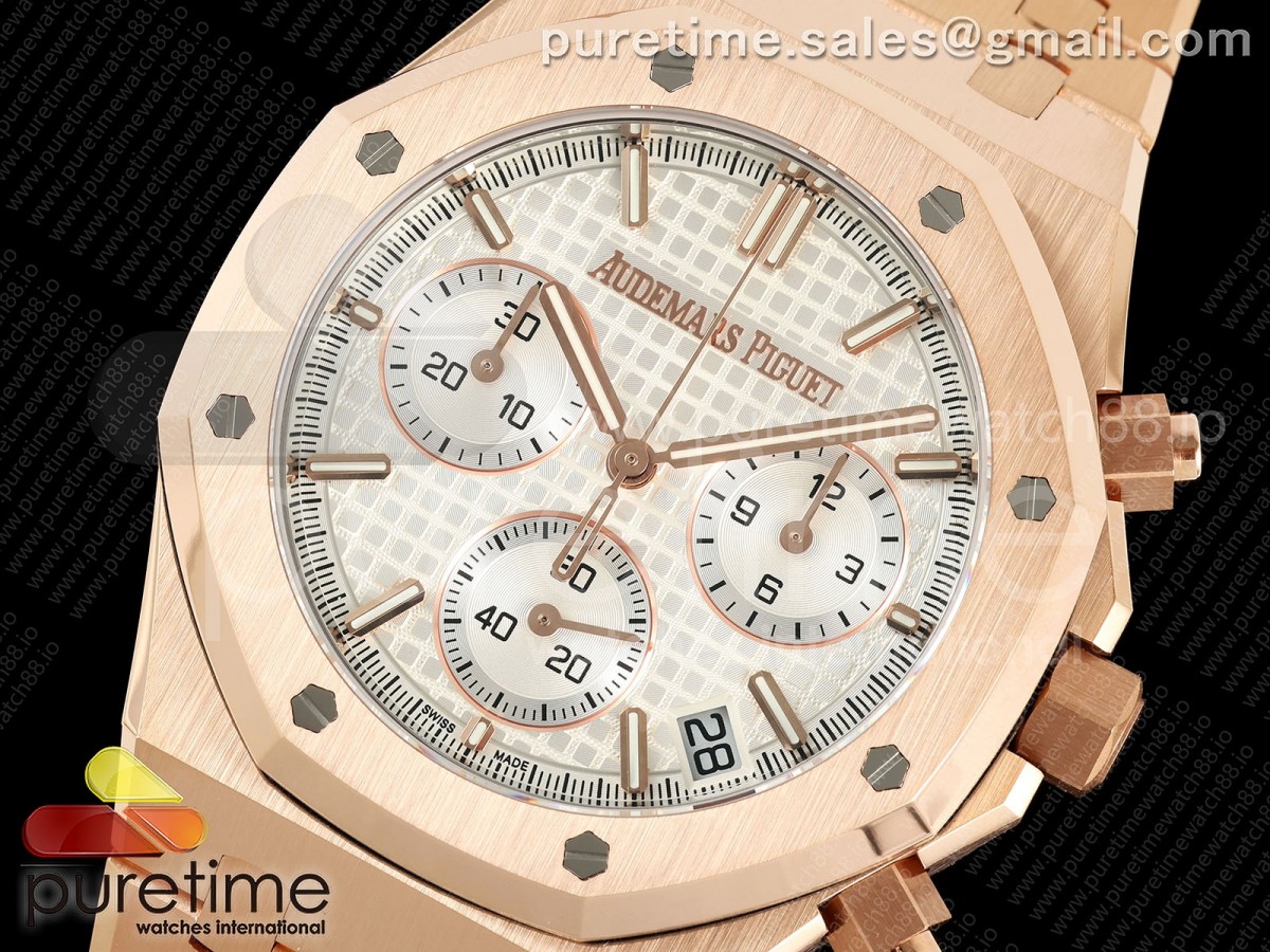 DDF 오데마피게 로얄오크 크로노 26240 로즈골드 화이트다이얼 스틸브레이슬릿 205g Royal Oak Chrono 26240 RG DDF 1:1 Best Edition White Dial on RG Bracelet DD4401 Super Clone (SW Dial) > 로얄오크크로노(ROYALOAK CHRONOGRAPH)