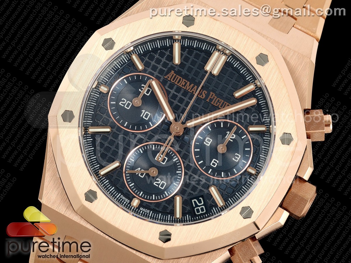 • DDF 오데마피게 로얄오크 크로노 26240 로즈골드 블루다이얼 스틸브레이슬릿 205g Royal Oak Chrono 26240 RG DDF 1:1 Best Edition Blue Dial on RG Bracelet DD4401 Super Clone (SW Dial)