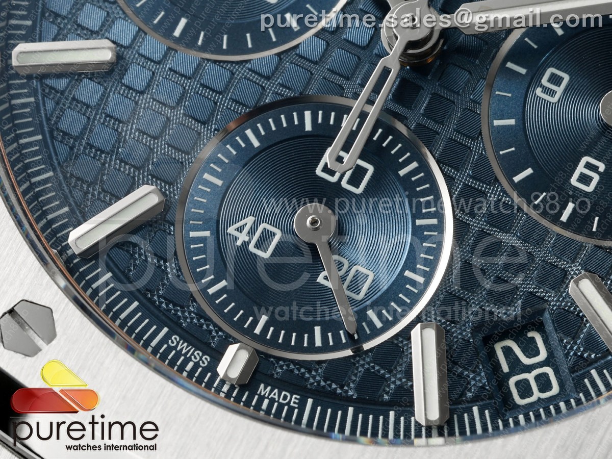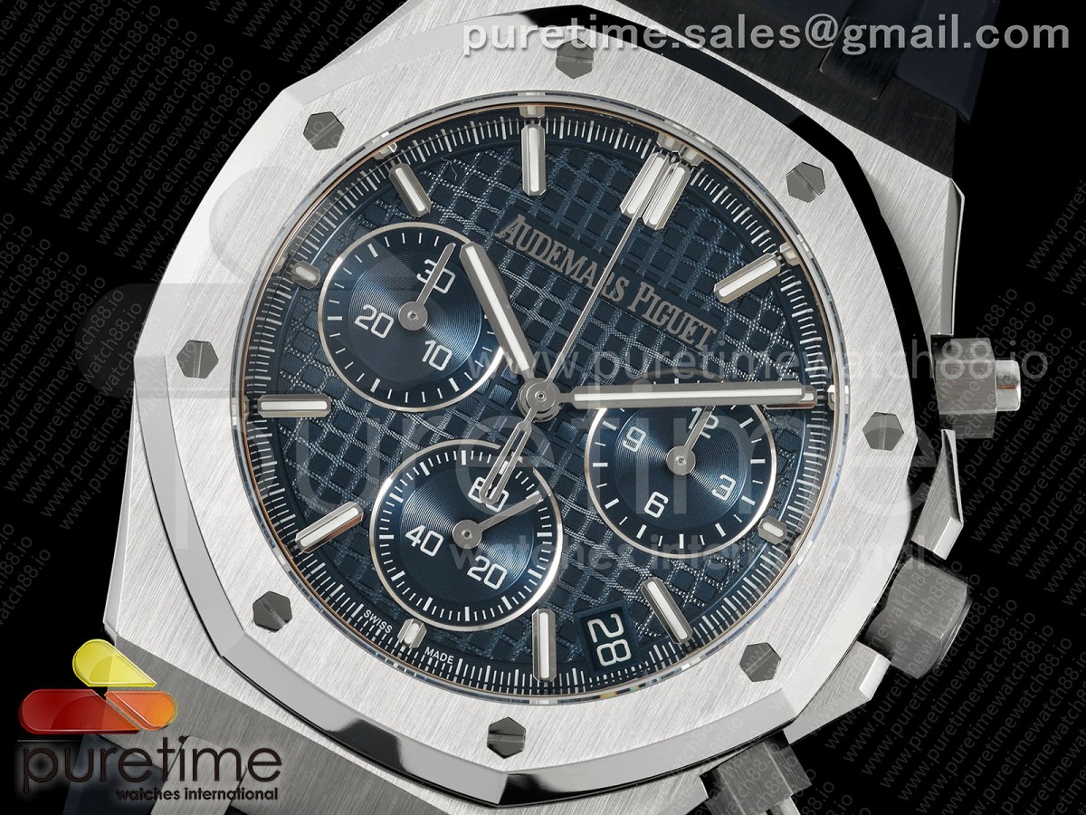 • DDF 오데마피게 로얄오크 크로노 26420 SW블루다이얼 블루러버스트랩 Royal Oak Chrono 26240 SS DDF 1:1 Best Edition Blue Dial on Rubber Strap DD4401 Super Clone (SW Dial)