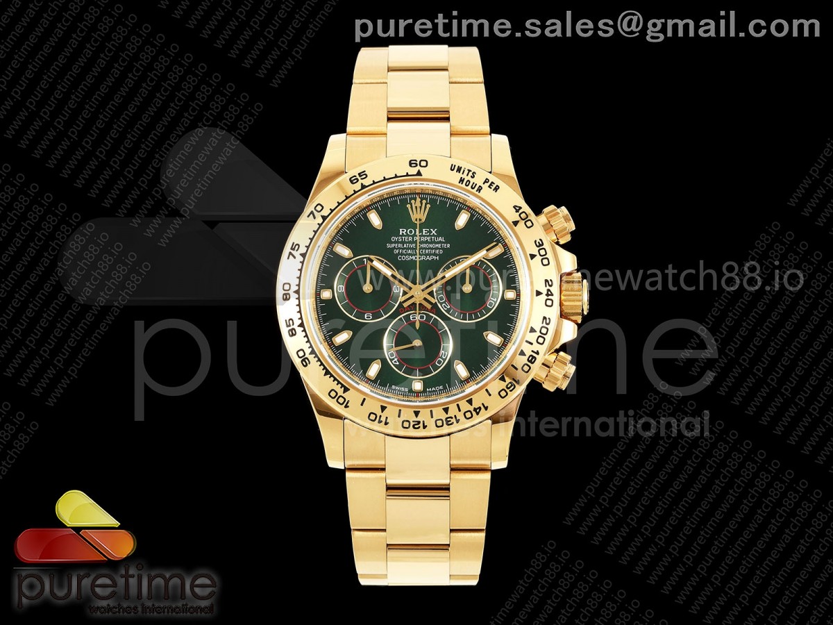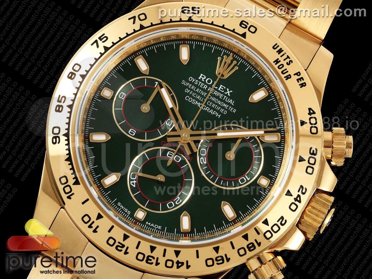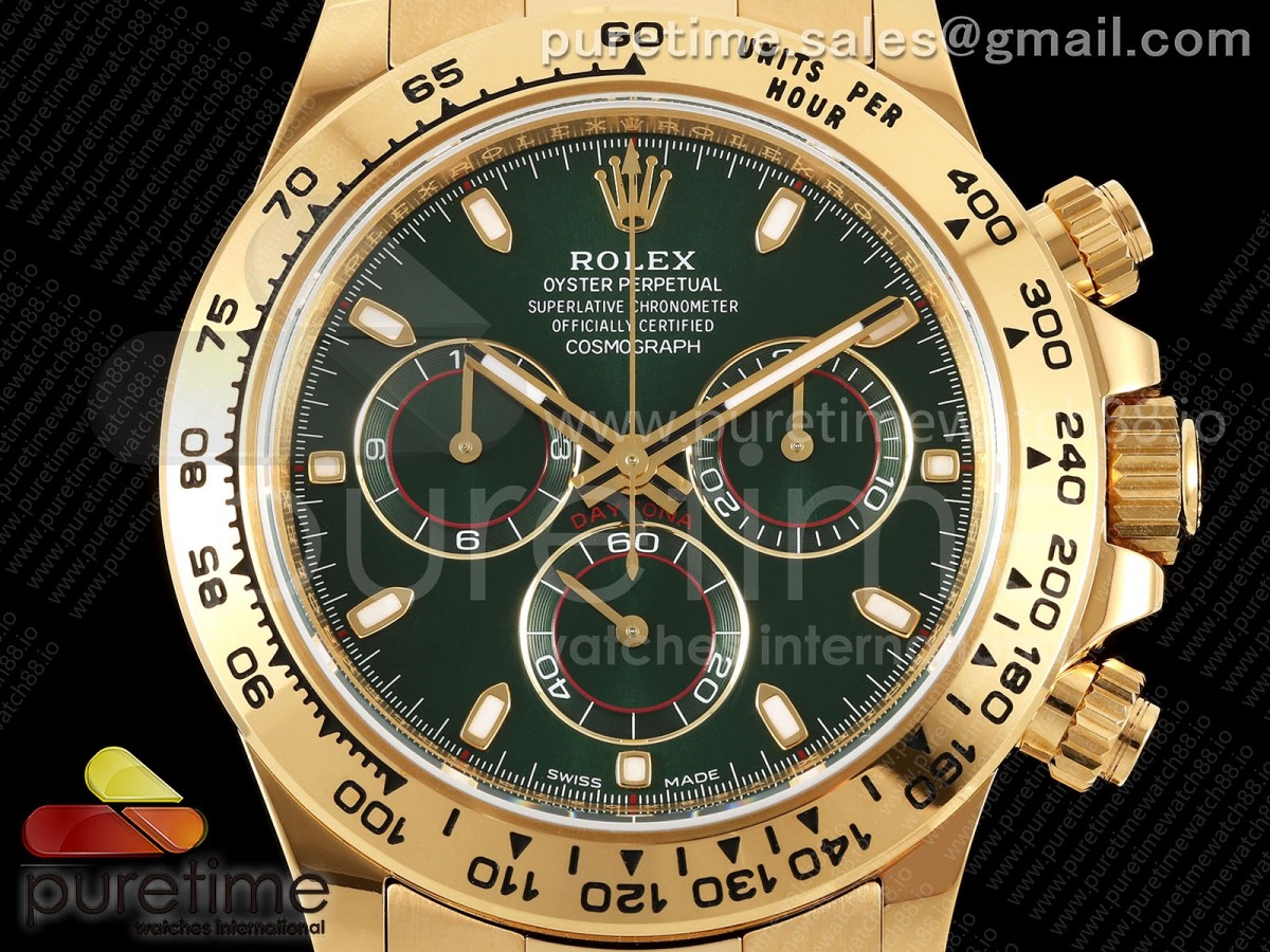 • VSF 롤렉스 데이토나 텅스텐(Cu-W) 옐로우골드 그린다이얼 스틸브레이슬릿 179g Daytona 116508 VSF 1:1 Best Edition Green Dial on YG Bracelet DD4130 (Gain Weight)