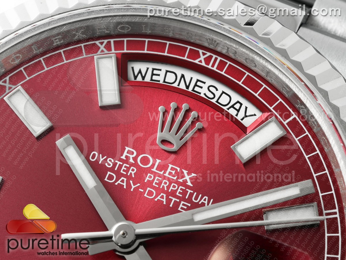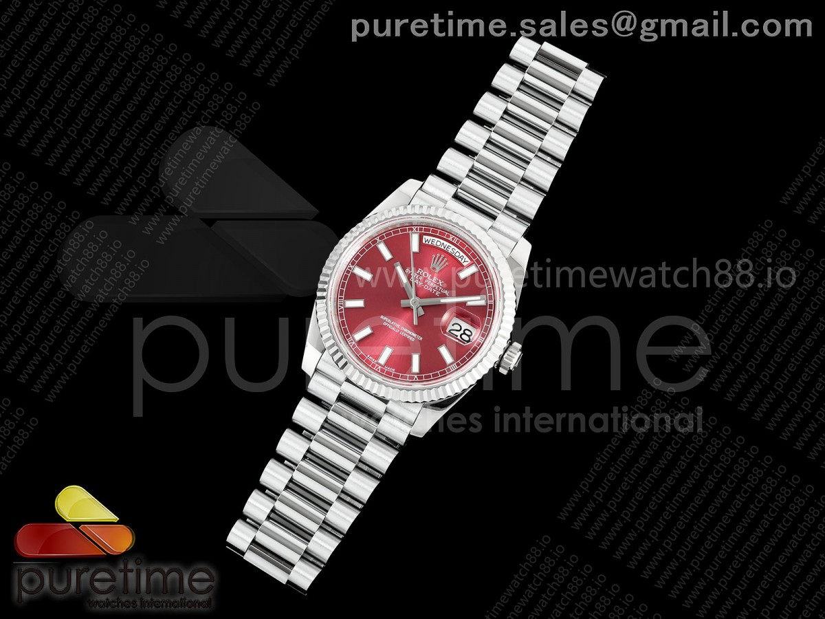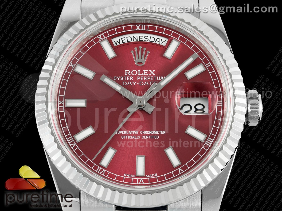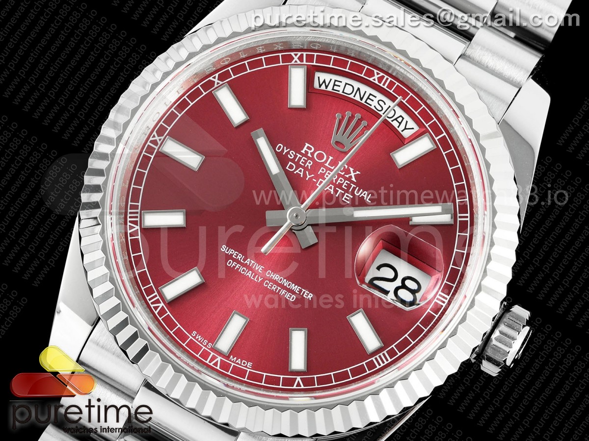 QF V3 롤렉스 데이데이트36 레드다이얼 스틸브레이슬릿 Day Date 36 SS QF 1:1 Best Edition 904L Steel Red Stick Dial on President Bracelet VR3255 V3 > 데이데이트(DAYDATE)