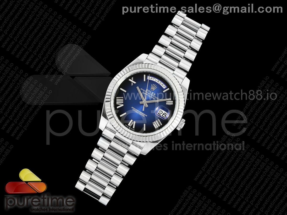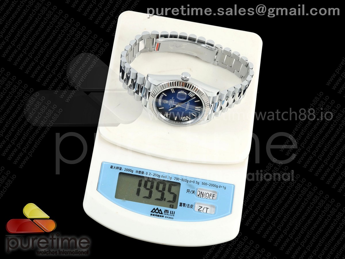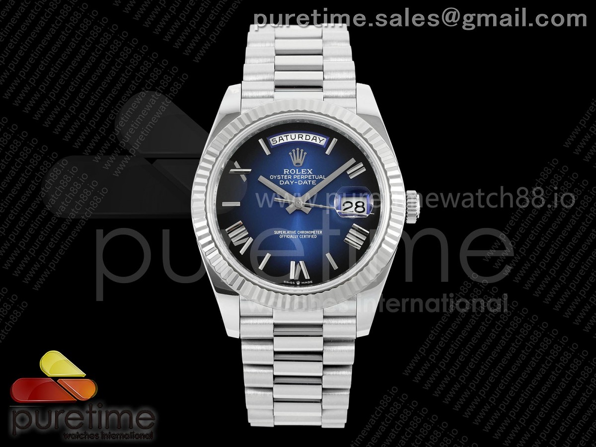 • QF V6 롤렉스 데이데이트40 텅스텐(Cu-W) 블루옴브레다이얼 스틸브레이슬릿 199g DayDate 40 SS QF 1:1 Best Edition Blue Ombre Dial on President Bracelet A2836 V6 (Gain Weight)