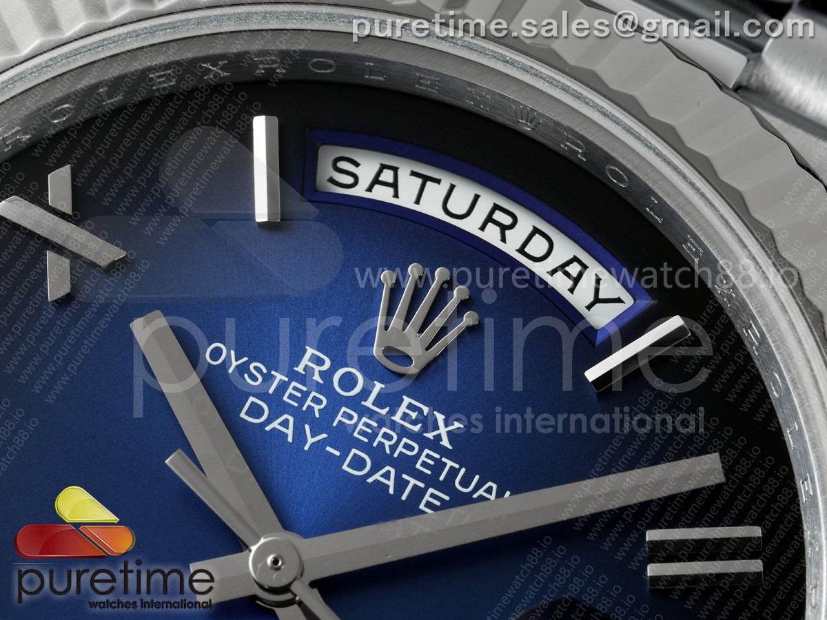QF V6 롤렉스 데이데이트40 텅스텐(Cu-W) 블루옴브레다이얼 스틸브레이슬릿 199g DayDate 40 SS QF 1:1 Best Edition Blue Ombre Dial on President Bracelet A2836 V6 (Gain Weight) > 데이데이트(DAYDATE)