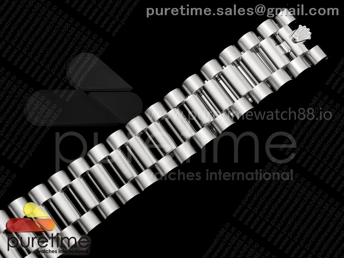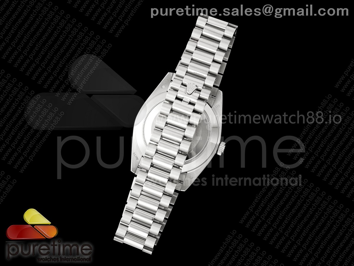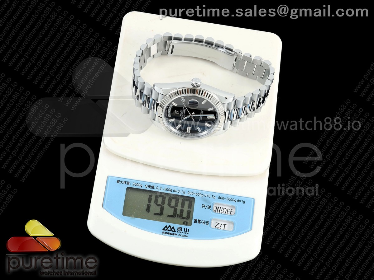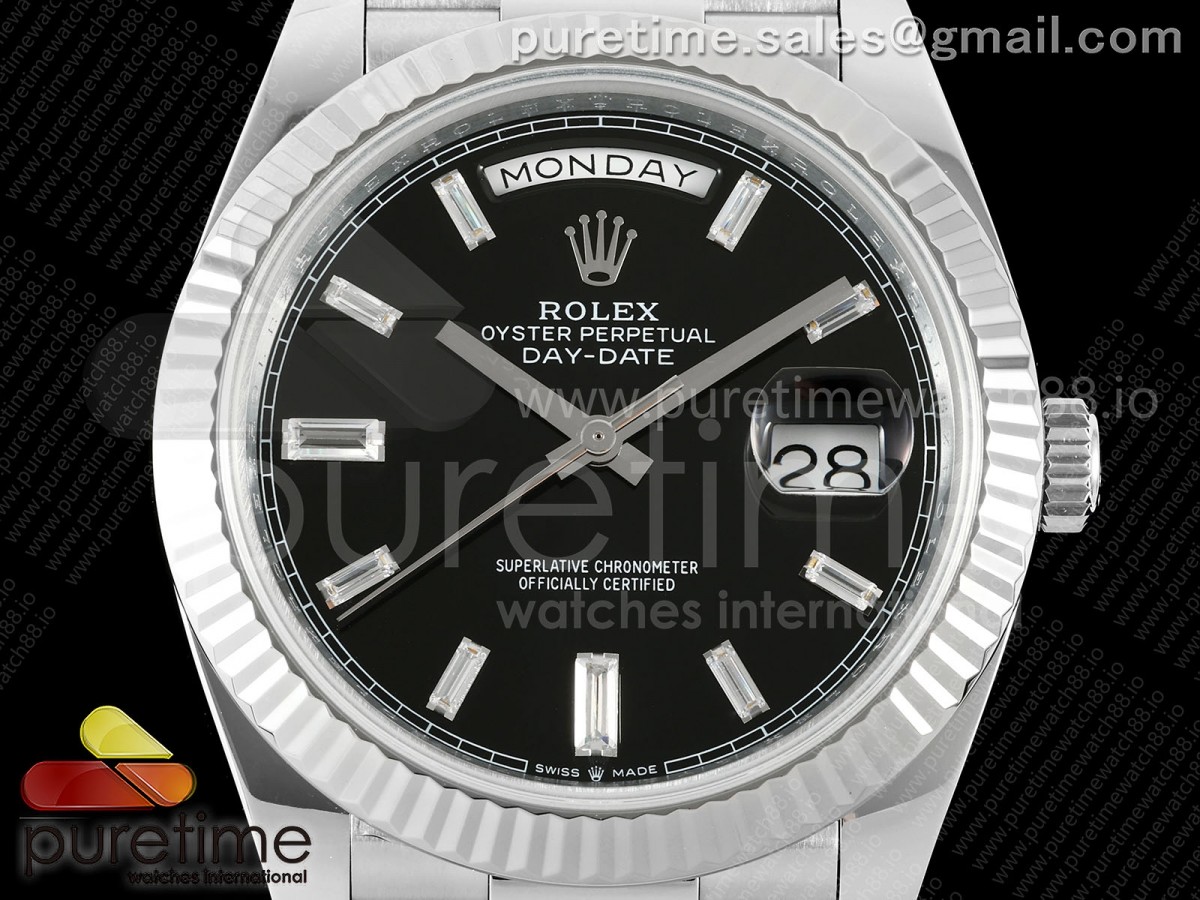 • QF V6 롤렉스 데이데이트40 텅스텐(Cu-W) 블랙바게트다이얼 스틸브레이슬릿 199g DayDate 40 SS QF 1:1 Best Edition Black Crystal Dial on President Bracelet A2836 V6 (Gain Weight)