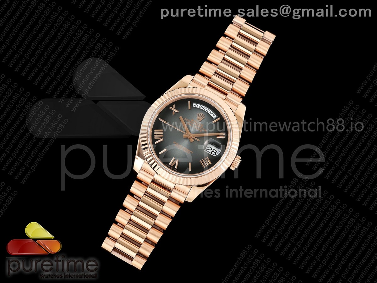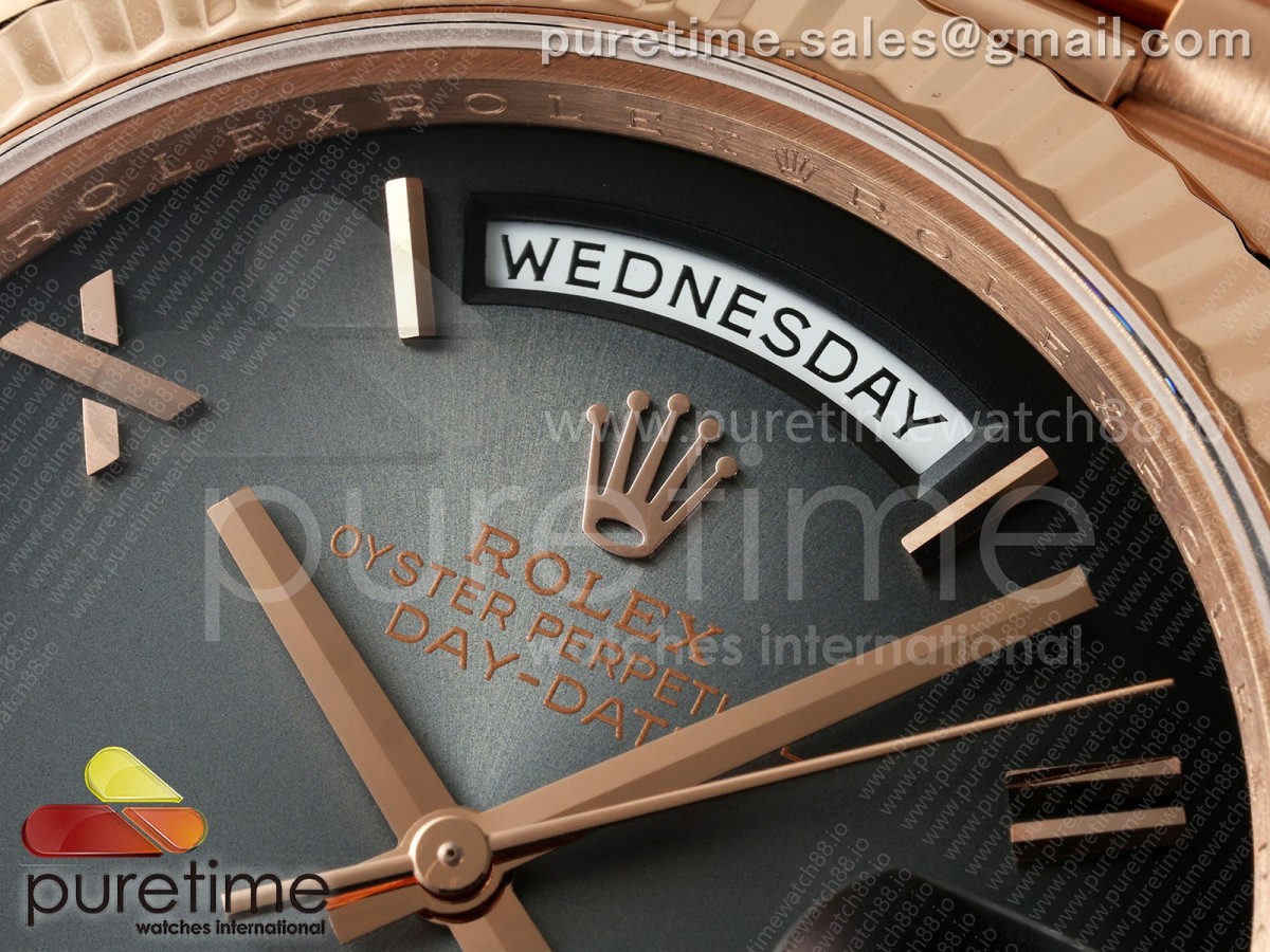 QF V6 롤렉스 데이데이트40 로즈골드 텅스텐(Cu-W) 그레이옴브레다이얼 스틸브레이슬릿 199g DayDate 40 RG QF 1:1 Best Edition Gray Ombre Roman Dial on President Bracelet A2836 V6 (Gain Weight) > 데이데이트(DAYDATE)