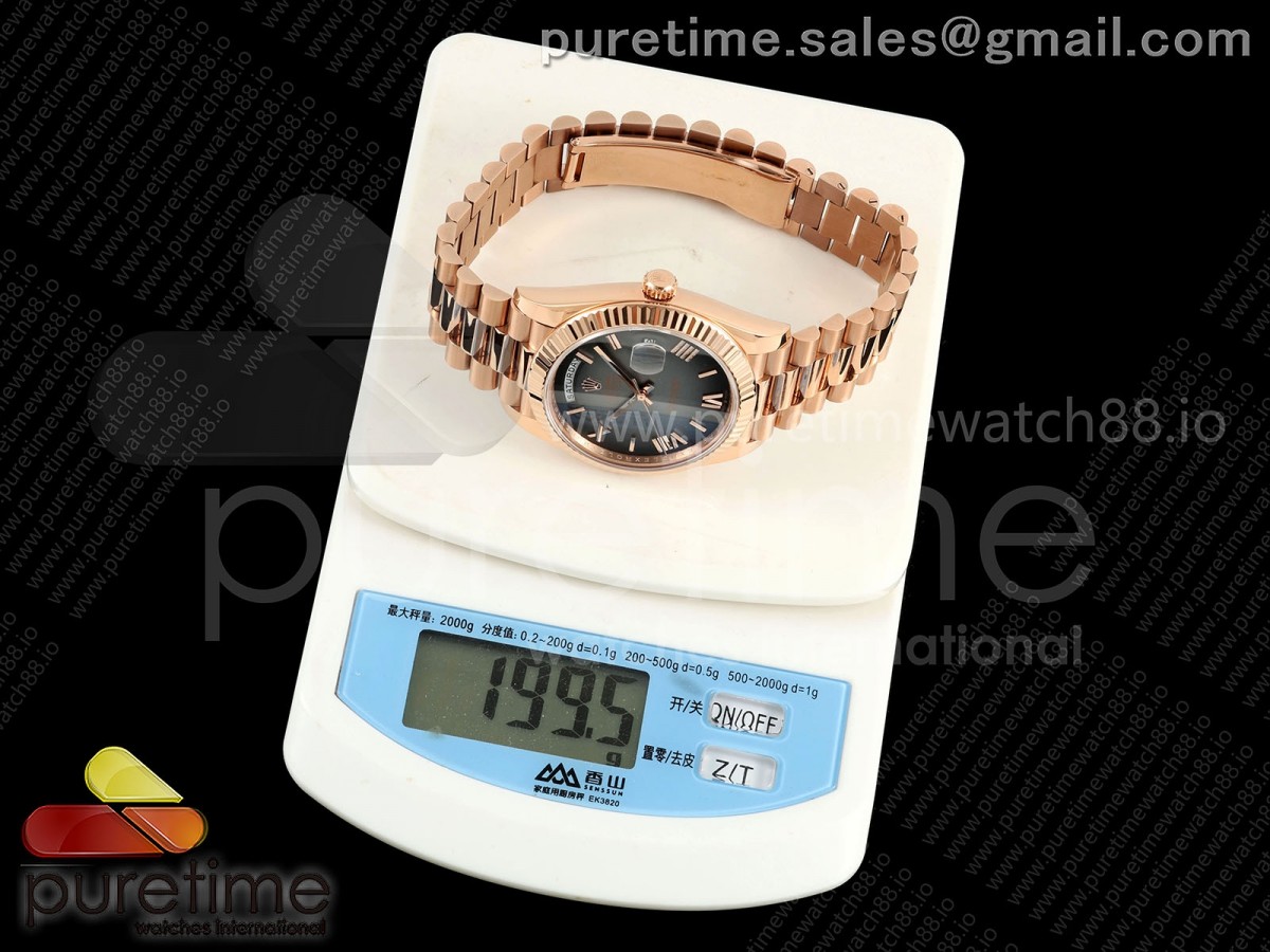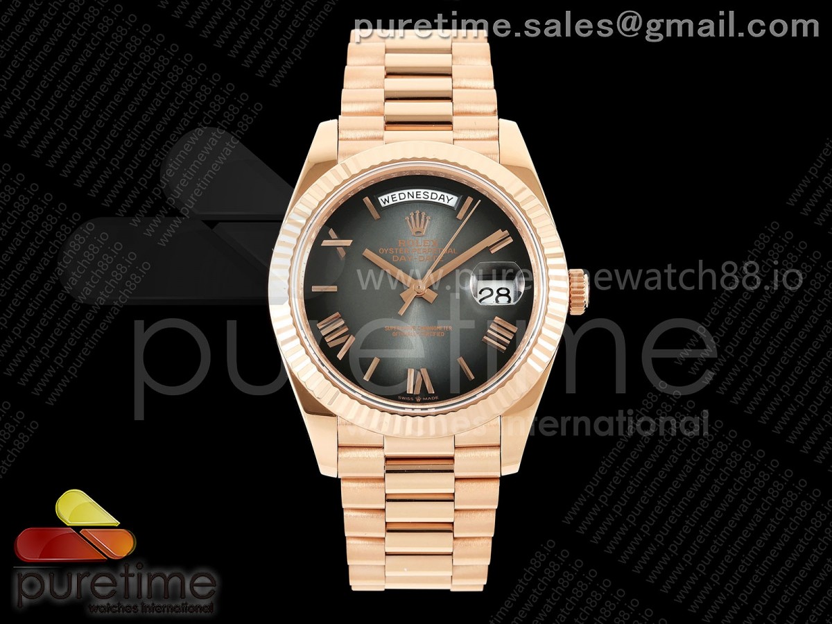 • QF V6 롤렉스 데이데이트40 로즈골드 텅스텐(Cu-W) 그레이옴브레다이얼 스틸브레이슬릿 199g DayDate 40 RG QF 1:1 Best Edition Gray Ombre Roman Dial on President Bracelet A2836 V6 (Gain Weight)