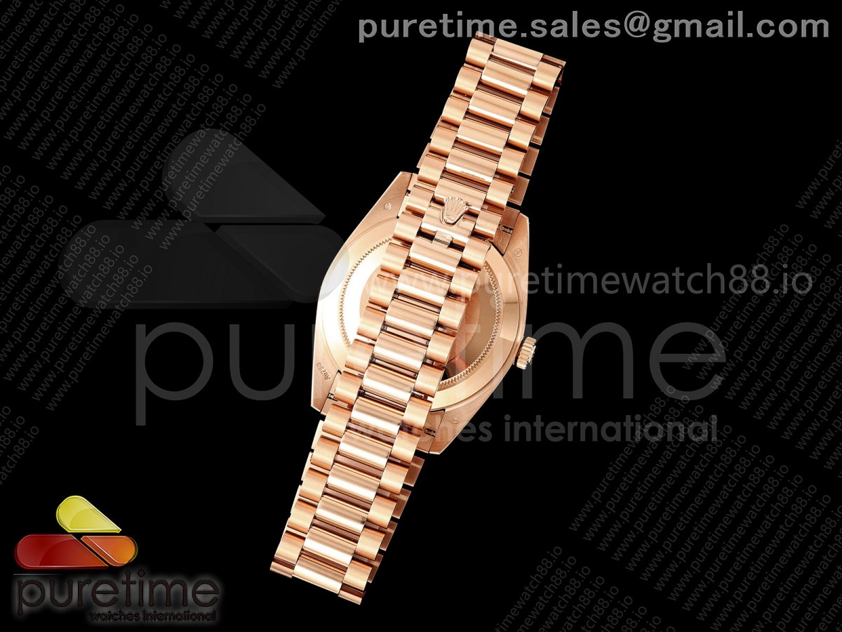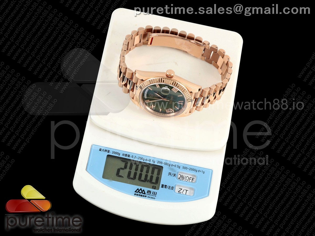 • QF V6 롤렉스 데이데이트40 로즈골드 텅스텐(Cu-W) 그린로만다이얼 스틸브레이슬릿 199g DayDate 40 RG QF 1:1 Best Edition Green Roman Dial on President Bracelet A2836 V6 (Gain Weight)