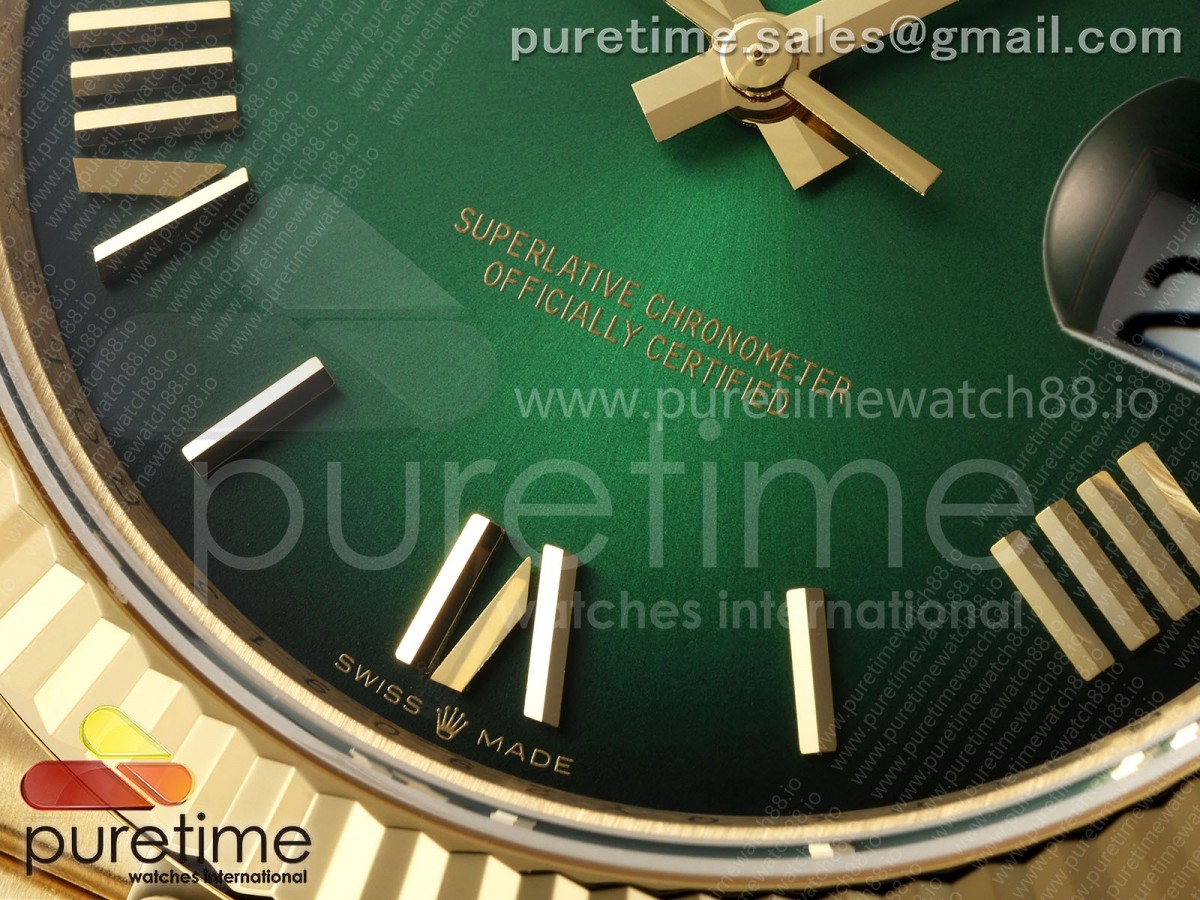 QF V6 롤렉스 데이데이트40 옐로우골드 텅스텐(Cu-W) 그린옴브레로만다이얼 스틸브레이슬릿 199g DayDate 40 YG QF 1:1 Best Edition Green Ombre Roman Dial on President Bracelet A2836 V6 (Gain Weight)