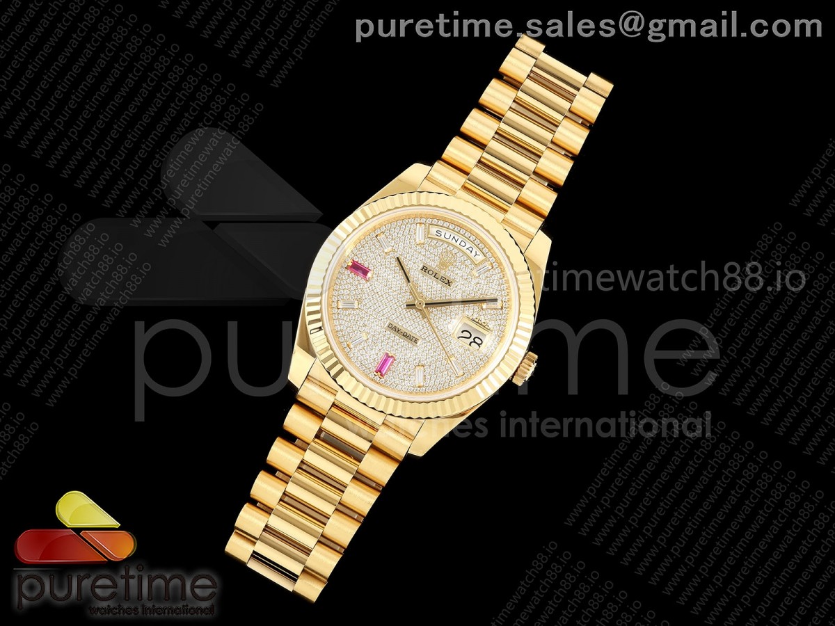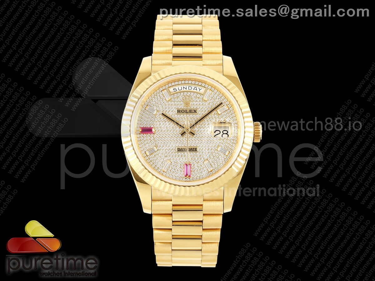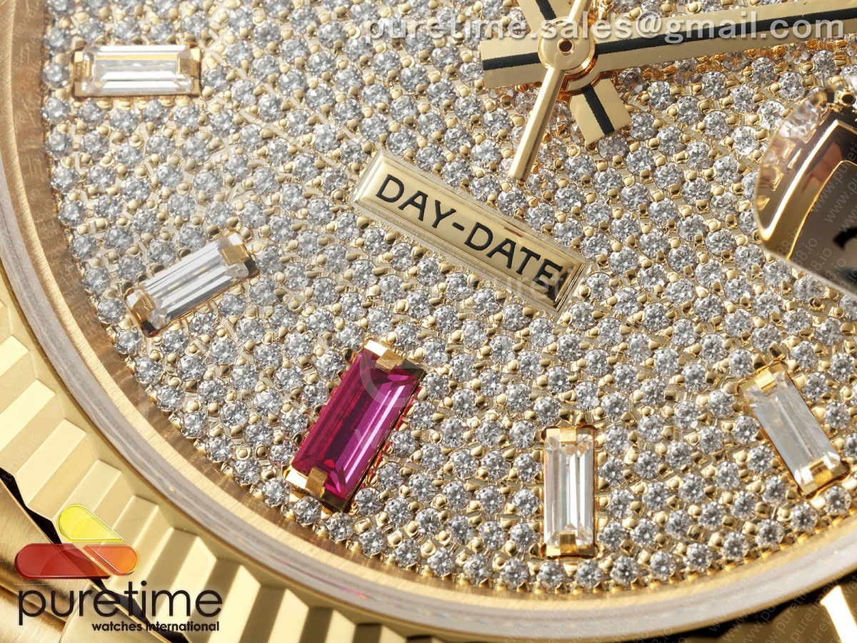 QF V8 롤렉스 데이데이트40 옐로우골드 텅스텐(Cu-W) 다이아몬드다이얼 스틸브레이슬릿 200g DayDate 40 YG QF 1:1 Best Edition Full Diamonds Dial on President Bracelet VR3255 V8 (Gain Weight) > 데이데이트(DAYDATE)