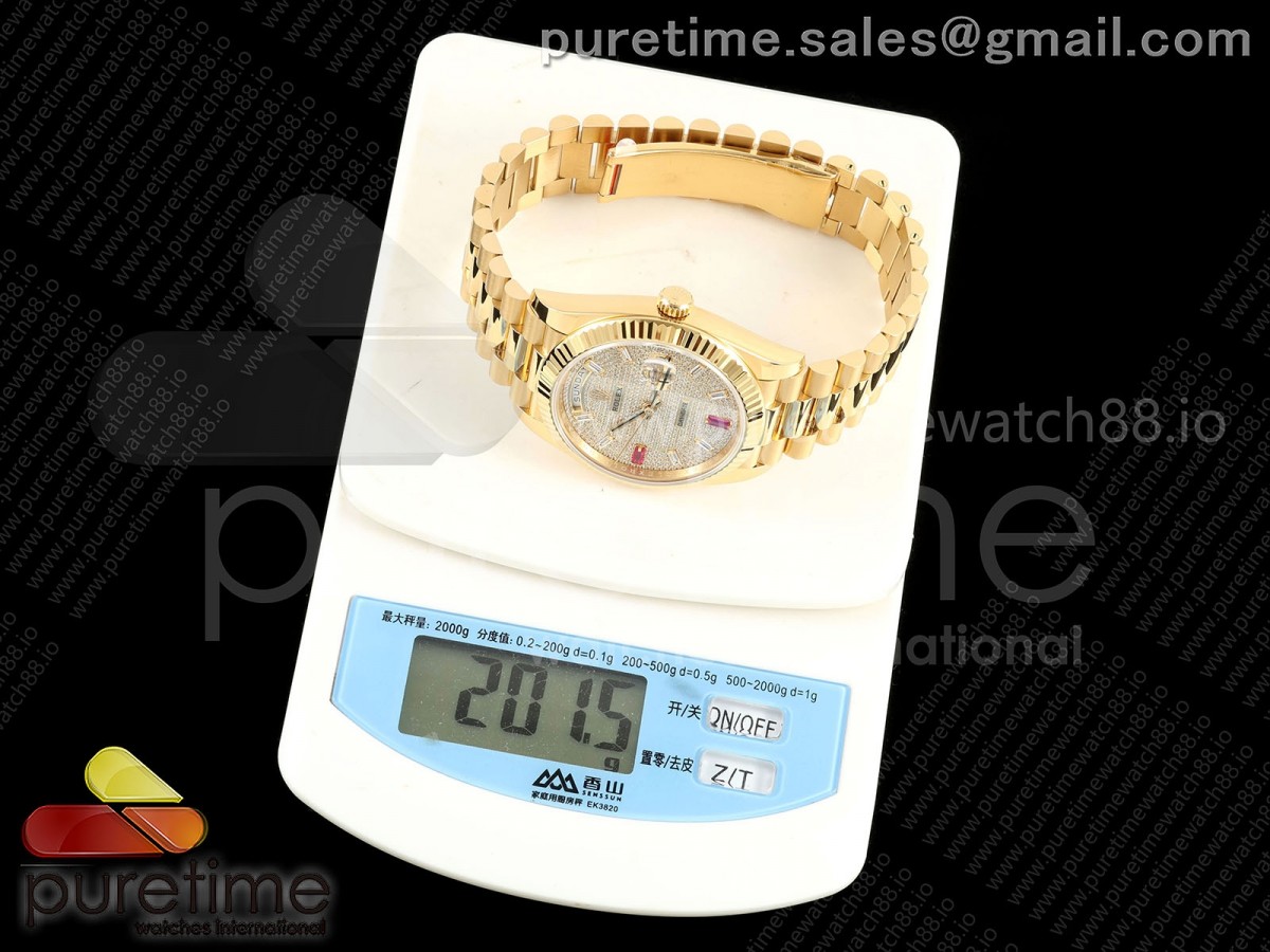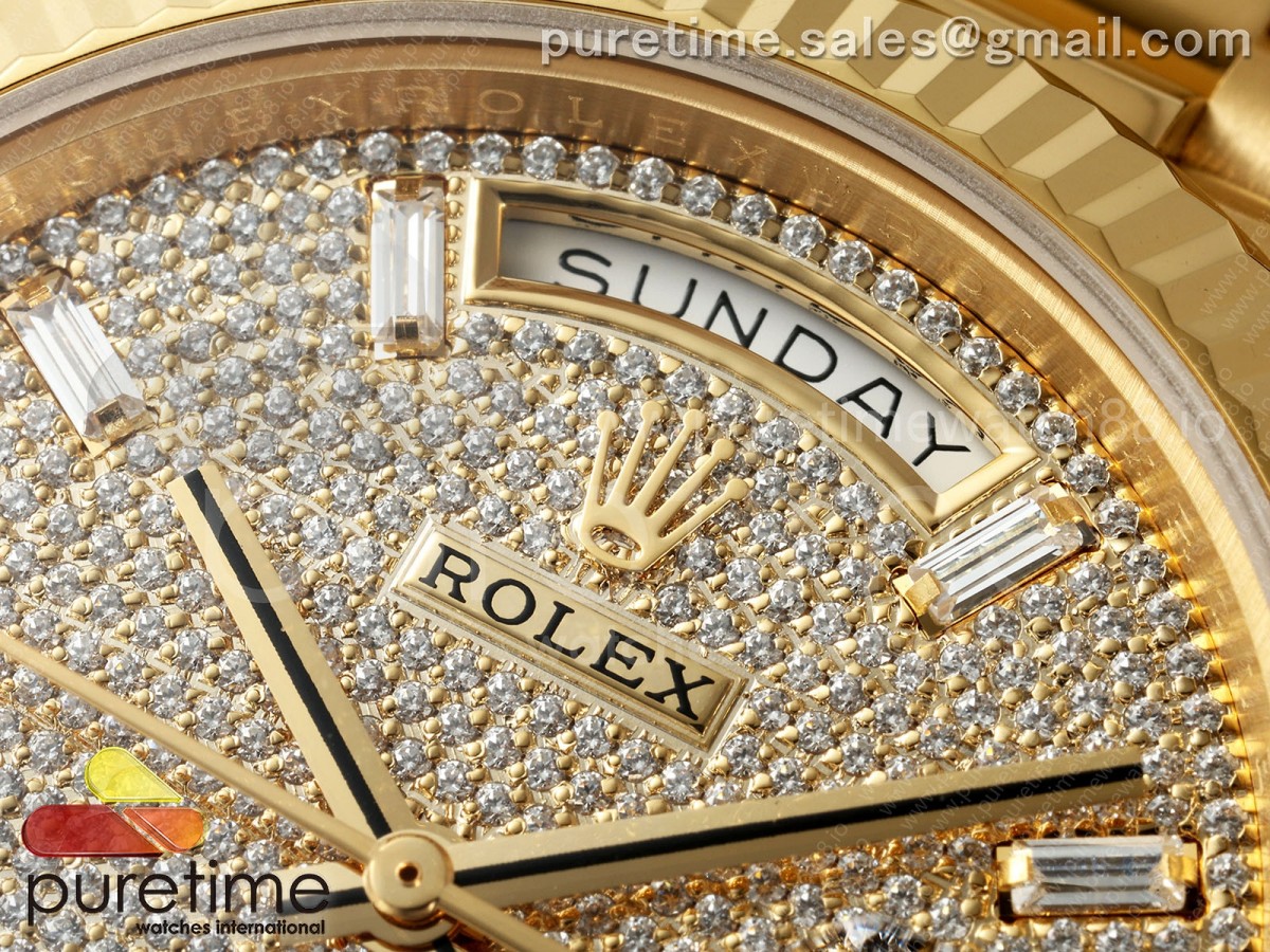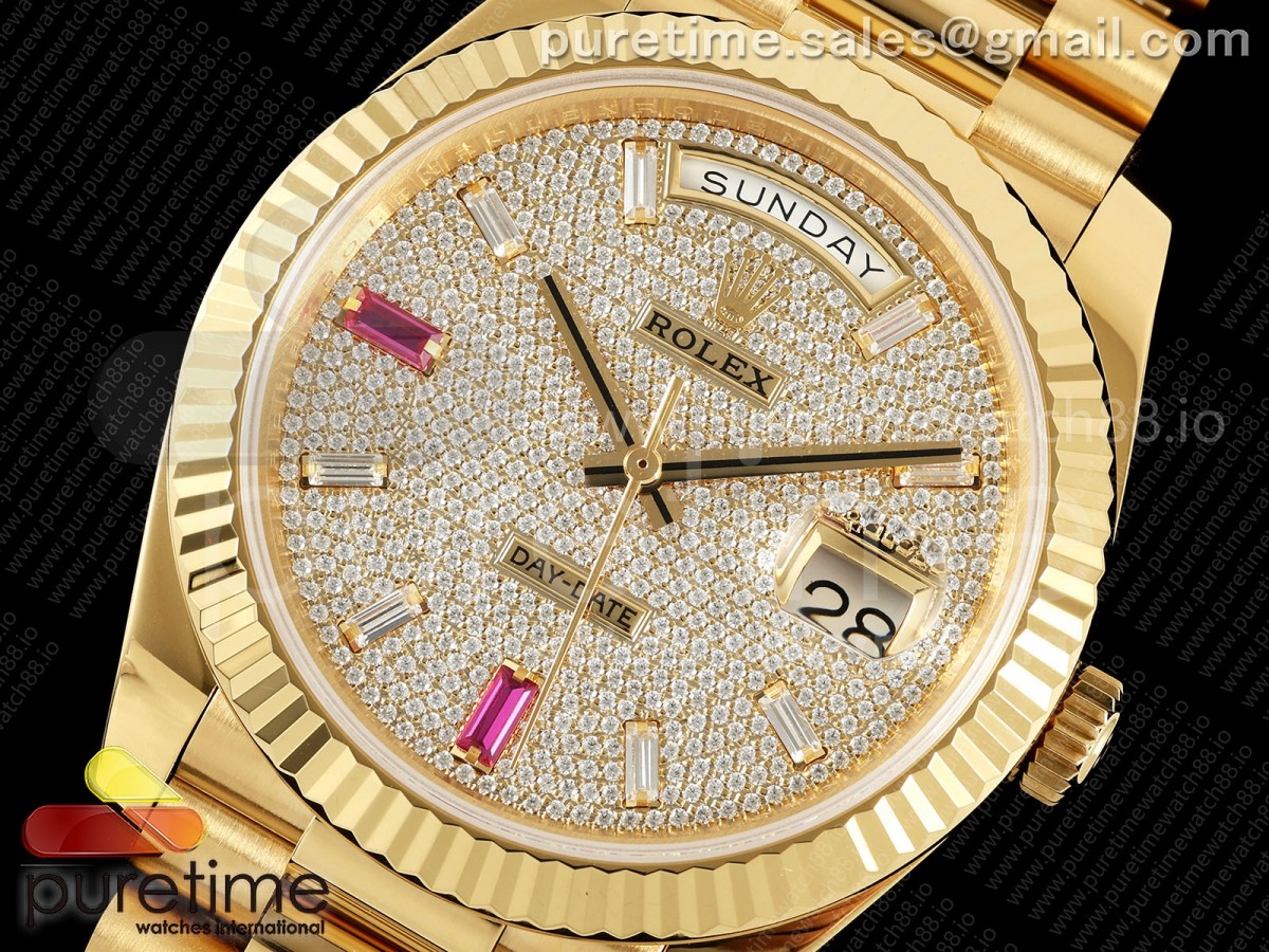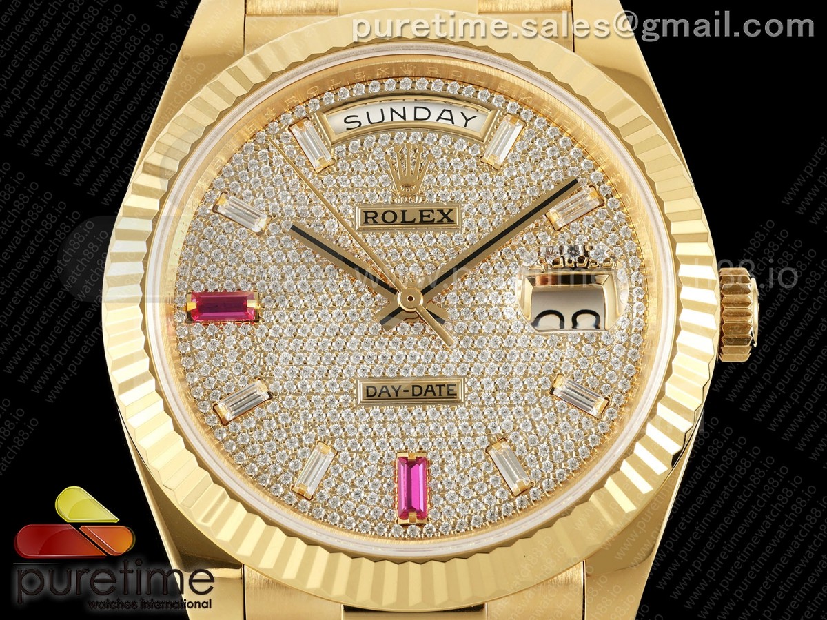 QF V8 롤렉스 데이데이트40 옐로우골드 텅스텐(Cu-W) 다이아몬드다이얼 스틸브레이슬릿 200g DayDate 40 YG QF 1:1 Best Edition Full Diamonds Dial on President Bracelet VR3255 V8 (Gain Weight) > 데이데이트(DAYDATE)