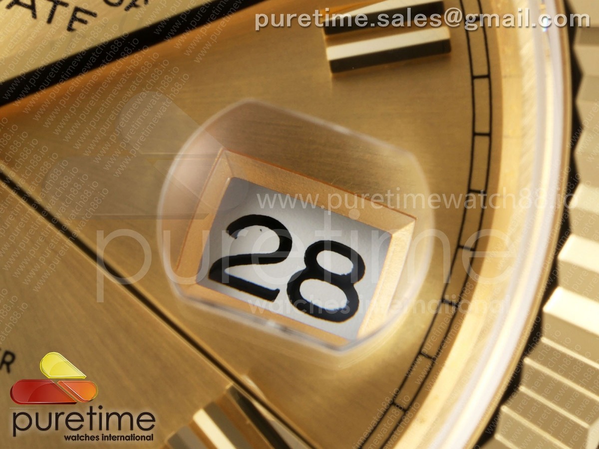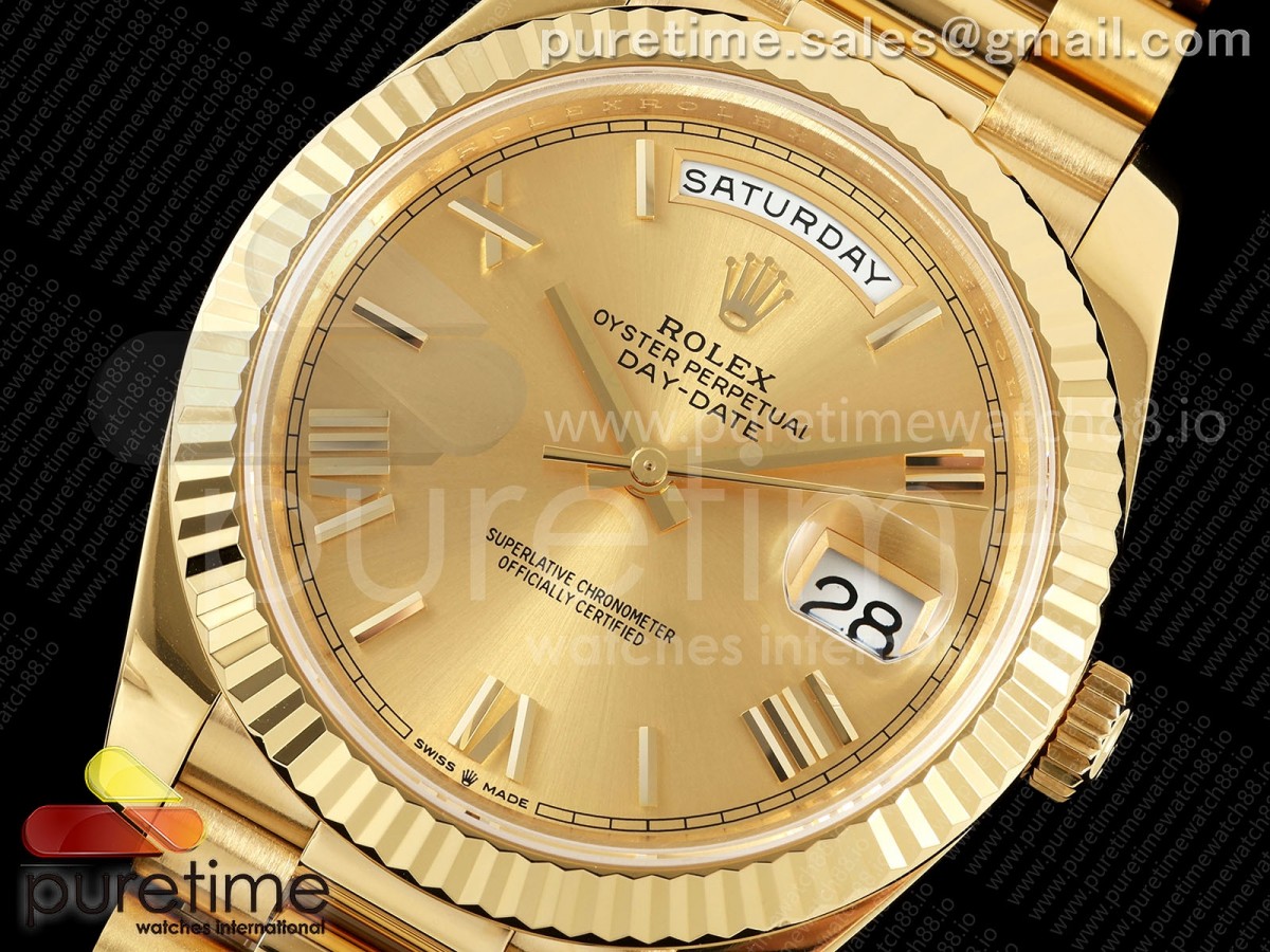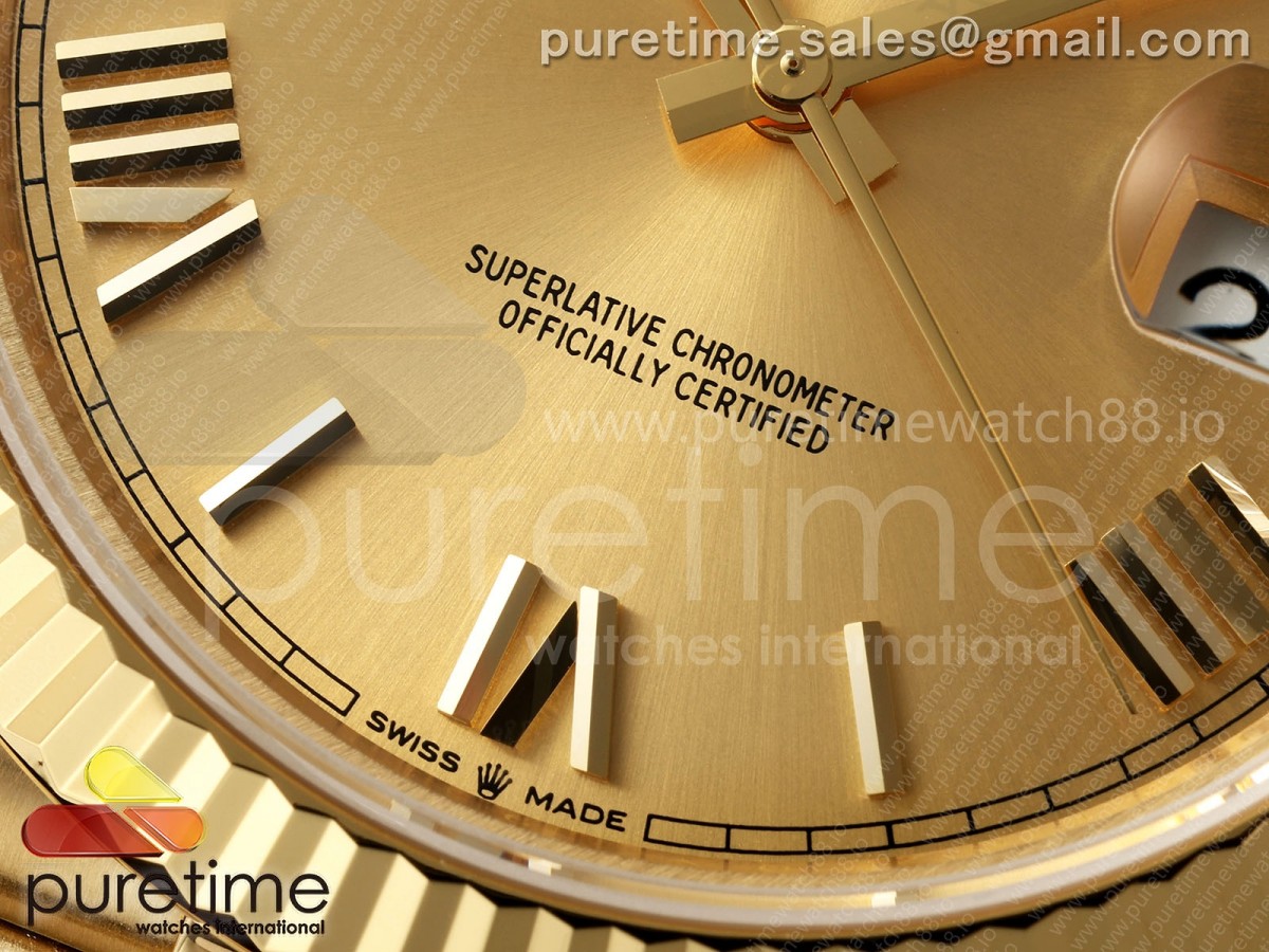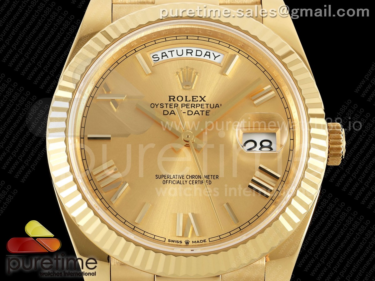 QF V8 롤렉스 데이데이트40 옐로우골드 텅스텐(Cu-W) 골드로만다이얼 스틸브레이슬릿 188g DayDate 40 YG 1:1 Best Edition YG Roman Dial on President Bracelet VR3255 V8 (Gain Weight) > 데이데이트(DAYDATE)