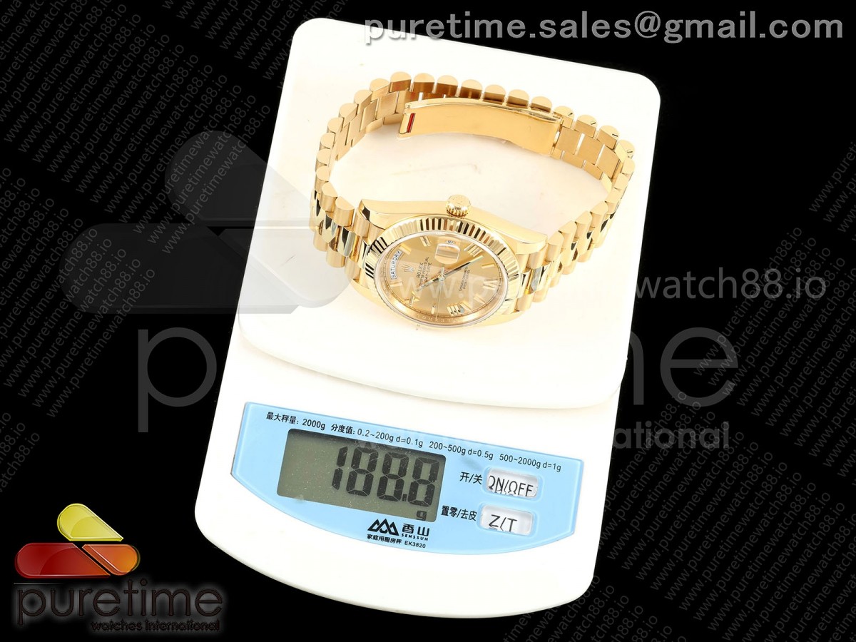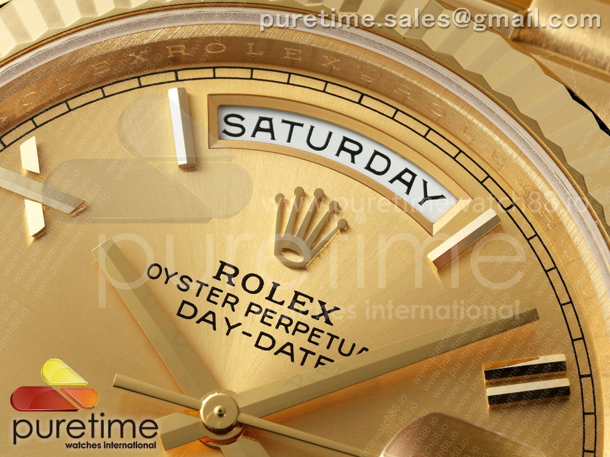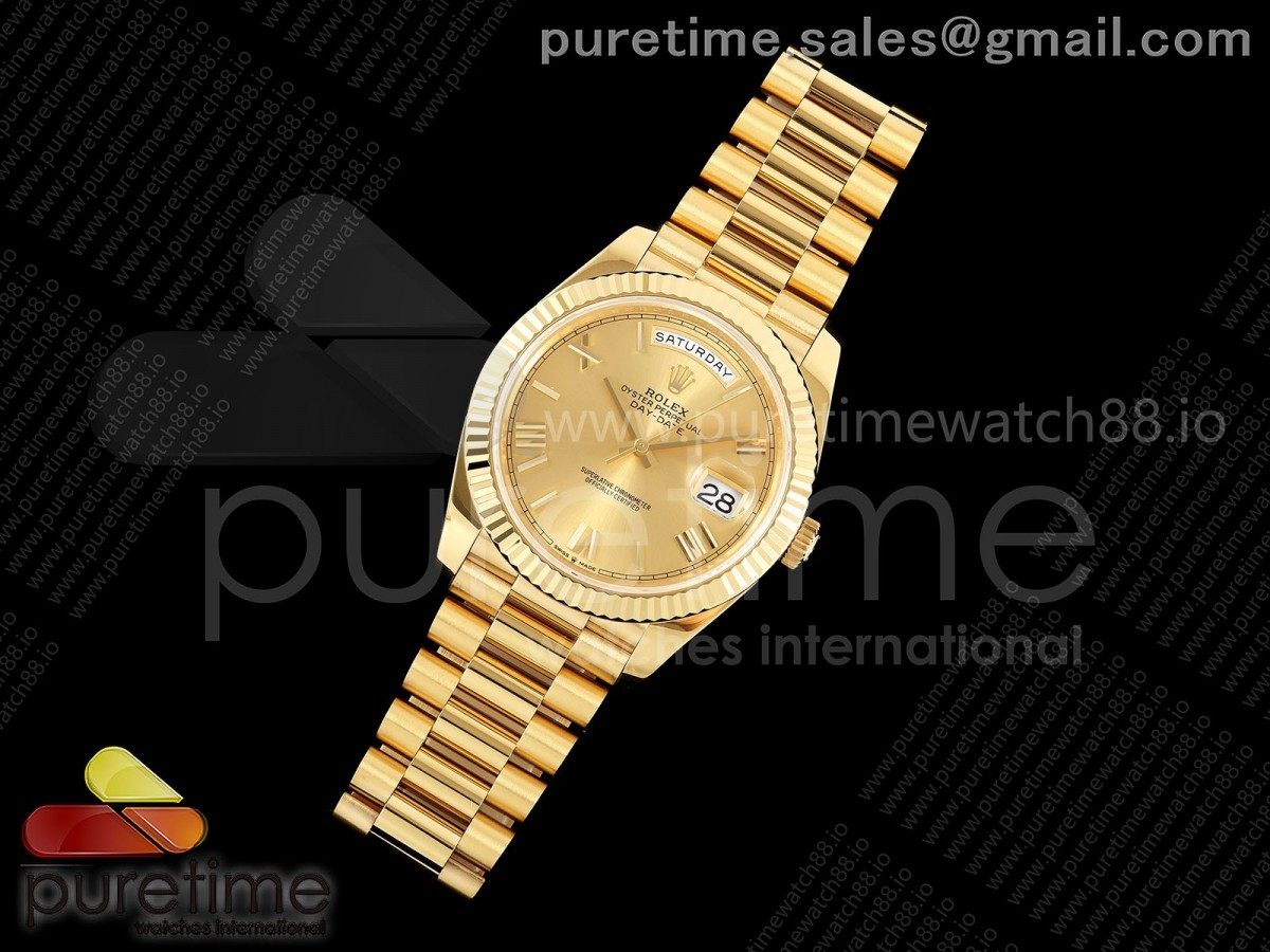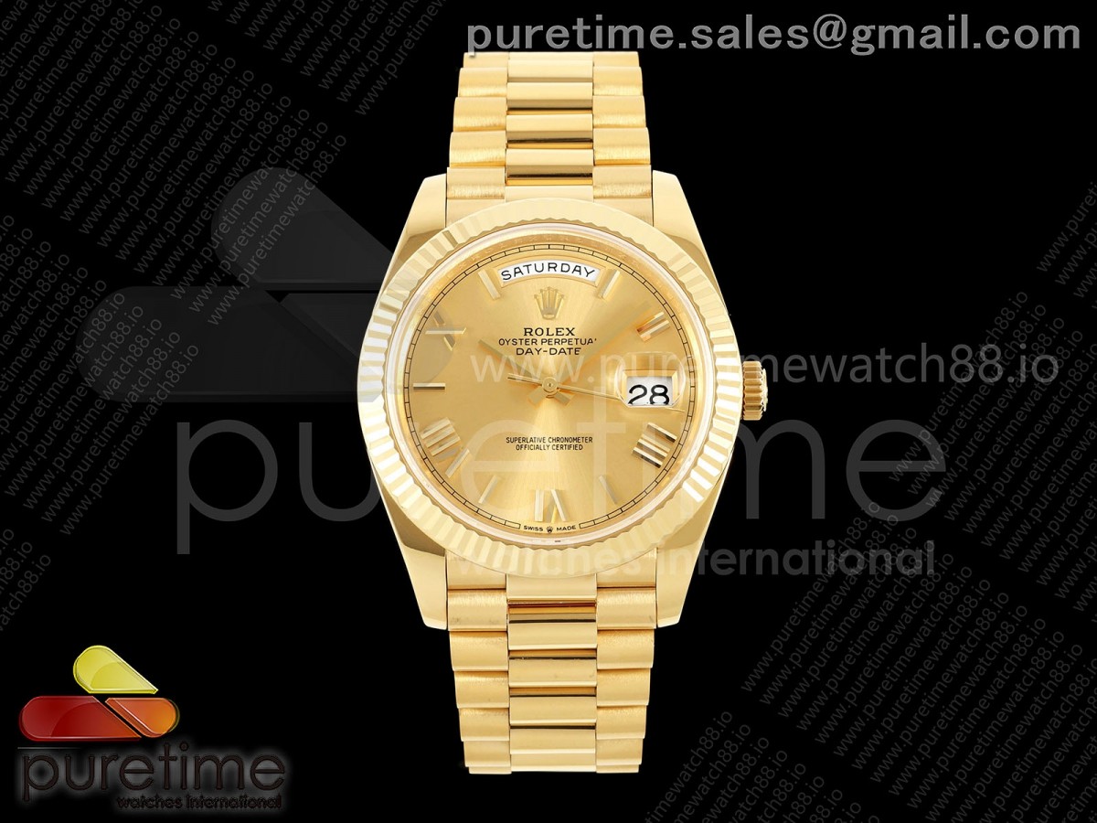 QF V8 롤렉스 데이데이트40 옐로우골드 텅스텐(Cu-W) 골드로만다이얼 스틸브레이슬릿 188g DayDate 40 YG 1:1 Best Edition YG Roman Dial on President Bracelet VR3255 V8 (Gain Weight) > 데이데이트(DAYDATE)