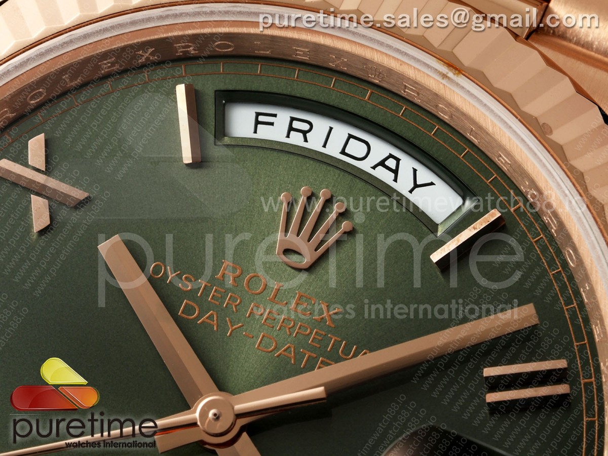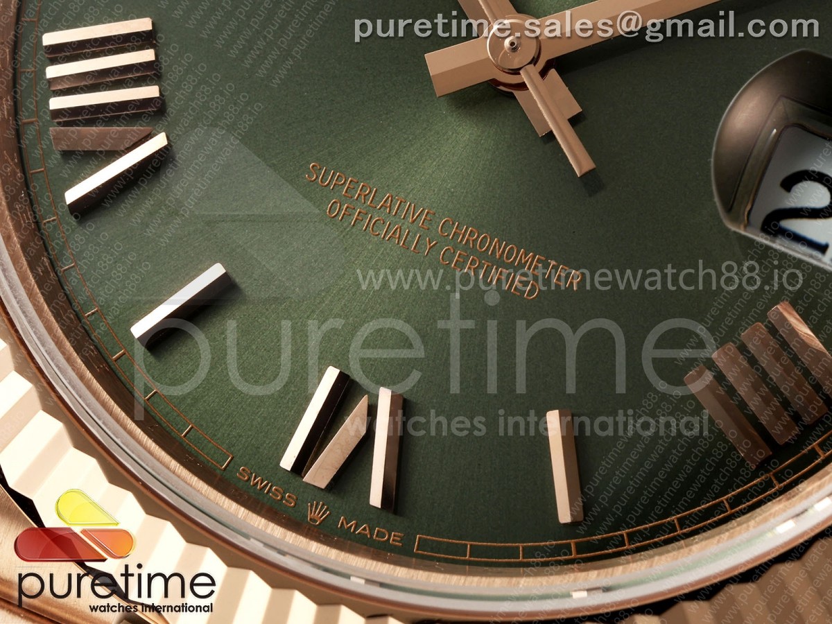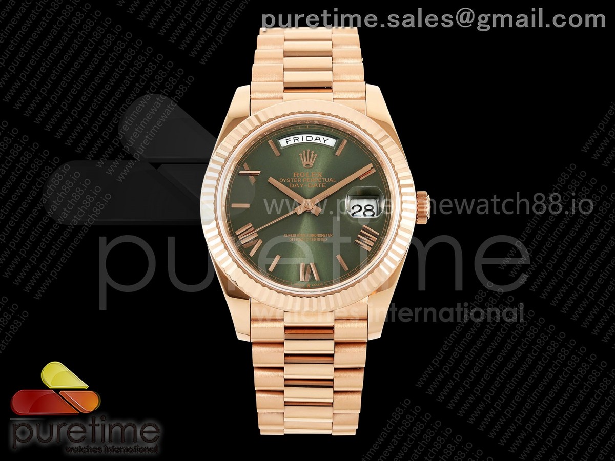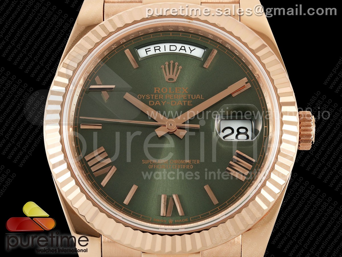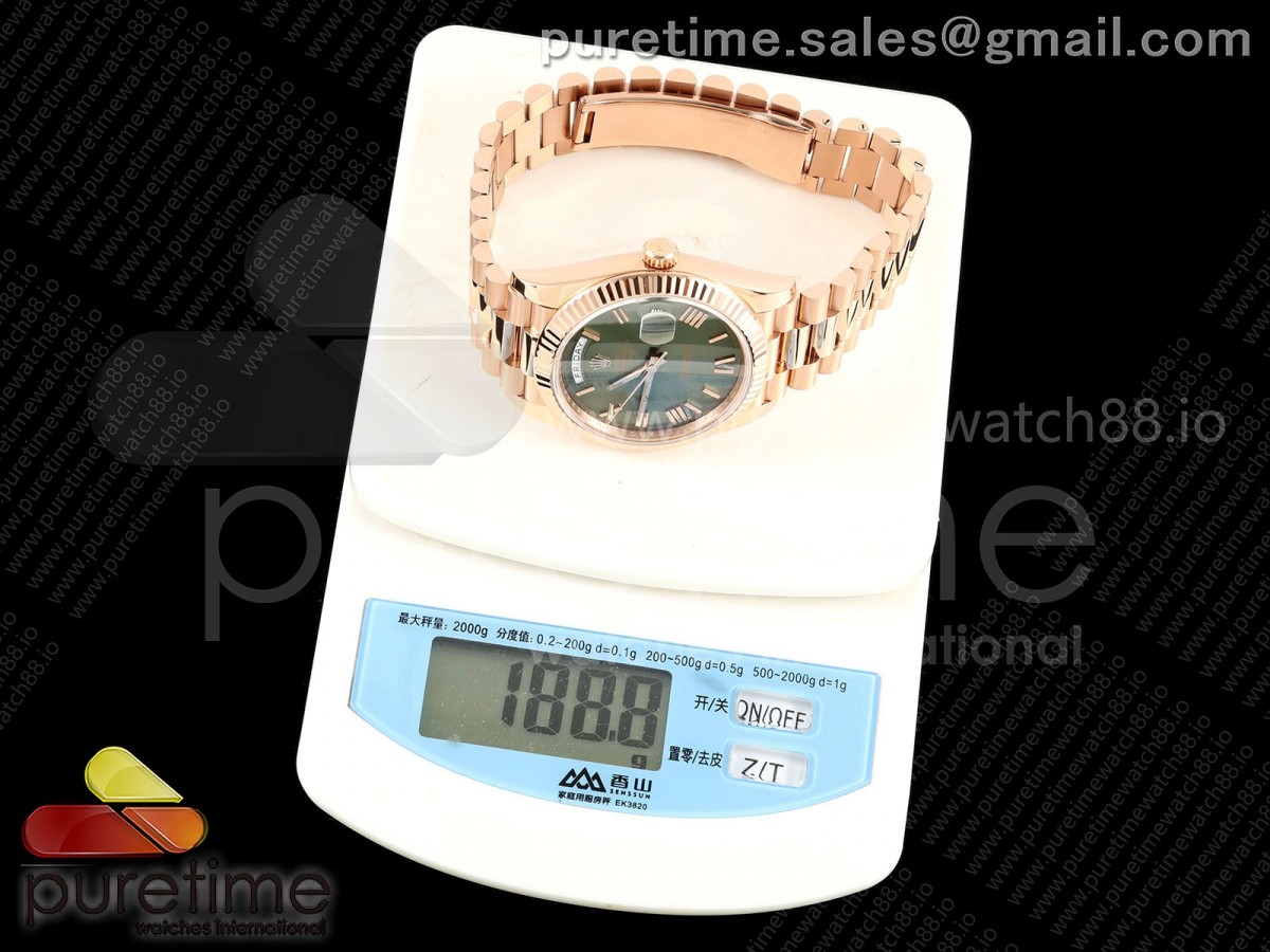 QF V8 롤렉스 데이데이트40 로즈골드 텅스텐(Cu-W) 그린로만다이얼 스틸브레이슬릿 188g DayDate 40 RG QF 1:1 Best Edition Green Roman Dial on President Bracelet VR3255 V8 (Gain Weight) > 데이데이트(DAYDATE)
