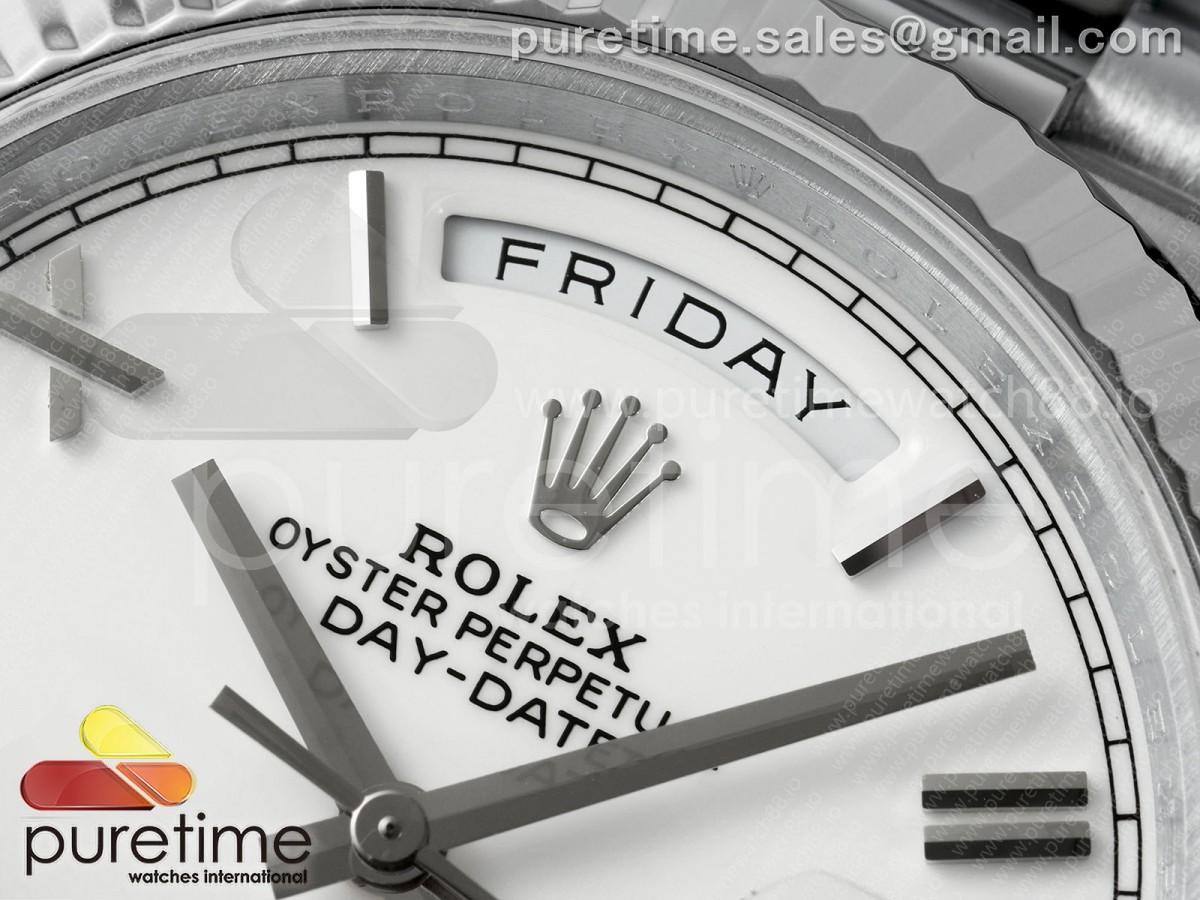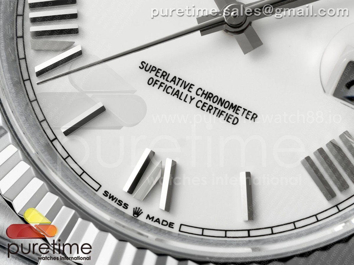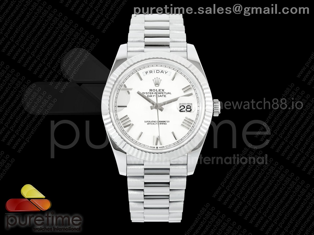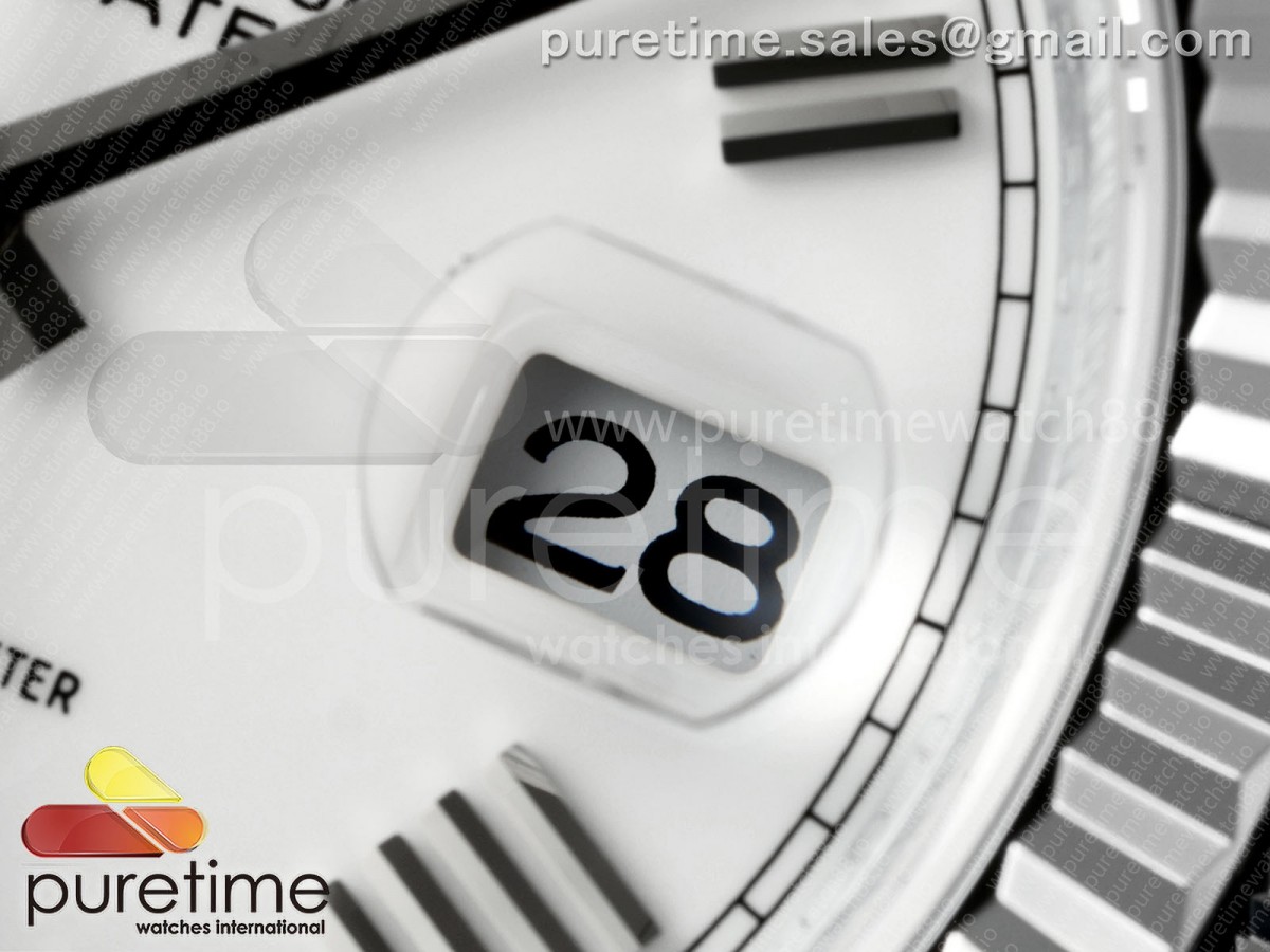 QF V8 롤렉스 데이데이트40 텅스텐(Cu-W) 화이트로만다이얼 스틸브레이슬릿 190g DayDate 40 SS QF 1:1 Best Edition 904L Steel White Roman Dial on President Bracelet VR3255 V8 (Gain Weight) > 데이데이트(DAYDATE)