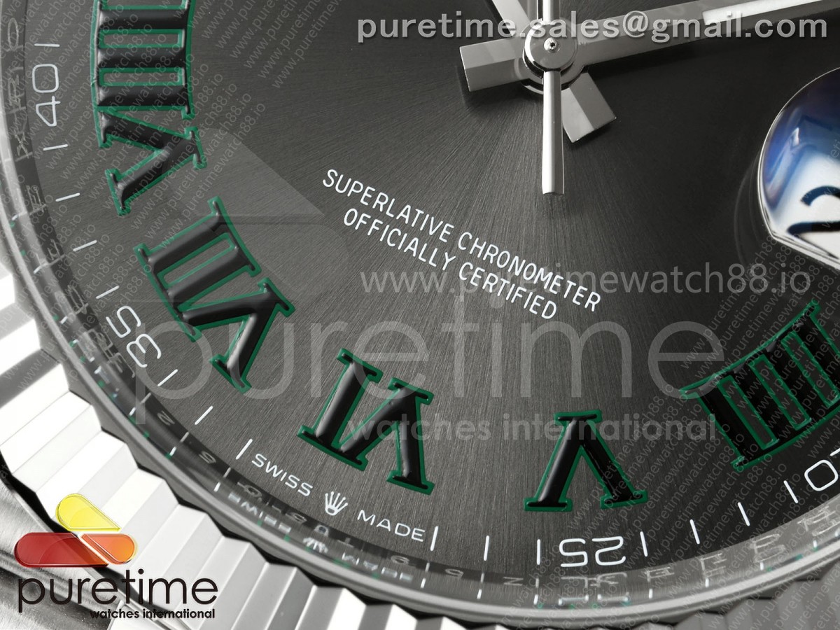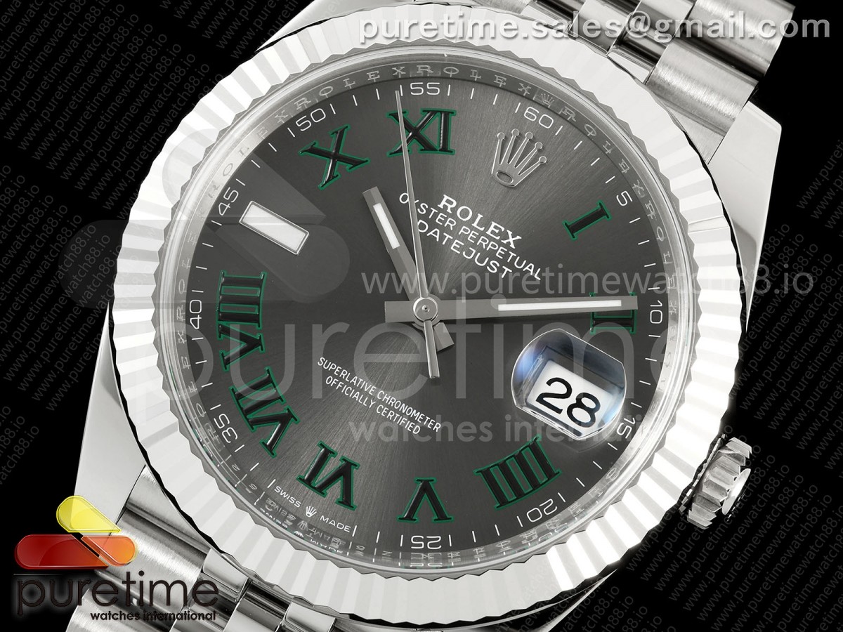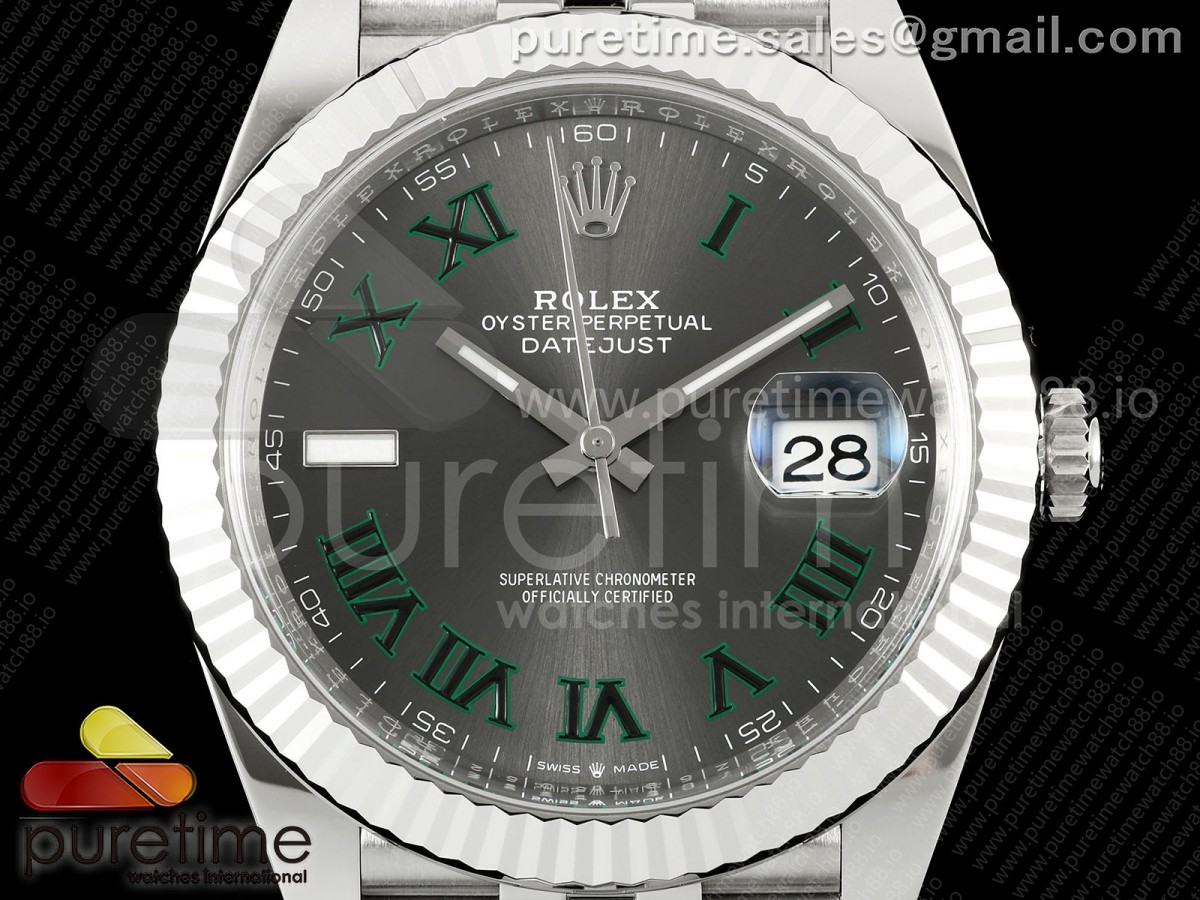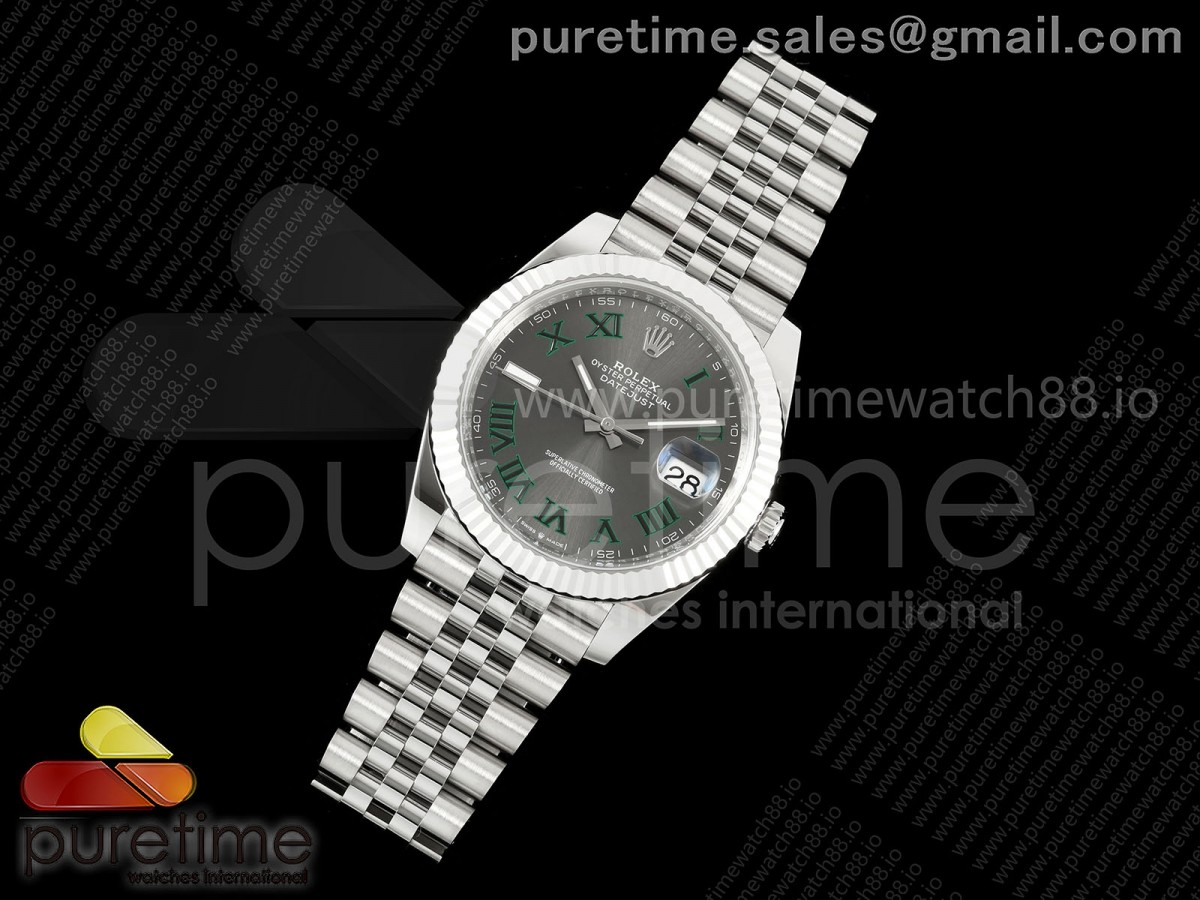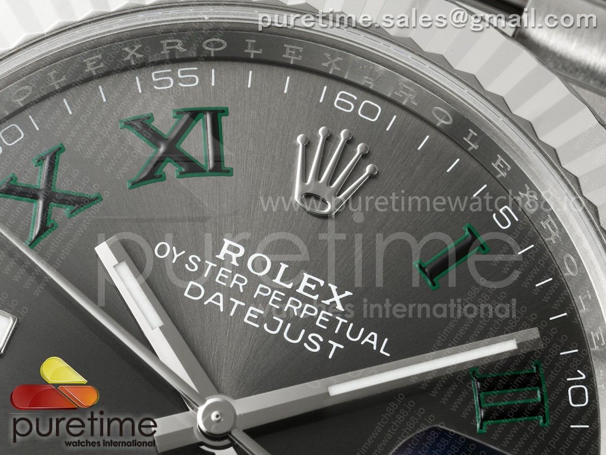 • CleanPlus 클린플러스 롤렉스 데이저스트41 프리스프렁 윔블던다이얼 쥬빌레브레이슬릿 133g DateJust 41 126334 Clean Plus 1:1 Best Edition Gray Dial Green Roman on Jubilee Bracelet JH3235 (Free Sprung)