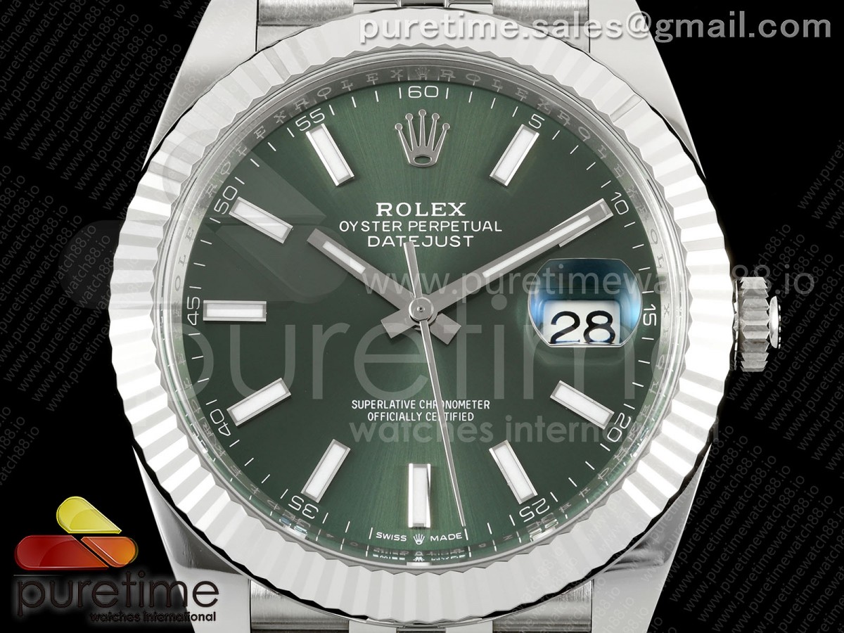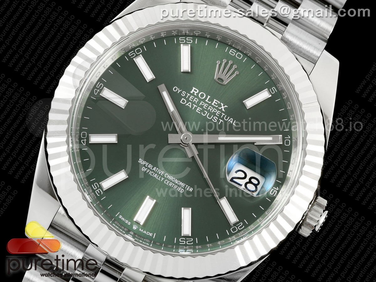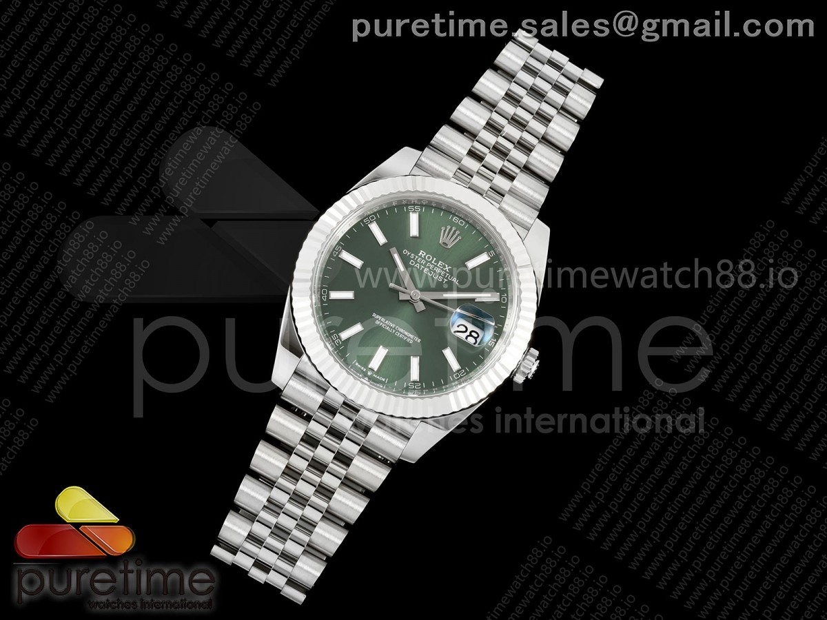 • CleanPlus 클린플러스 롤렉스 데이저스트41 프리스프렁 그린다이얼 쥬빌레브레이슬릿 133g DateJust 41 126334 Clean Plus 1:1 Best Edition Green Stick Dial on Jubilee Bracelet JH3235 (Free Sprung)