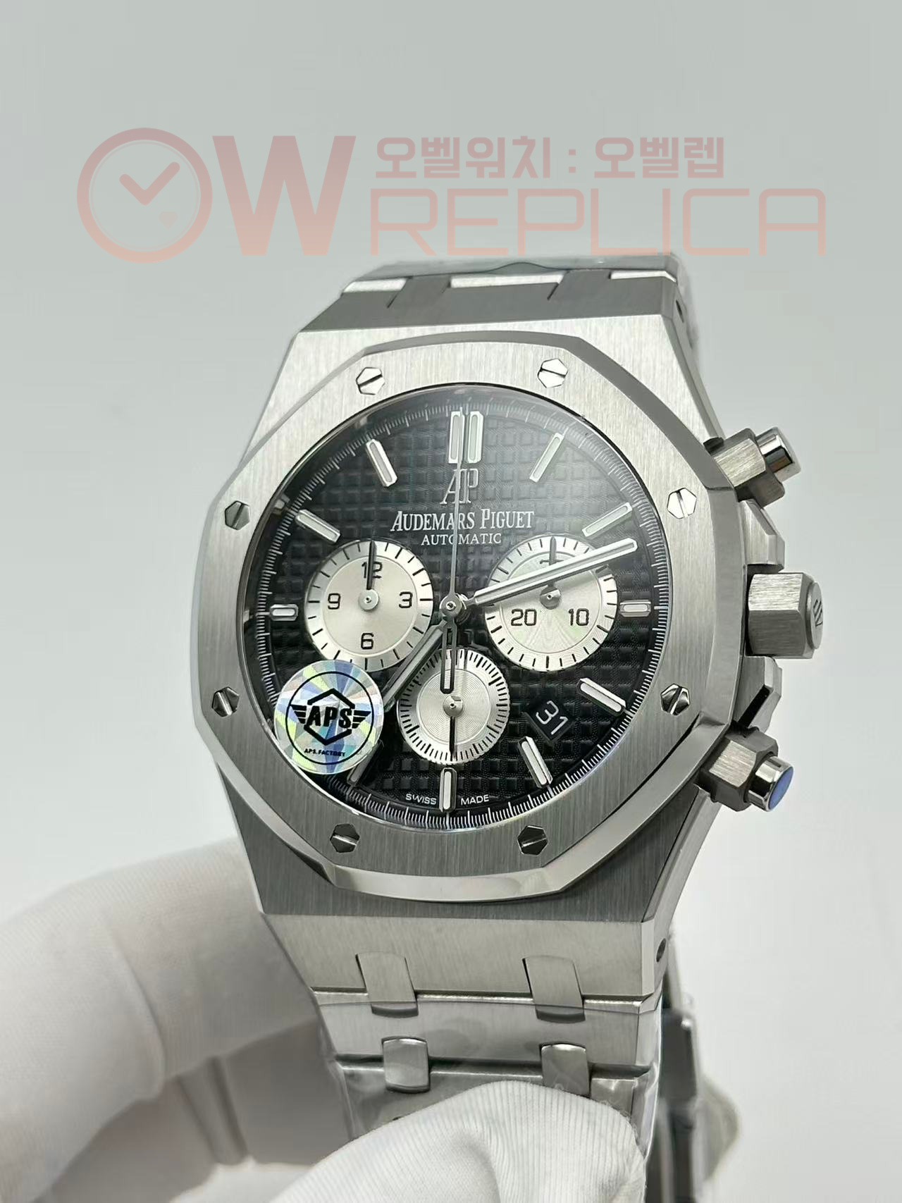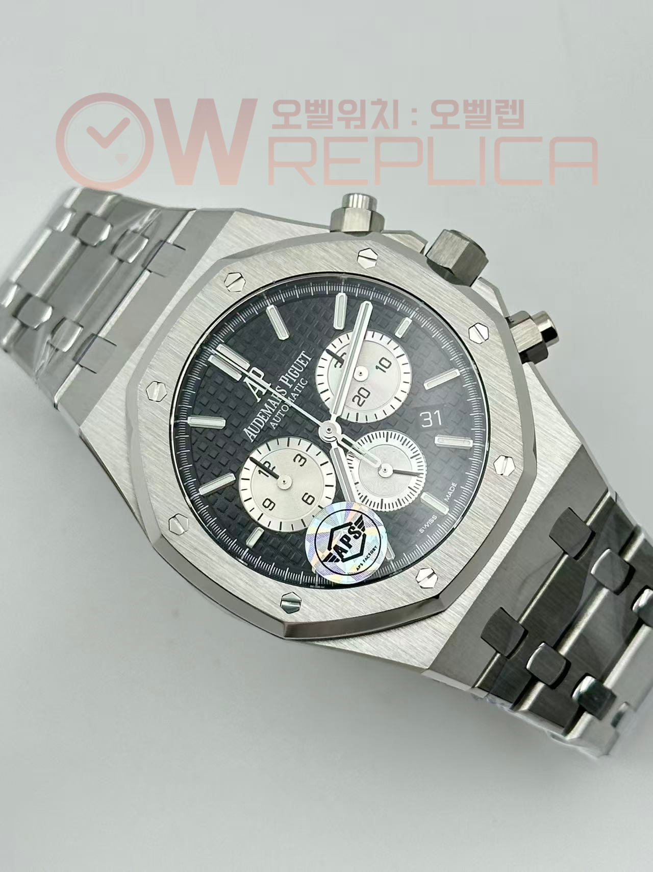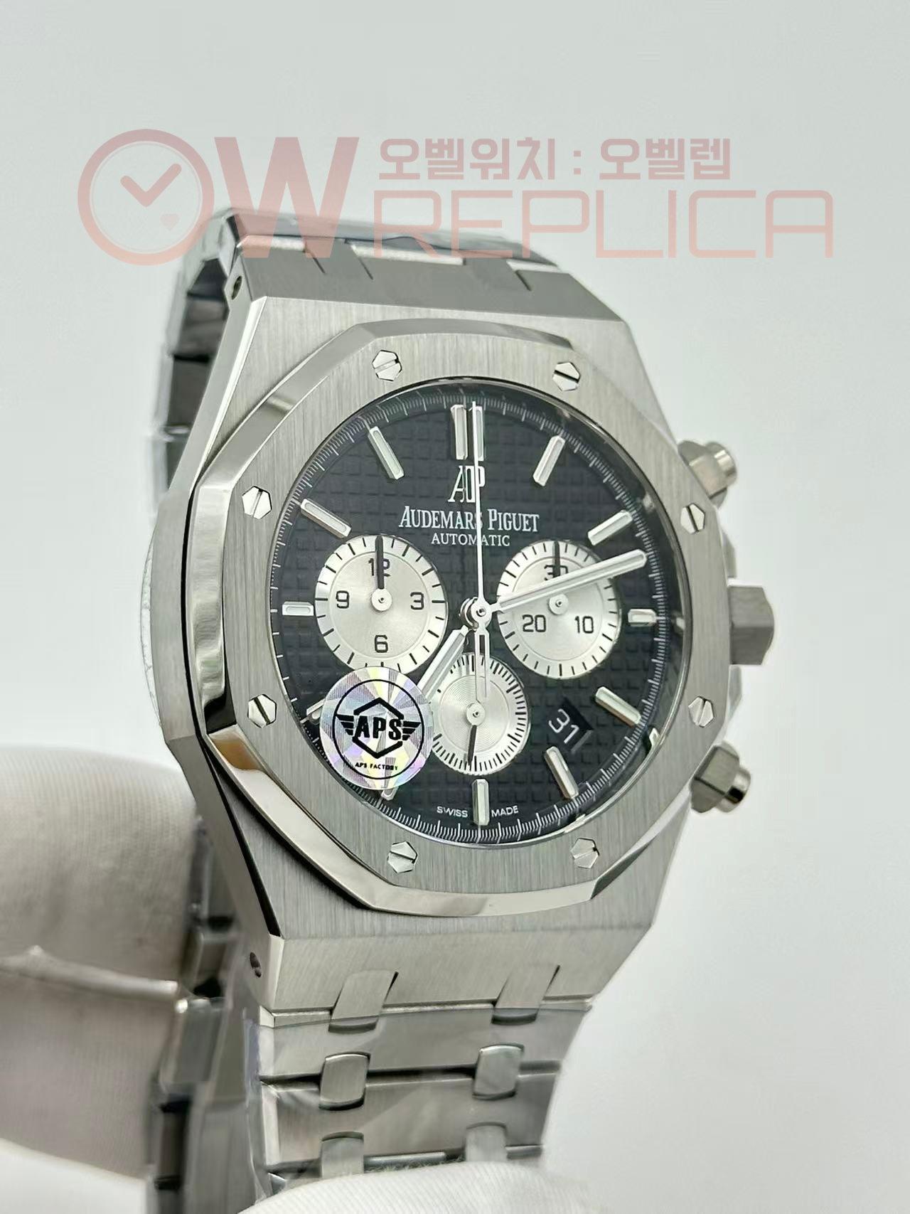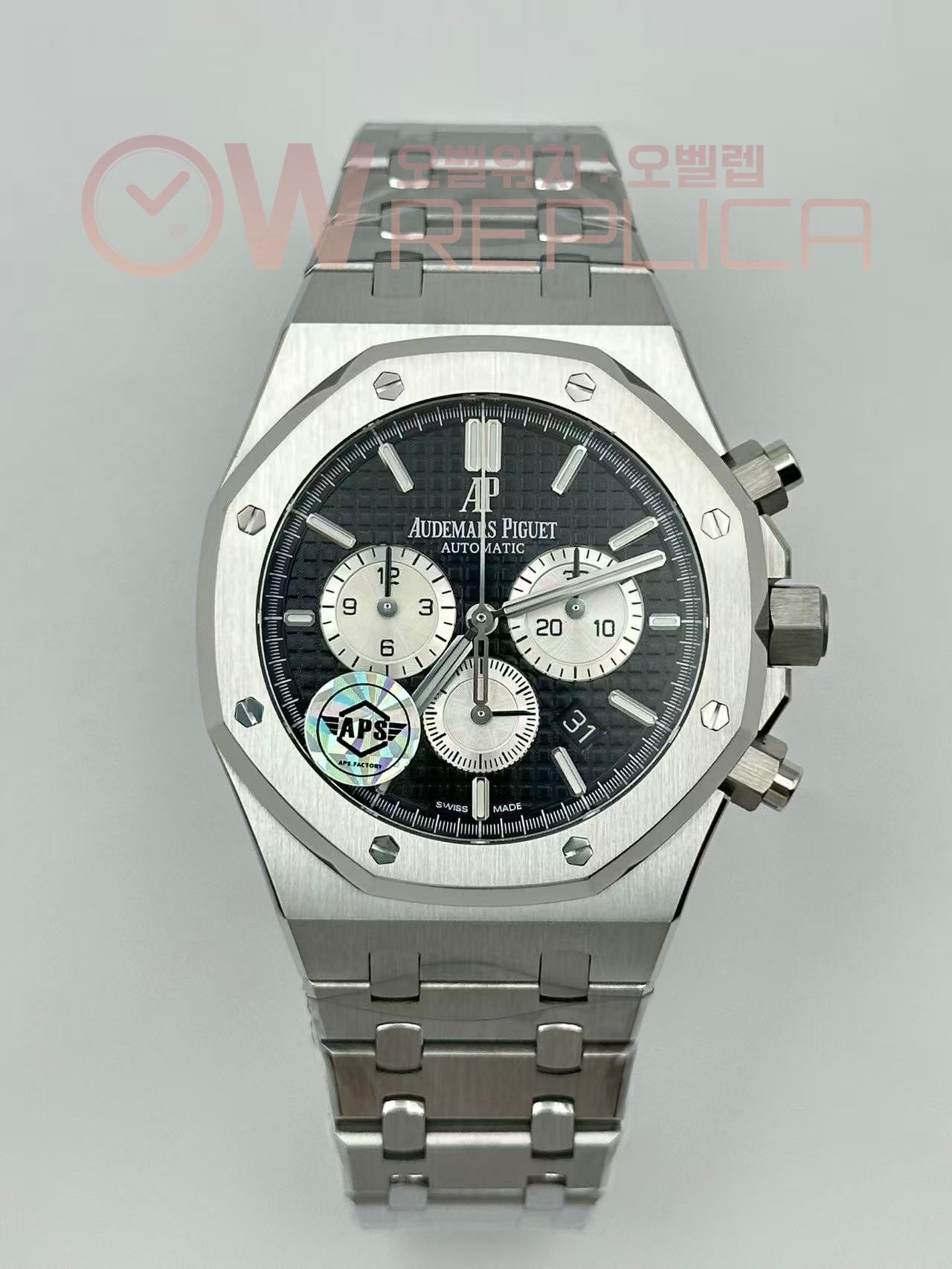 (#국내# 당발) APSF 오데마피게 로얄오크 크로노 26331 블랙/화이트다이얼 스틸브레이슬릿