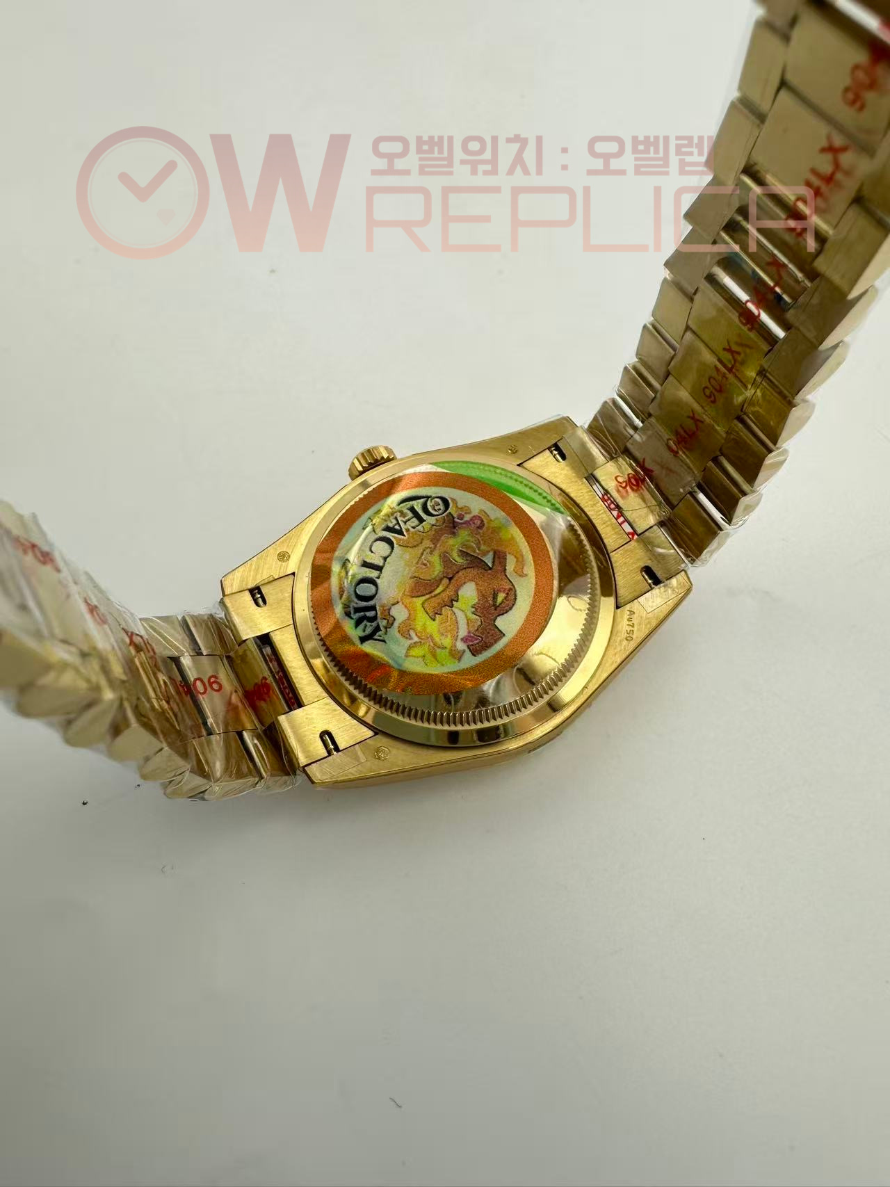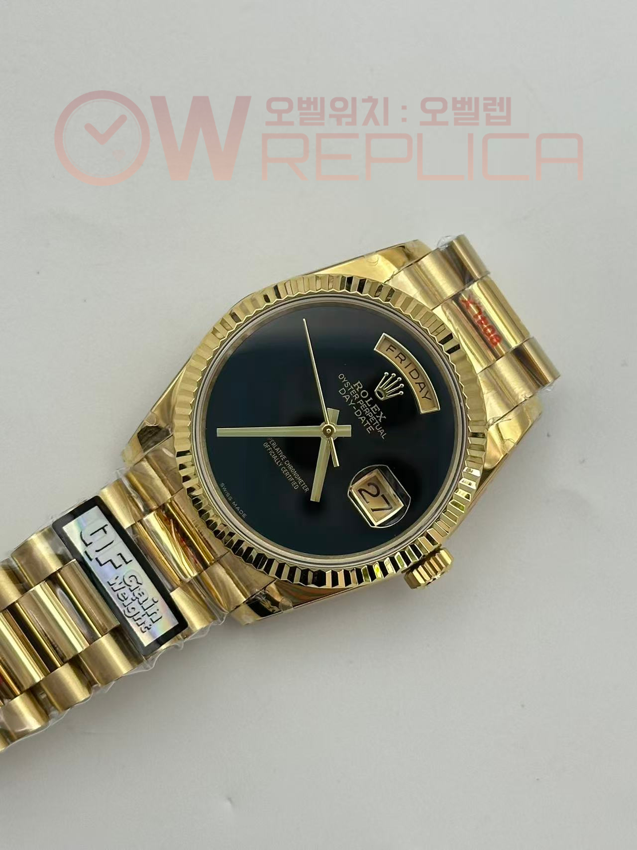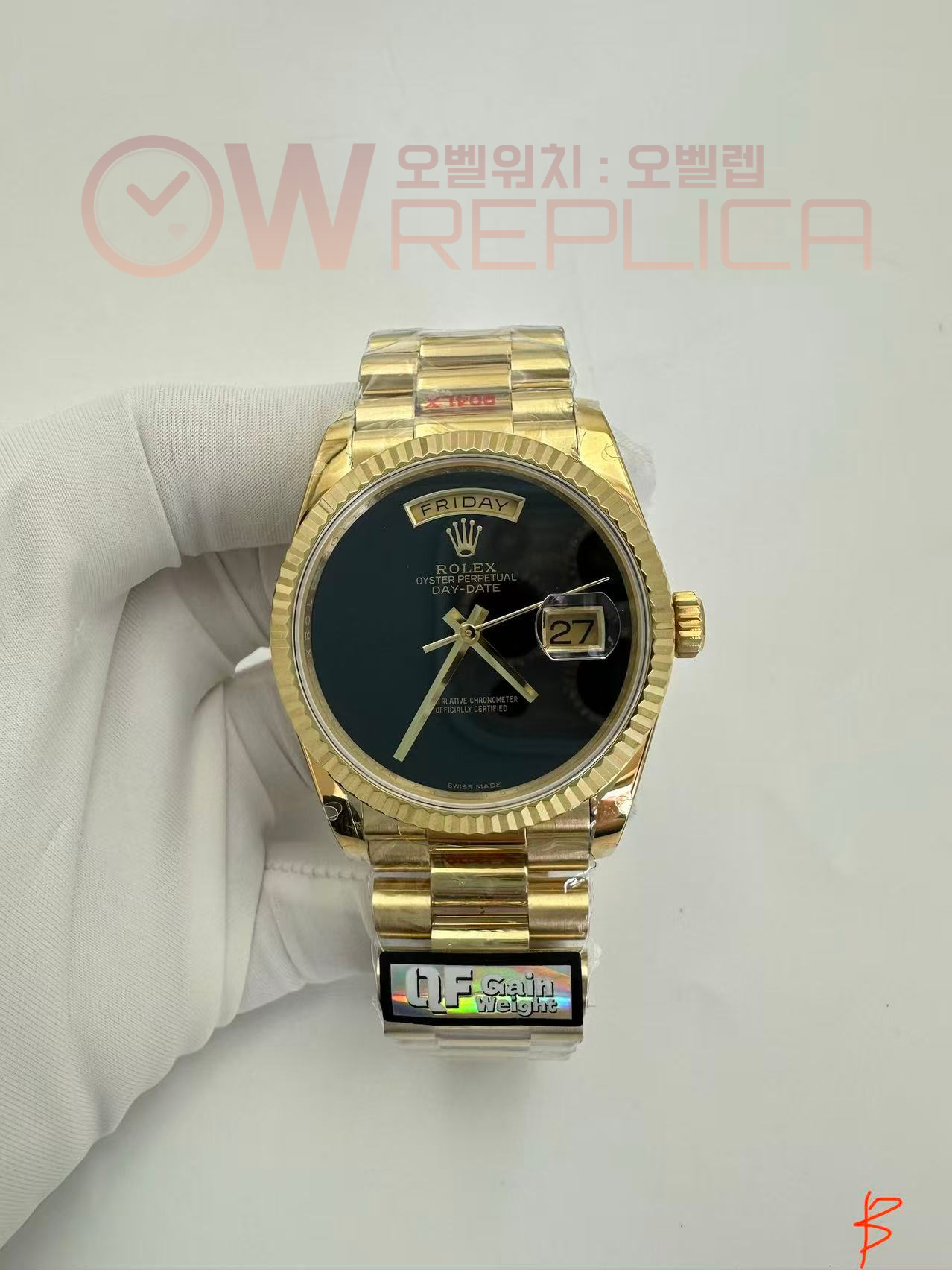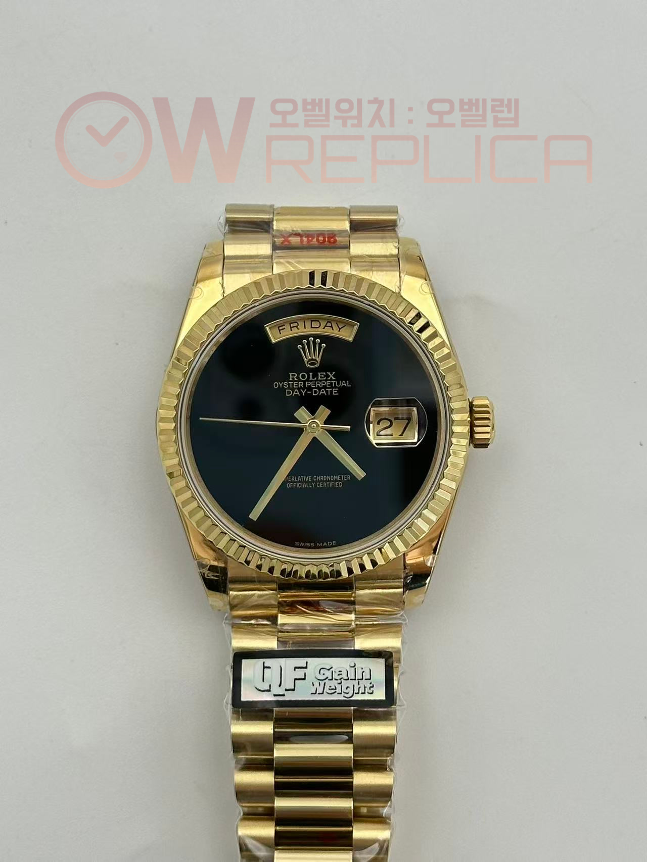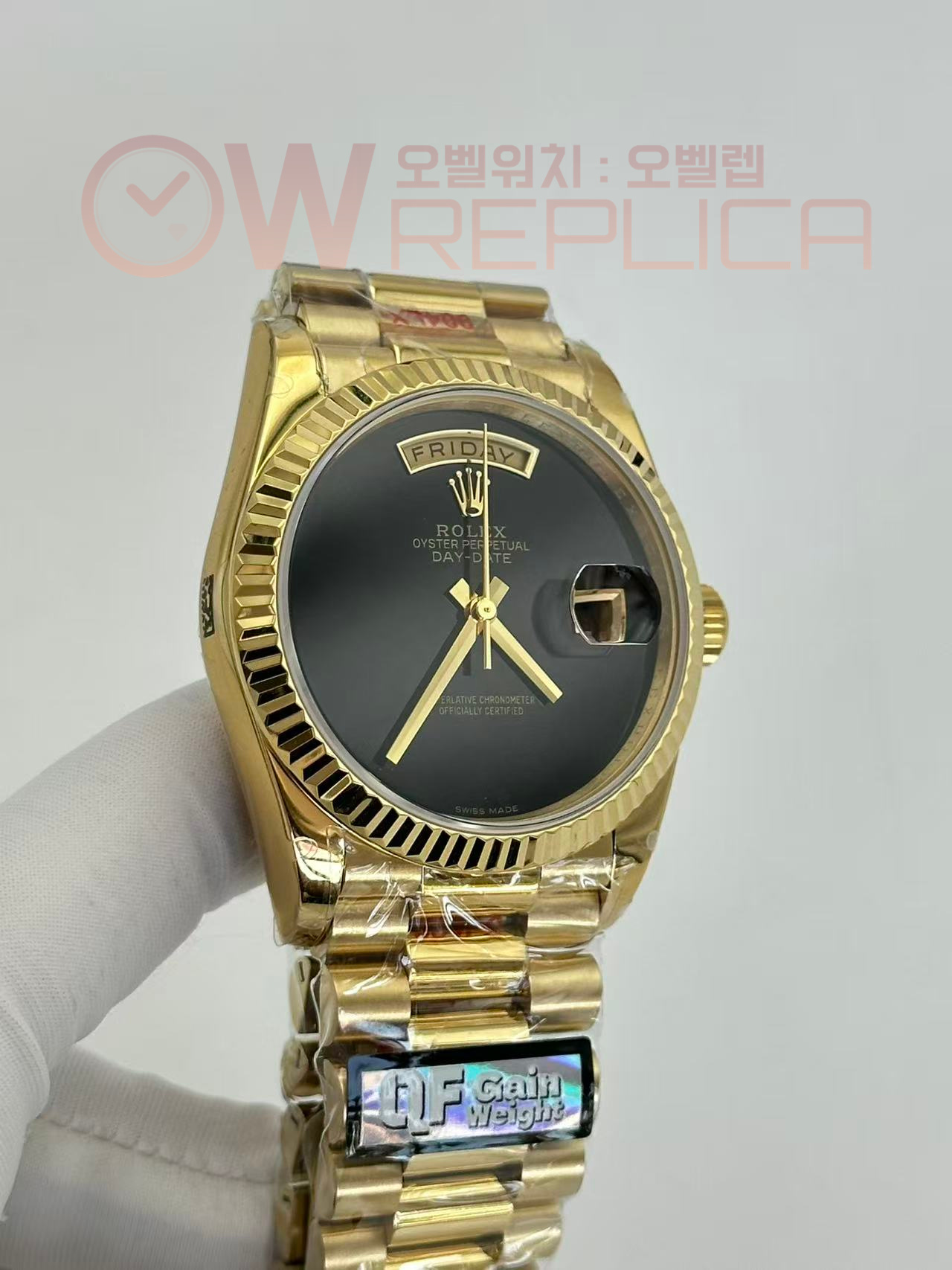 (#국내# 당발) QF 롤렉스 데이데이트36 텅스텐(Cu-W) 옐로우골드 오닉스다이얼 스틸브레이슬릿 > 시계