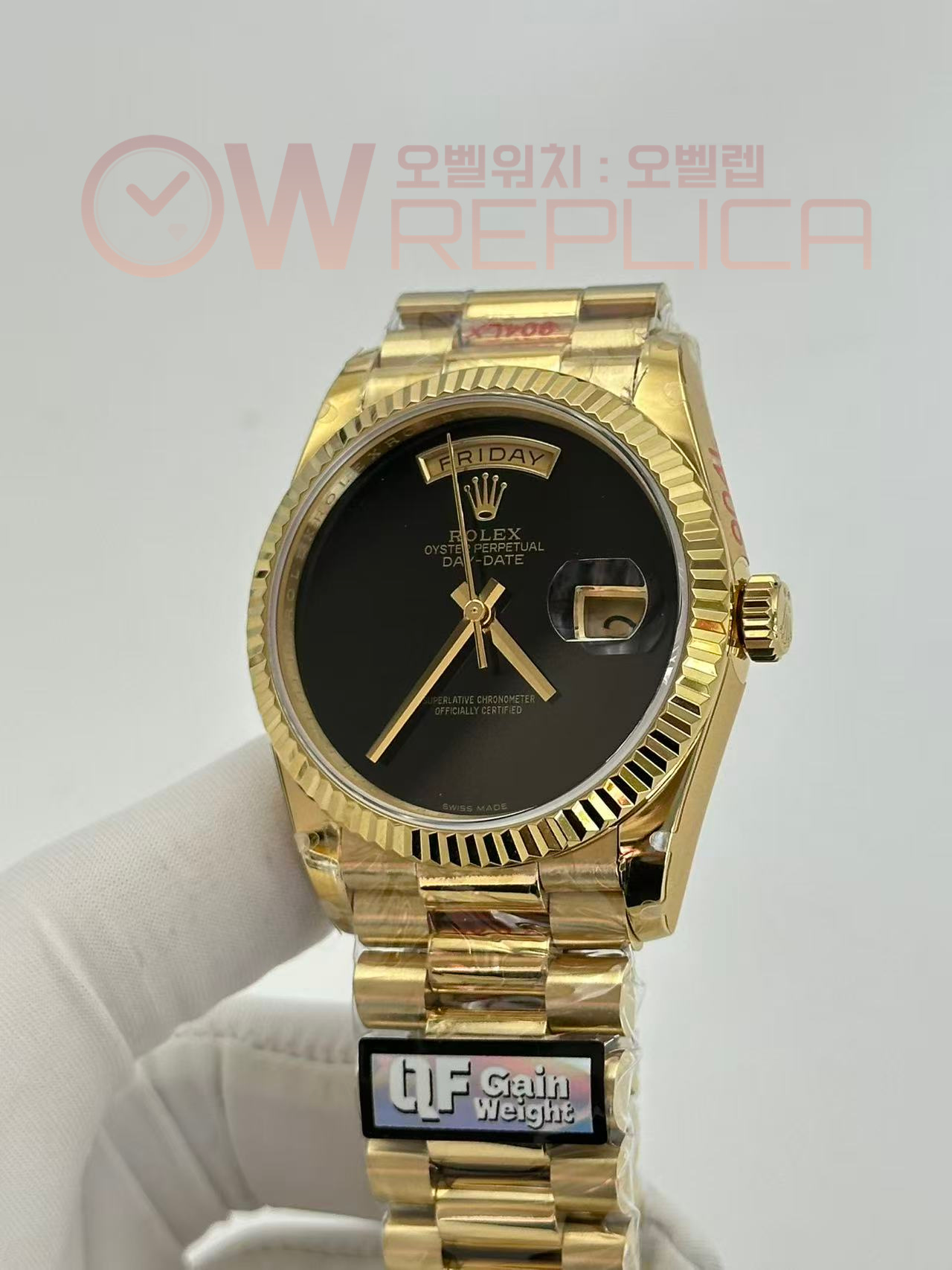 (#국내# 당발) QF 롤렉스 데이데이트36 텅스텐(Cu-W) 옐로우골드 오닉스다이얼 스틸브레이슬릿 요약정보 및 구매