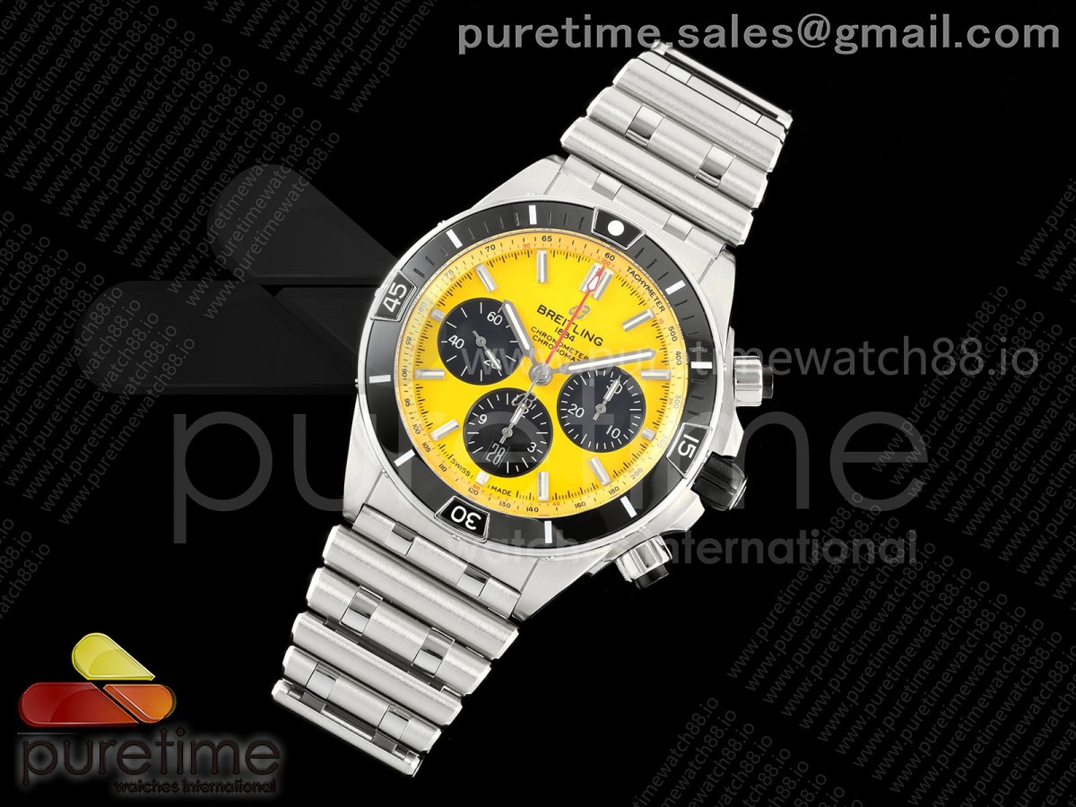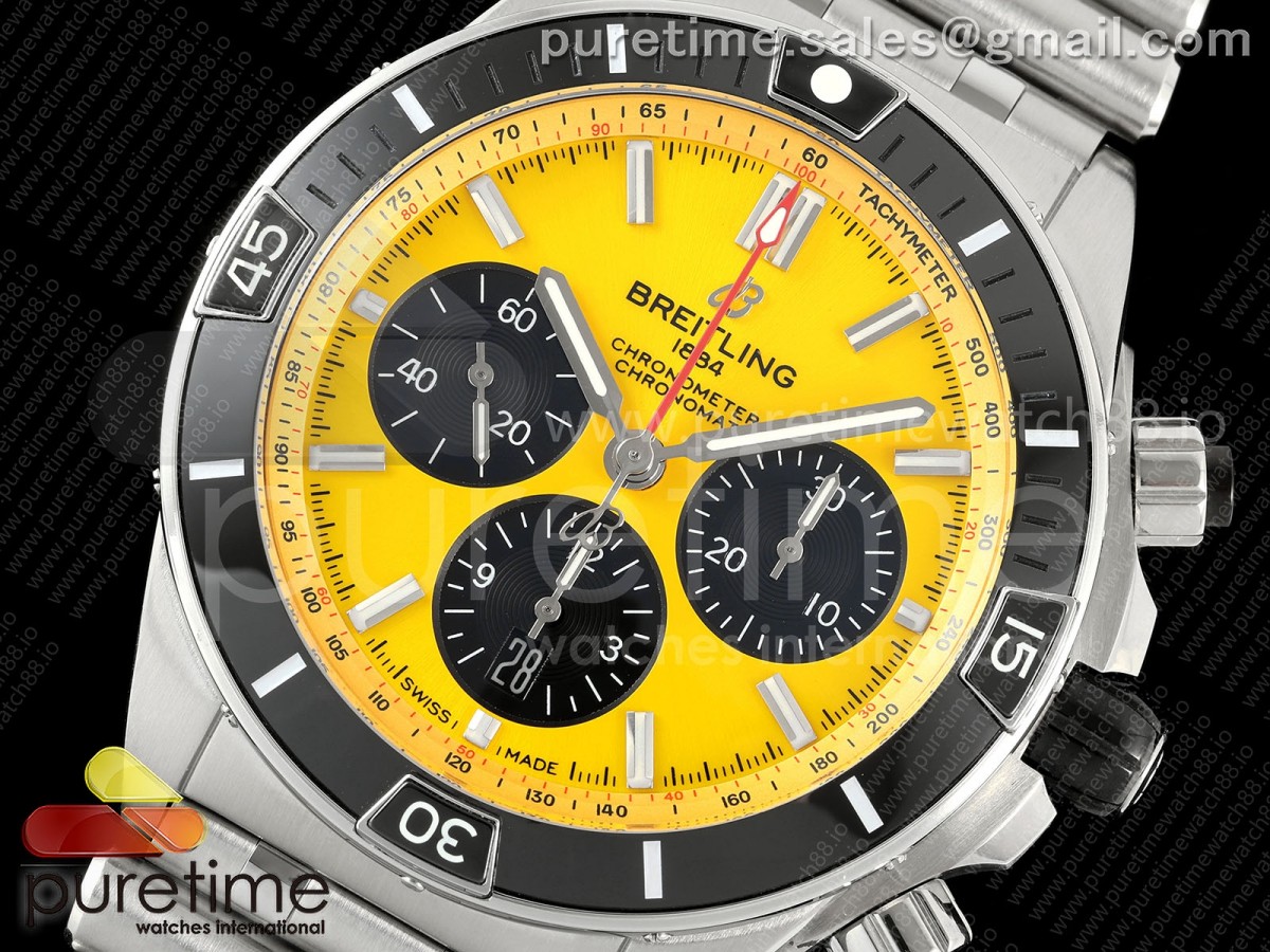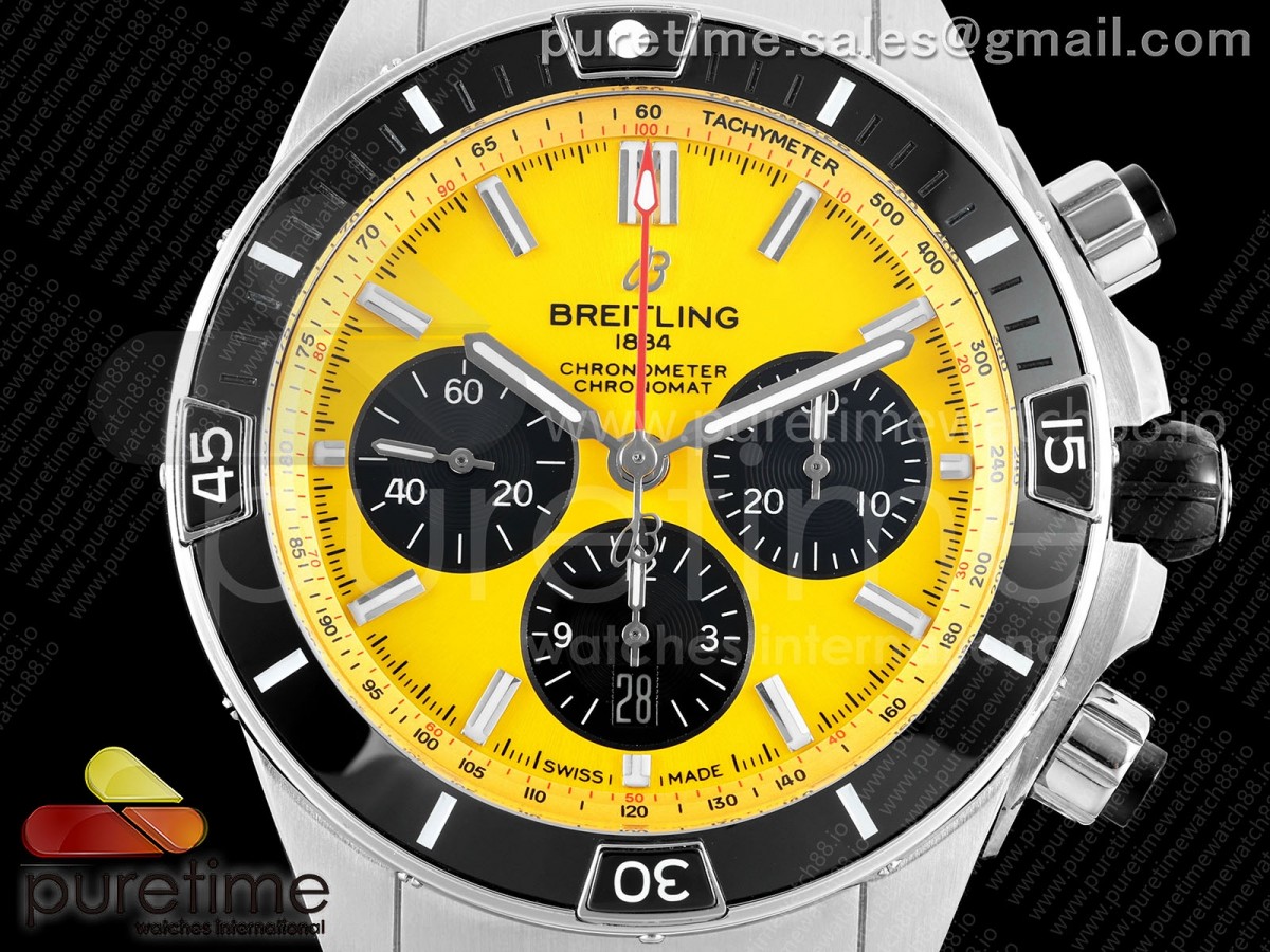 • TF 브라이틀링 슈퍼 크로노맷 B01 44미리 옐로우다이얼 스틸브레이슬릿 Super Chronomat B01 44 SS TF 1:1 Best Edition Yellow Dial on SS Bracelet A7750